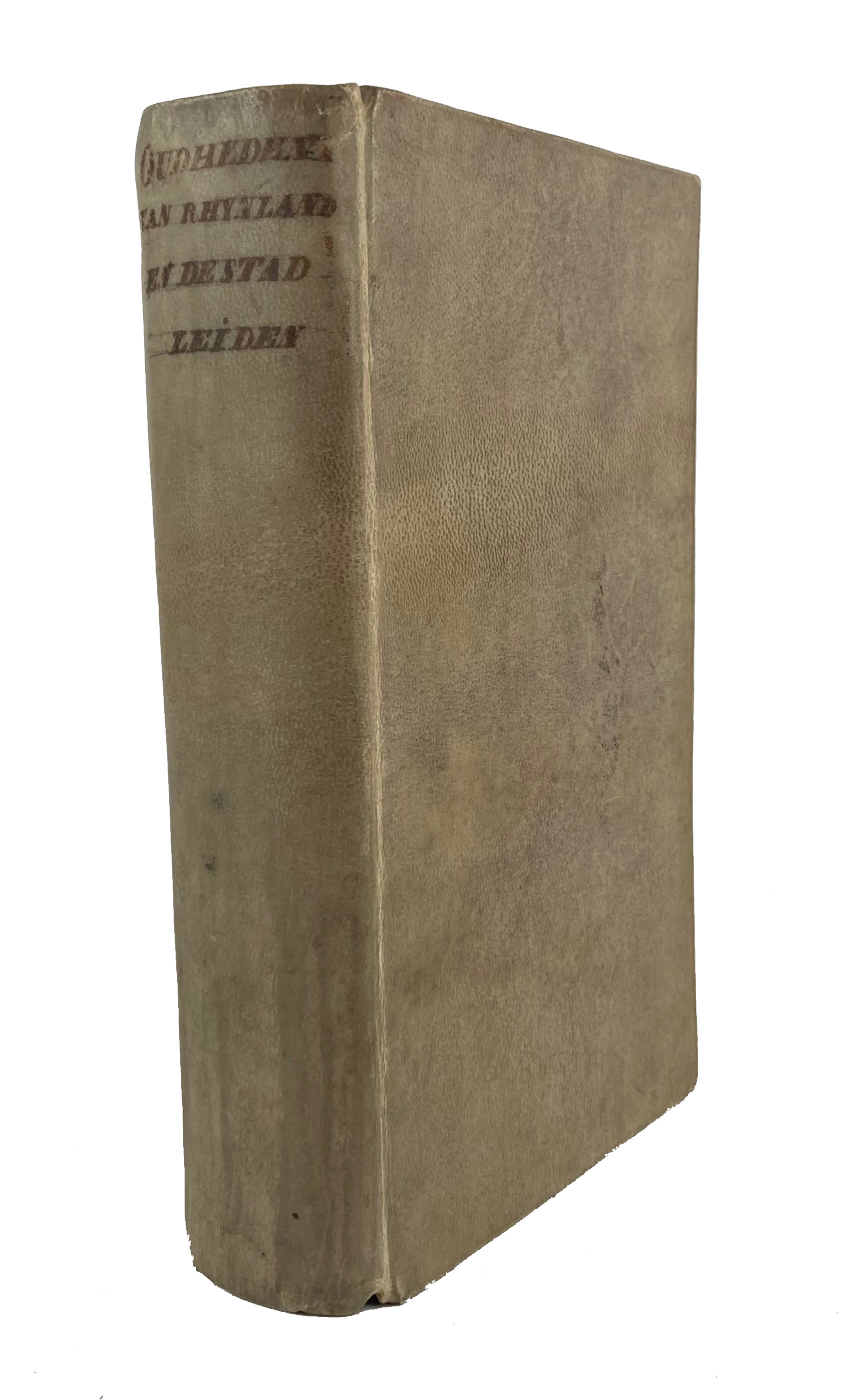 LEIDEN -- (HEUSSEN, H.F. v.). Oudheden en gestichten van Rhynland, en wel voornamentlijk van de stad Leiden. Uyt het Lat. vert., en met aantek. opgehelderd, d. H. v. R(ijn). Leiden, Chr. Vermey, 1719. (56), 708, (19) pp. W. 5 fold. engr. views. Later vellum (A bit thumbed/traces of use in places, but altog. a reasonable copy).