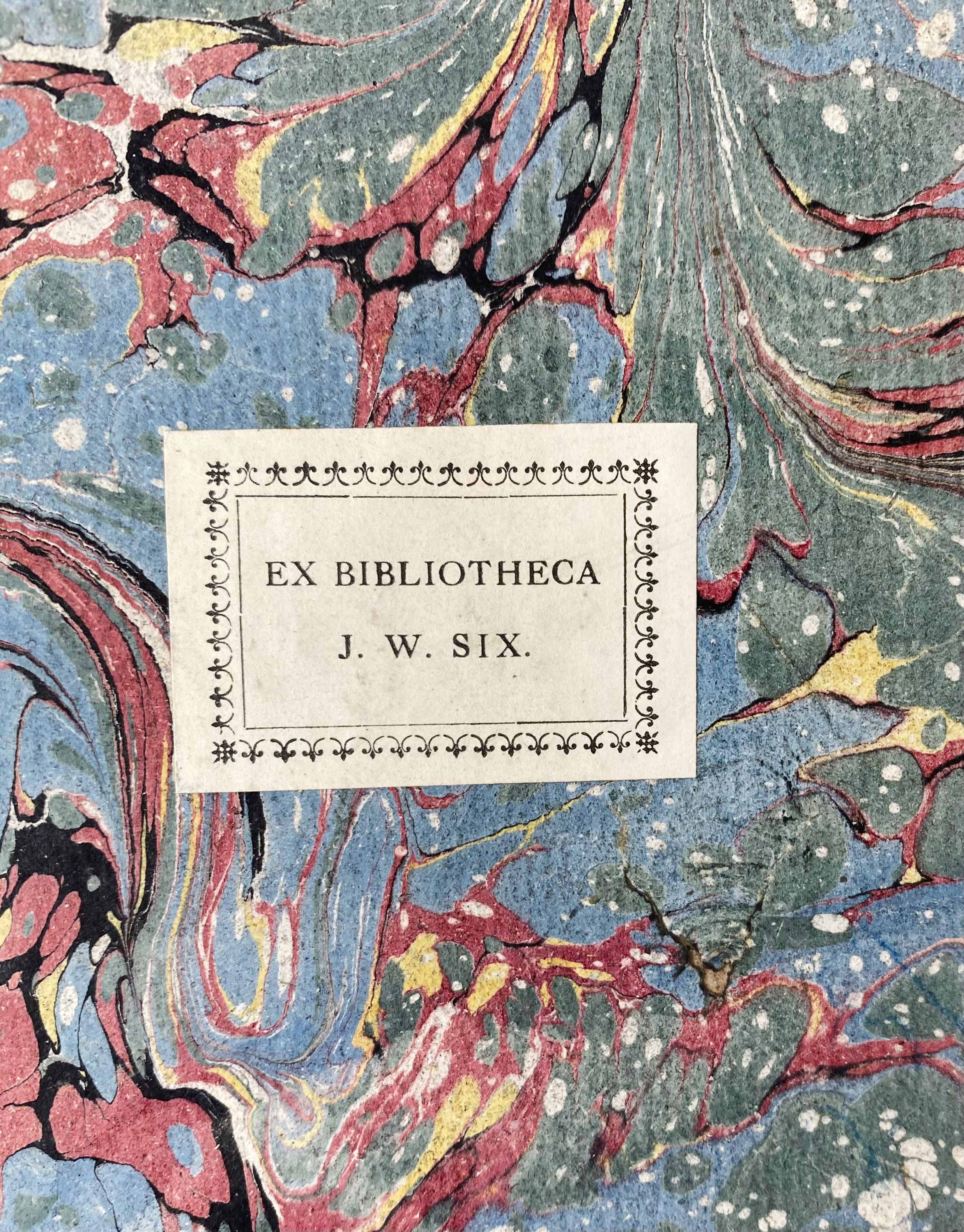 The missing fourth part (register) was never part of this luxuriously produced set on thick paper from the library of J.W. Six (auction Nov. 1925, no. 1702, described as 4 parts in 3 volumes) and the library of J.H. van de Kroft. - Haitsma Mulier/v.d. Lem 376B. - Fine and attractive set, bound by the Dissertation Bindery (Utrecht). See Storm v. Leeuwen IIB, p. 814ff.€ 360