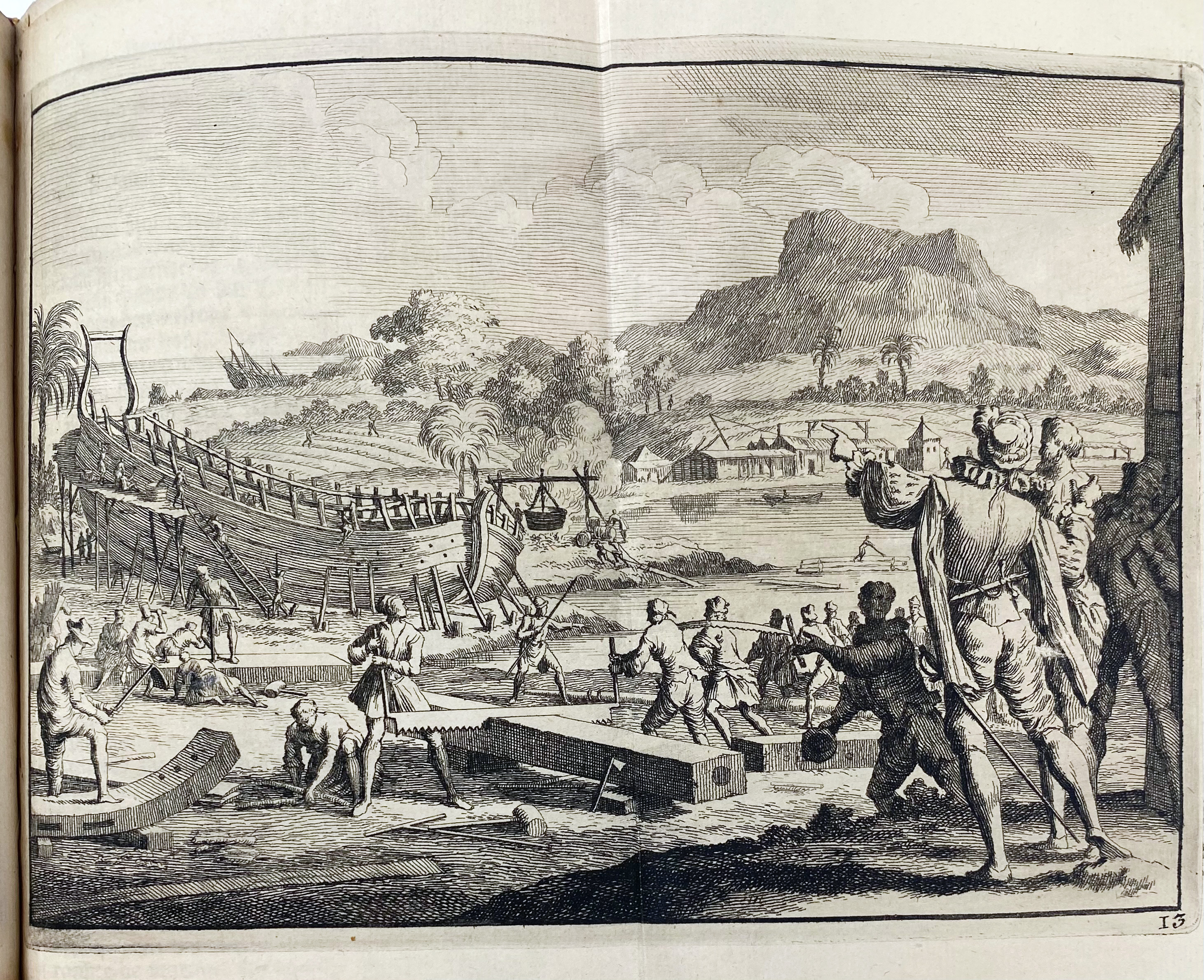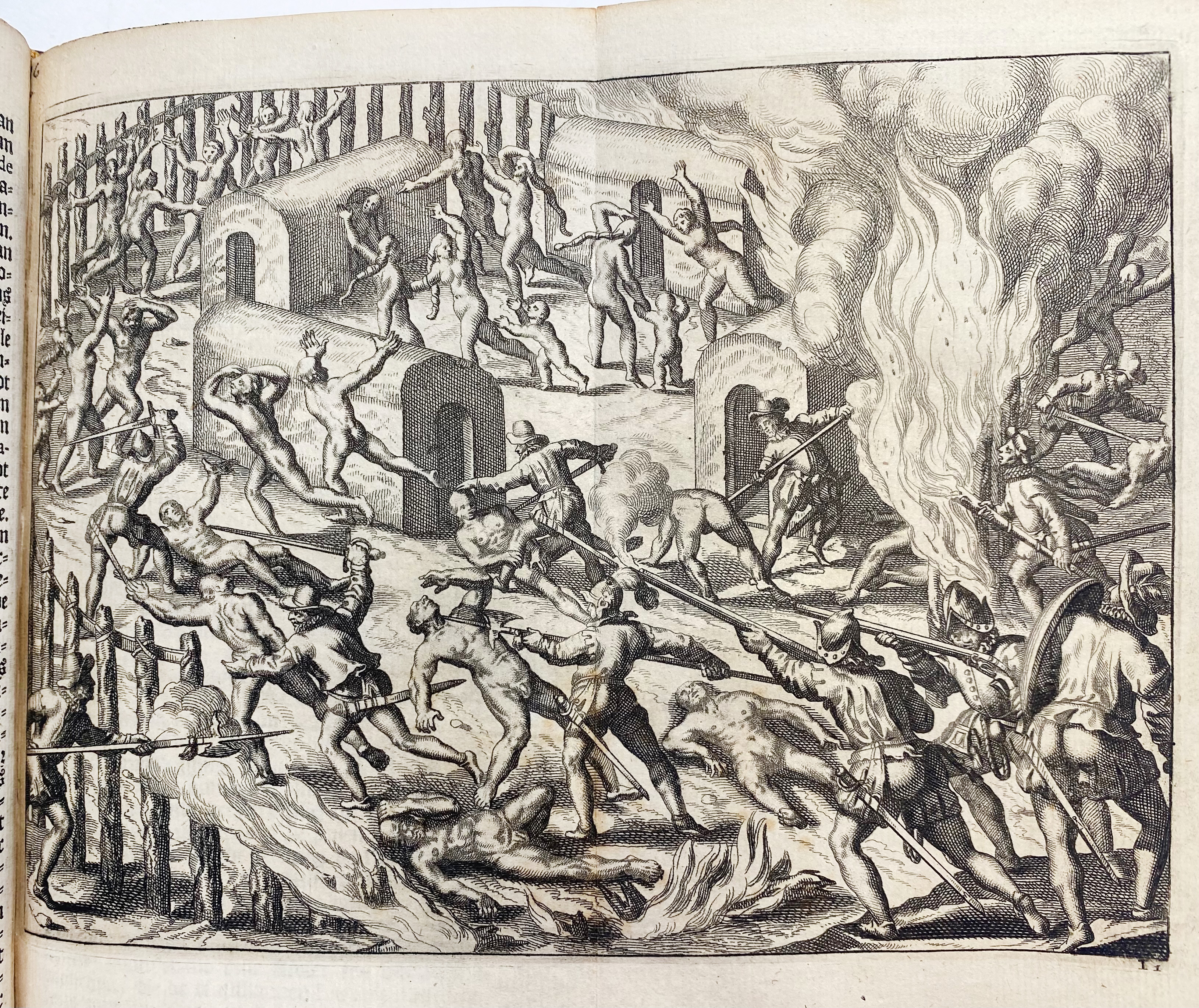 A rare work on the voyage of Jean d'Ezquebel, who was sent on an expedition to the island of Jamaica by Diego Columbus in 1510, sailing from Hispaniola. The book also contains an account of Diego Velasquez's voyage to Cuba in 1511. The fine illustrations show encounters with the inhabitants of the islands, the building of a boat, etc. The two other shorter works in this volume describe voyages to the Guianas. - Sabin 3; Tiele 5.
