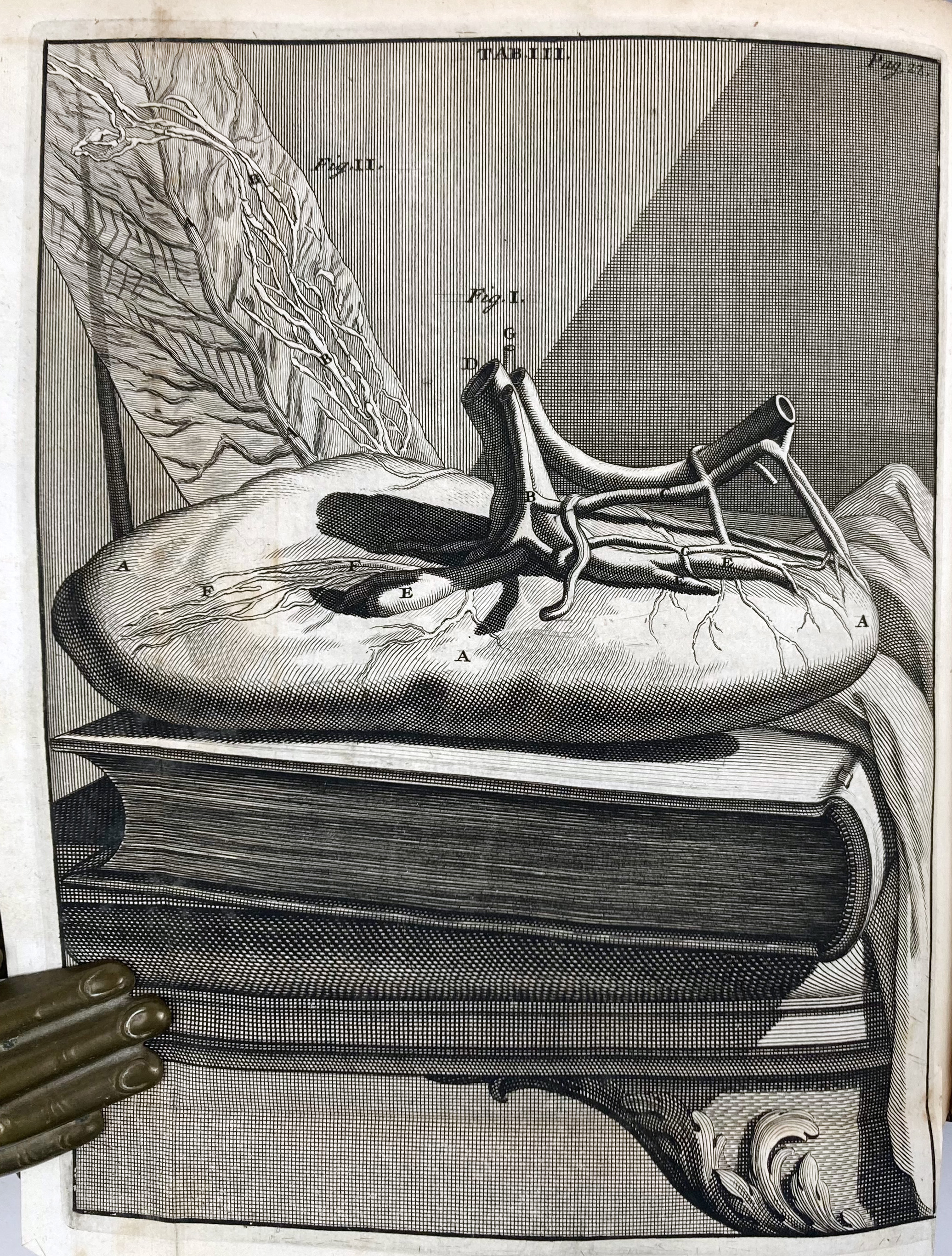 ANATOMY -- BIDLOO, G. Opera omnia anatomico-chirurgica. Edita et inedita. Quorum sequens pagina seriem continet. Leyden, S. Luchtmans, 1715. (14), 216, (48), (6), 51, (2), 48, (2), 24, 169 pp. W. woodcut vign. on title-p., 33 plates (several fold.) & illustr. in the text. Sm-4°. Cont. vellum w. paper ticket on spine. (Vellum age-toned, upper hinge partly split, marginal yellowing, occasional spots, 1 p. torn at the lower corner w. minimal loss of text, bookplate: 'Atkinson' on paste down).
