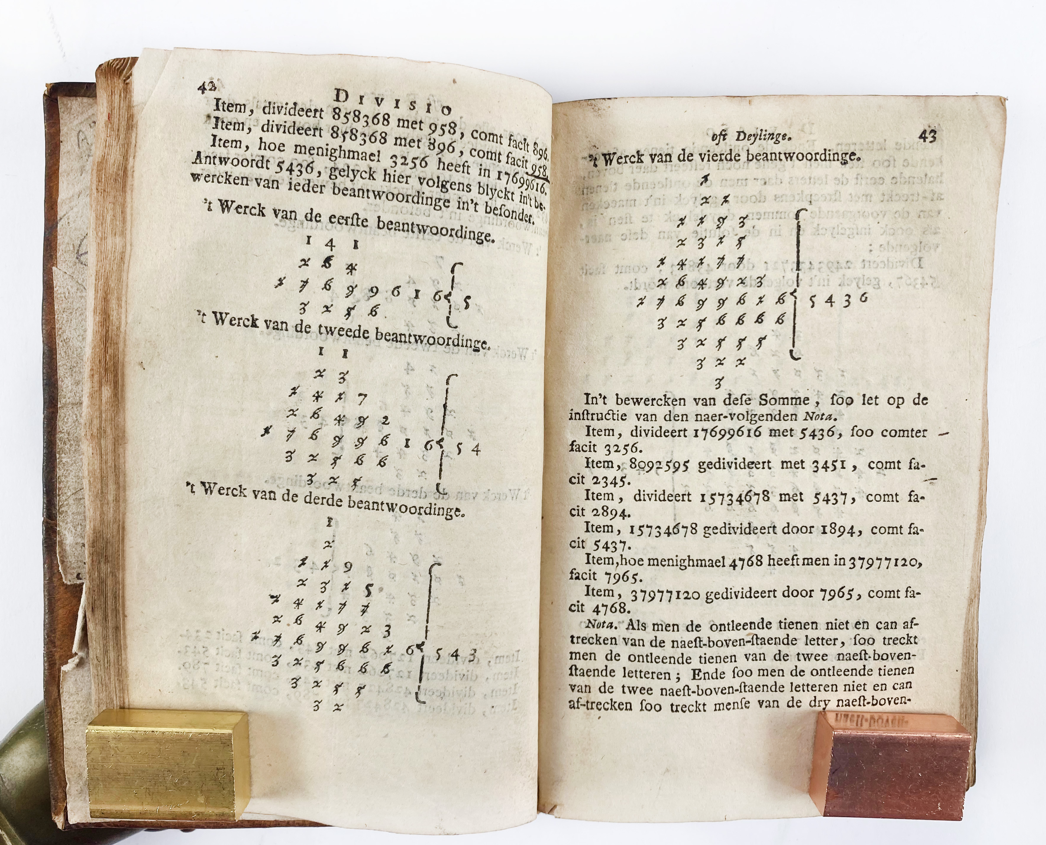 COCK v. ENCHUYSEN, D. De Cyfer-konst noyt voor desen de Leerling grondiger noch ook duydelycker voor-gesteldt. (…) verb. d. G. vander Heyden. Antw., J.J.G. de Marcour, (n.d., c. 1757). Cont. cf., spine w. raised bands, gilt dec. & black label. (Fly-lvs. lack, some annot. in ink in old hands on paste-down & occasionally in text, bindwork sound).