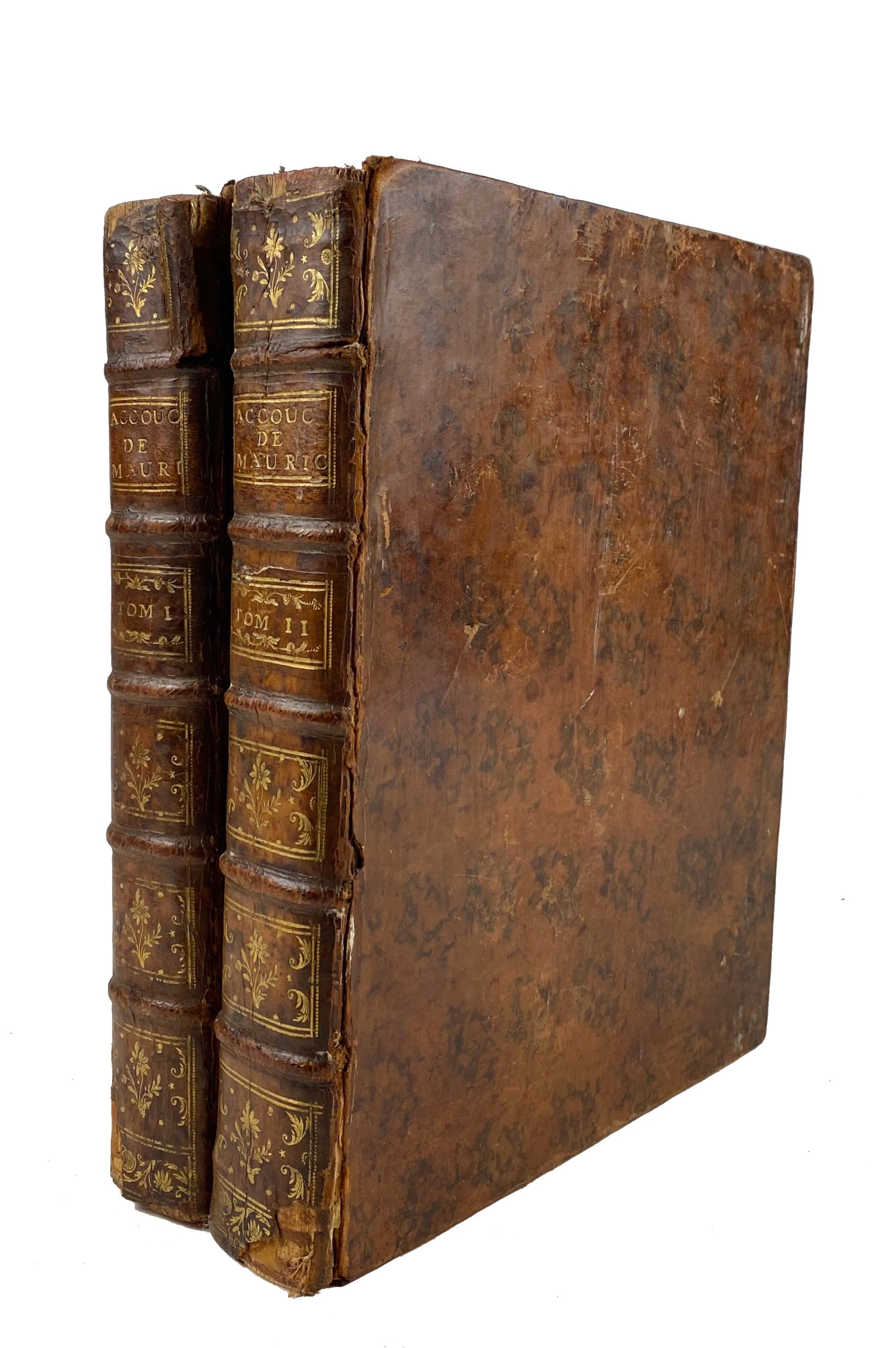 GYNAECOLOGY & OBSTETRICS -- MAURICEAU, Fr. Traité des maladies des femmes grosses, et de celles qui sont accouchées. 7e éd. - Observations sur la grossesse et l'accouchement des femmes, et sur leurs maladies, et celle des enfans nouveau-nés. Nouv. éd. - Par., 1738-40. 2 vols. (12), 555, (25); (8), 671 pp. W. num. text-engrs. 4°. Cont. mottled cf. w. raised bands, dec. gilt backs & red edges. (Spine ends dam., corners bumped, sl. age-toned).