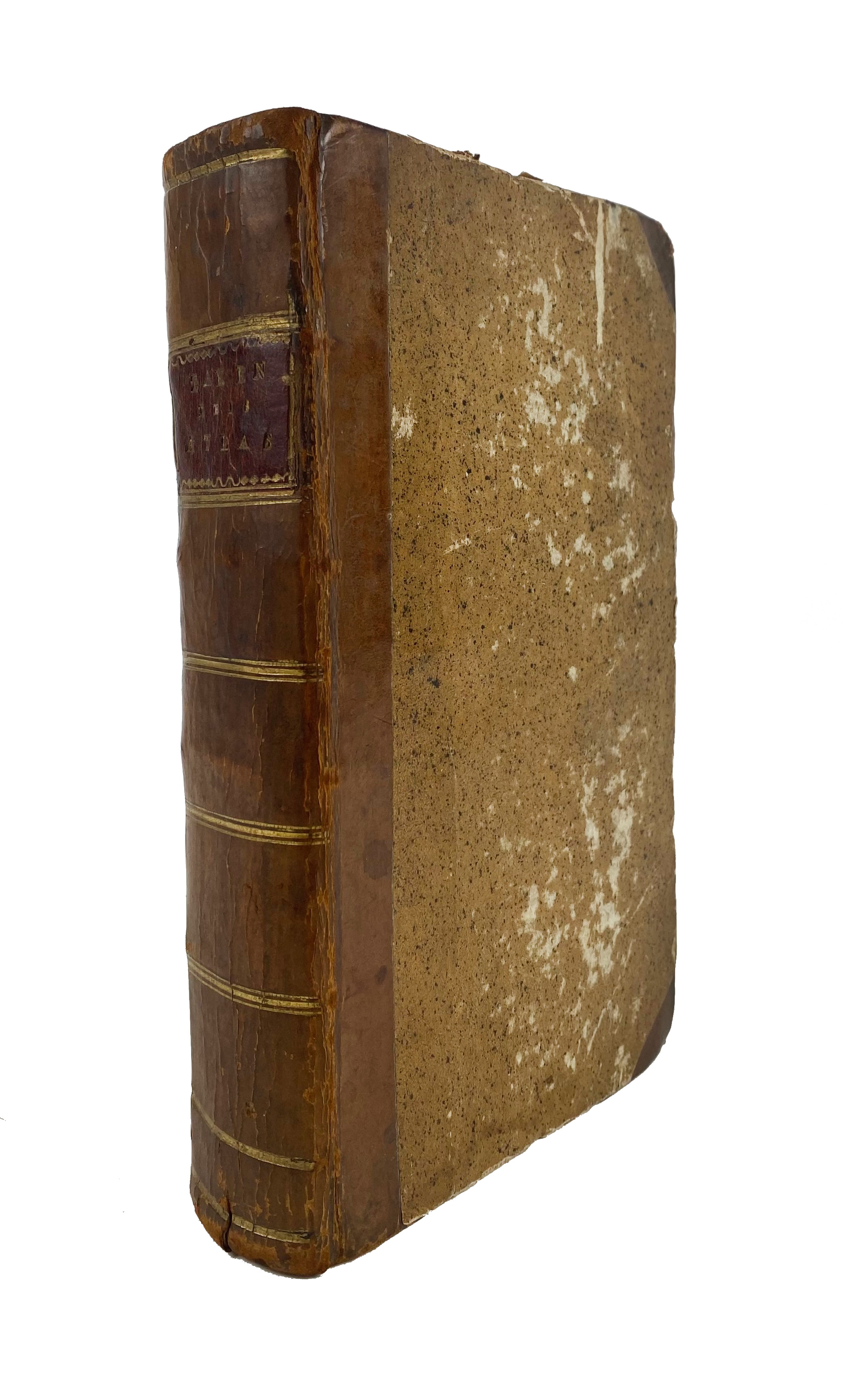 ATLASES -- BRENDER À BRANDIS, N. Nieuwe natuur- geschied- en handelkundige zak- en reis-atlas. Amst., S.J. Baalde, 1788. (8), 236, (4) pp. W. 47 (of 48) handcold. engr. maps on 46 fold. plates, 2 handcold. distance tables and a fold. handcold. plate with the flags of the world. Cont. hcf. w. red label. (Without map 12 (Africa)).