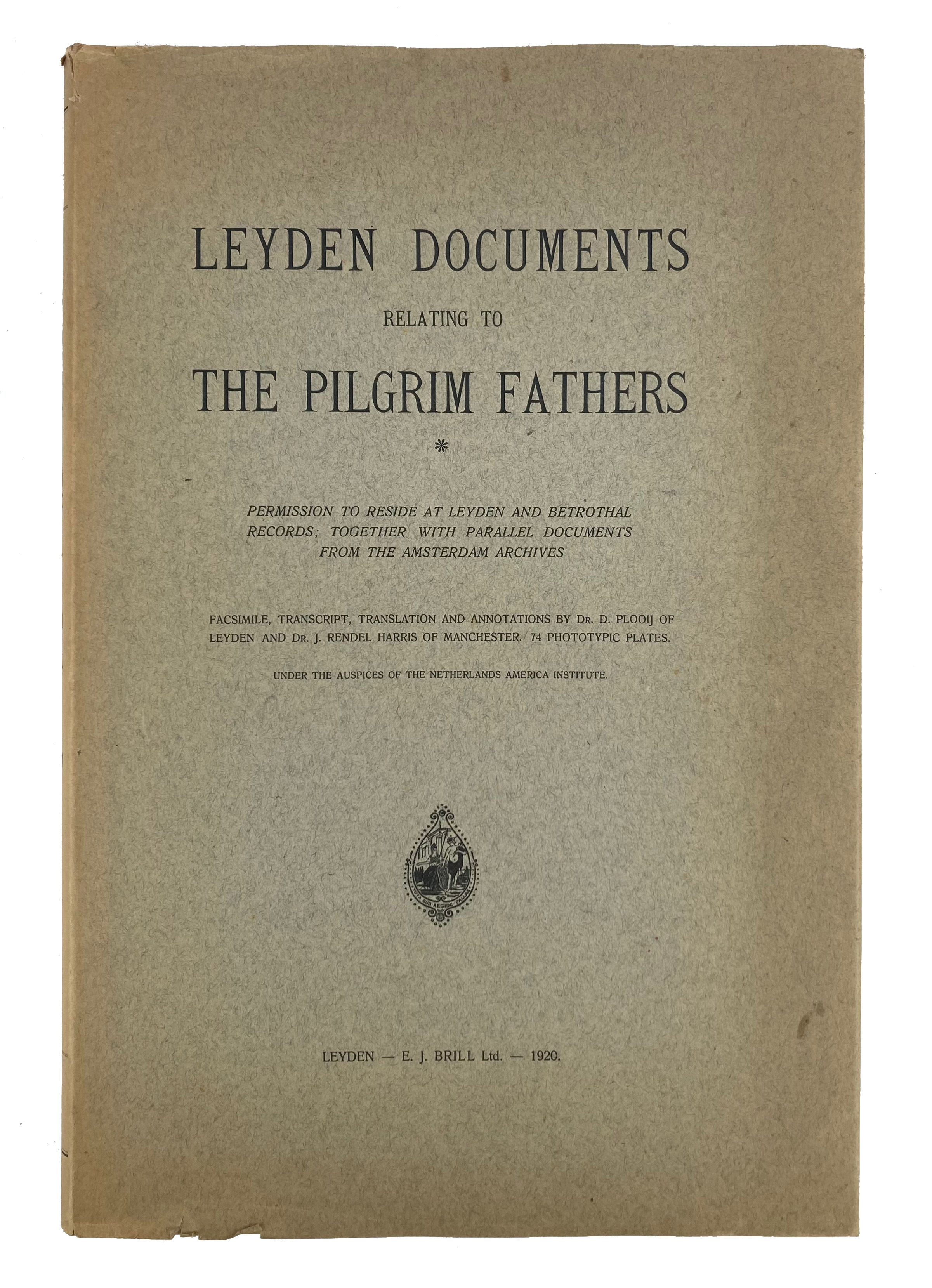 LEIDEN -- PILGRIM FATHERS -- PLOOIJ, D. & J.R. HARRIS, (eds.). Leyden documents relating to the Pilgrim Fathers. Permission to reside at Leyden and betrothal records; together with parallel documents from the Amsterdam archives. Leyden, 1920. xii, lxxiv, (6) pp. Fol. Ohcl., uncut, w. or. dust-j.