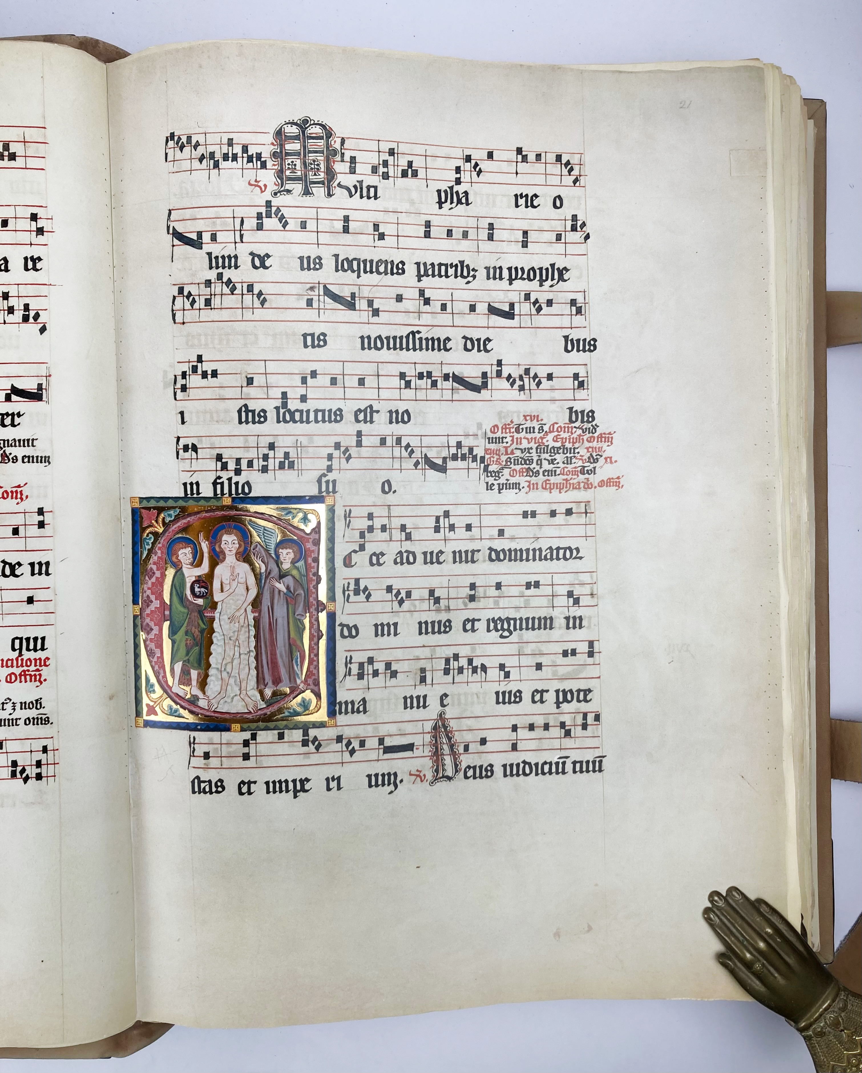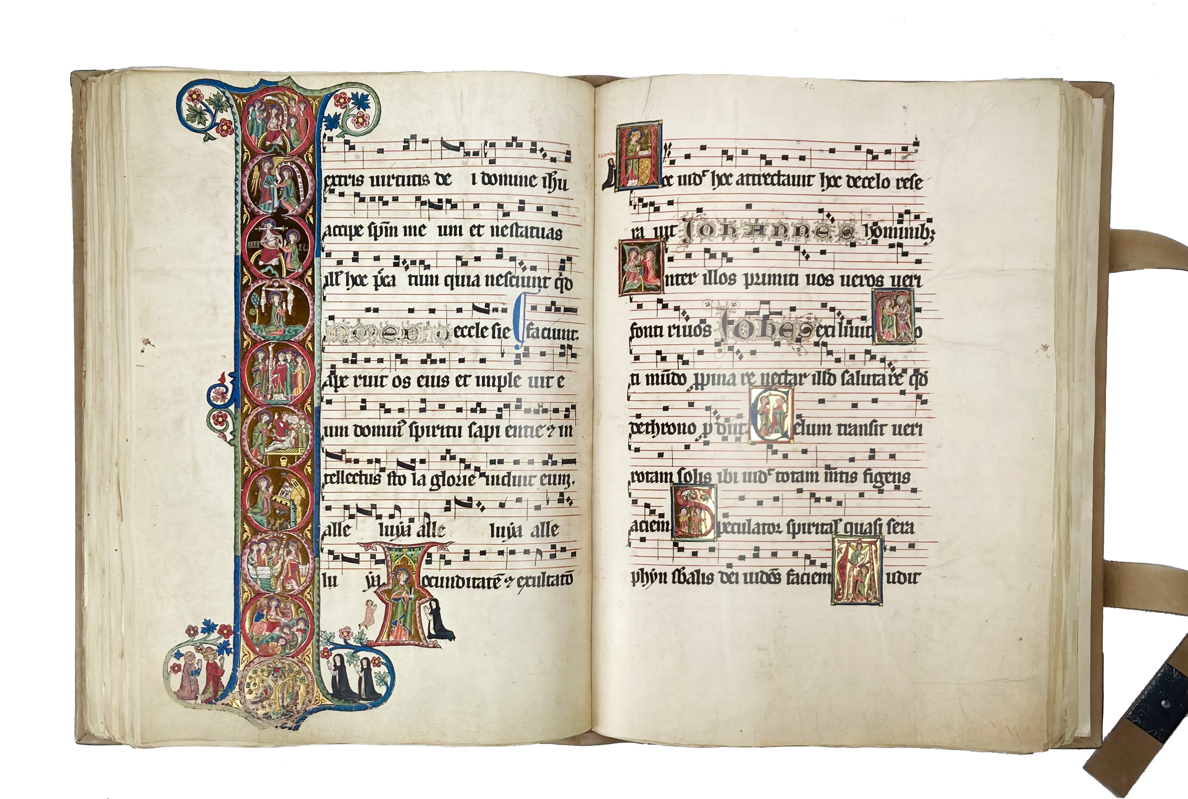 FACSIMILE EDITIONS -- GRADUALE VON ST. KATHARINENTHAL, Das. Codex LM 26117. Luzern, Faksimile Verl., 1980. W. many cold. miniatures on gold and num. cold. & gilded initials. Lge-Fol. Or. full cf., spine w. raised bands, metal bosses & clasps. (A few very light scuffmarks).