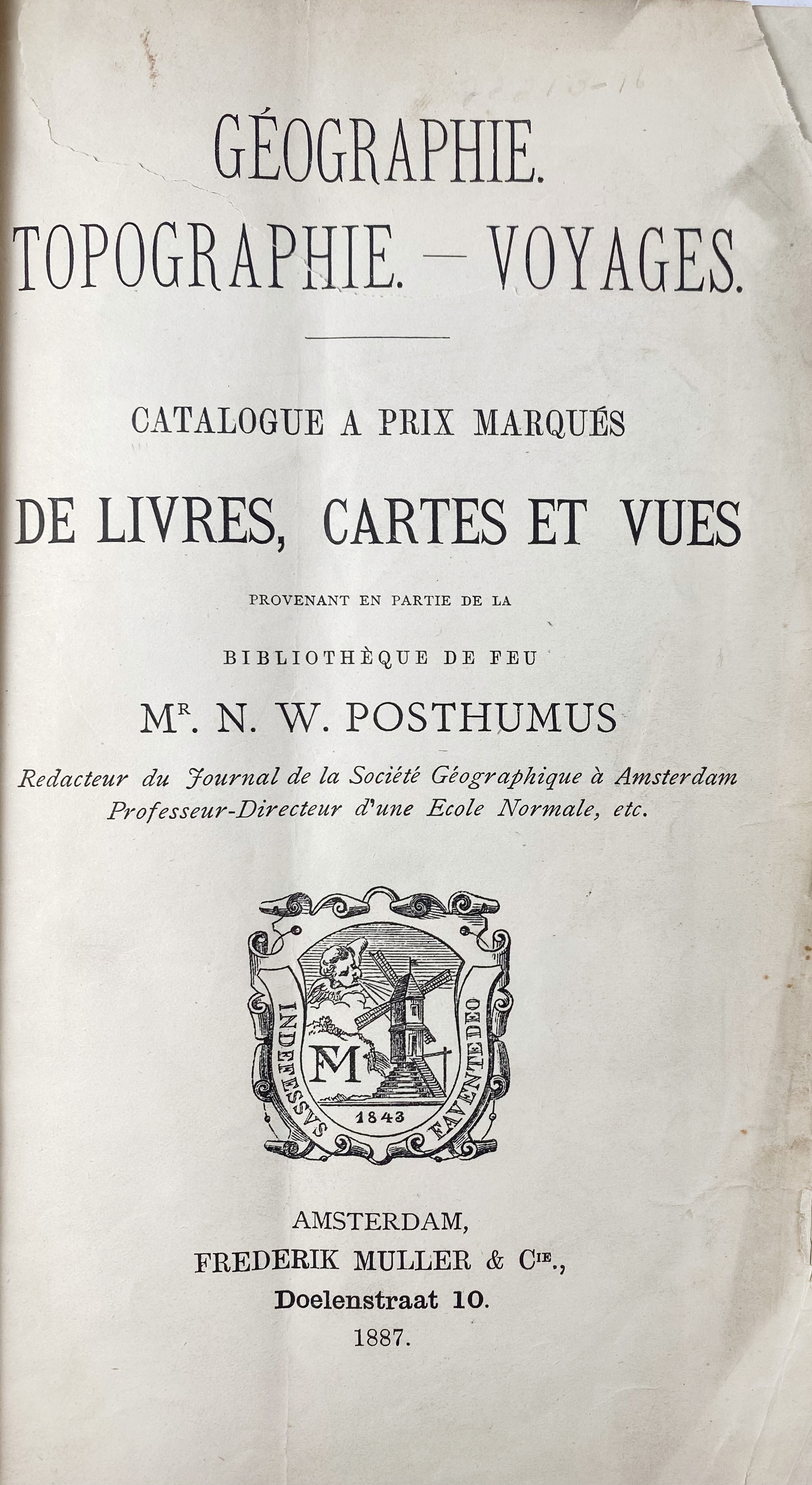 GÉOGRAPHIE. Topographie. Voyages. Catalogue a prix marqués de livres, cartes et vues provenant en partie de la bibliothèque de feu Mr. N.W. Posthumus. Amst., Fred. Muller, 1887. Cl. (Tear in ti-p.). Scarce. W. bookplate of Donald E. Roy. -- A. HELLER. Der Deutsche Buchdruckerverein und sein Werden in fünfzig Jahren (1869-1919). 1919. W. tinted plates. Fol. Or. full cf. w. raised bands, w. gilt dec., inside dentelles. A presentation copy in a fine binding, with gilt lettering on front side: "Den United Typothetae of America gewidmet vom Deutschen Buchdrucker-Verein". -- P. HETZ, hrsg. Basler Büchermarken b.z. Anfang des 17. Jh. (Repr. ed. 1895). 1984. Fol. Ohcf. -- (3).
