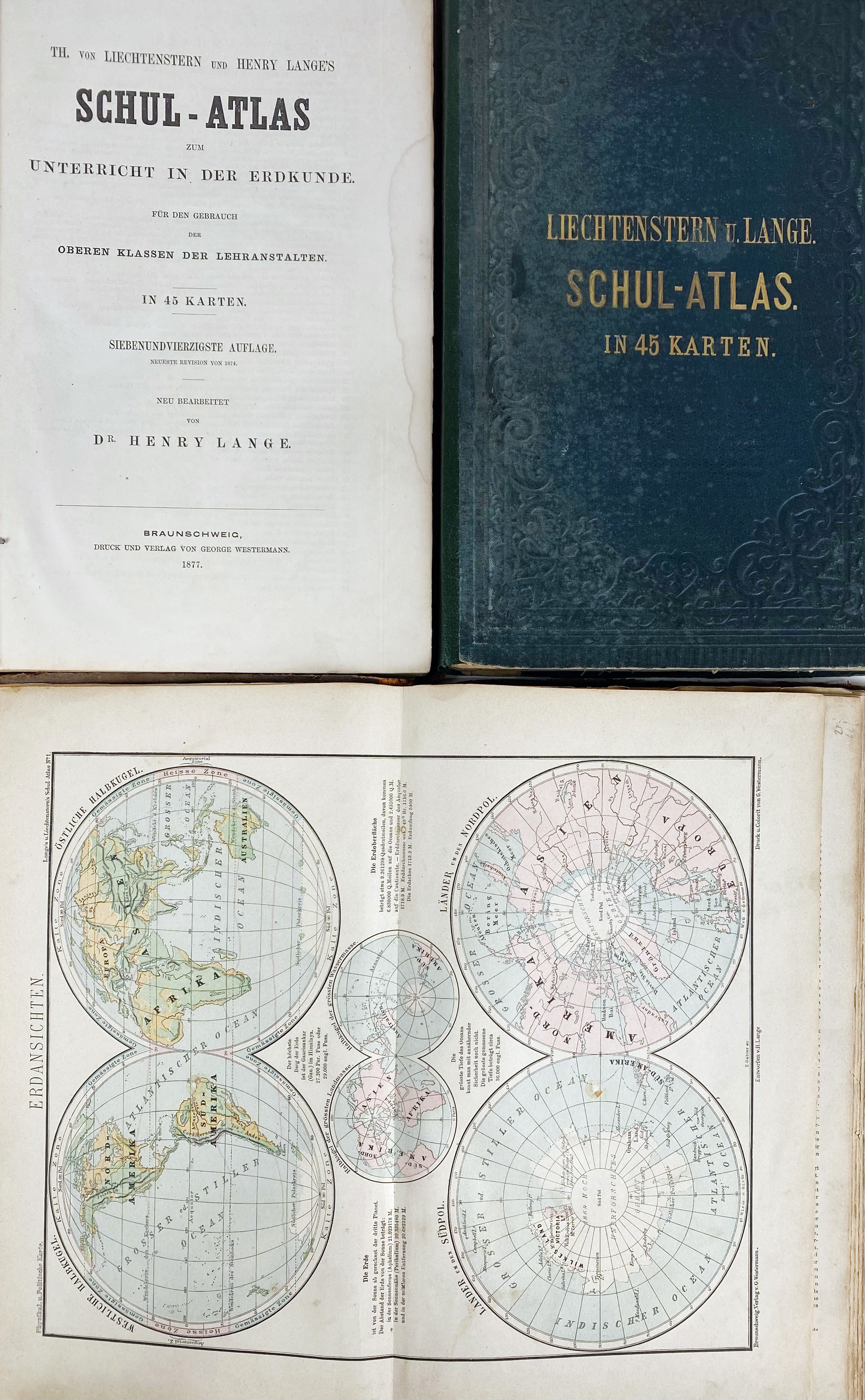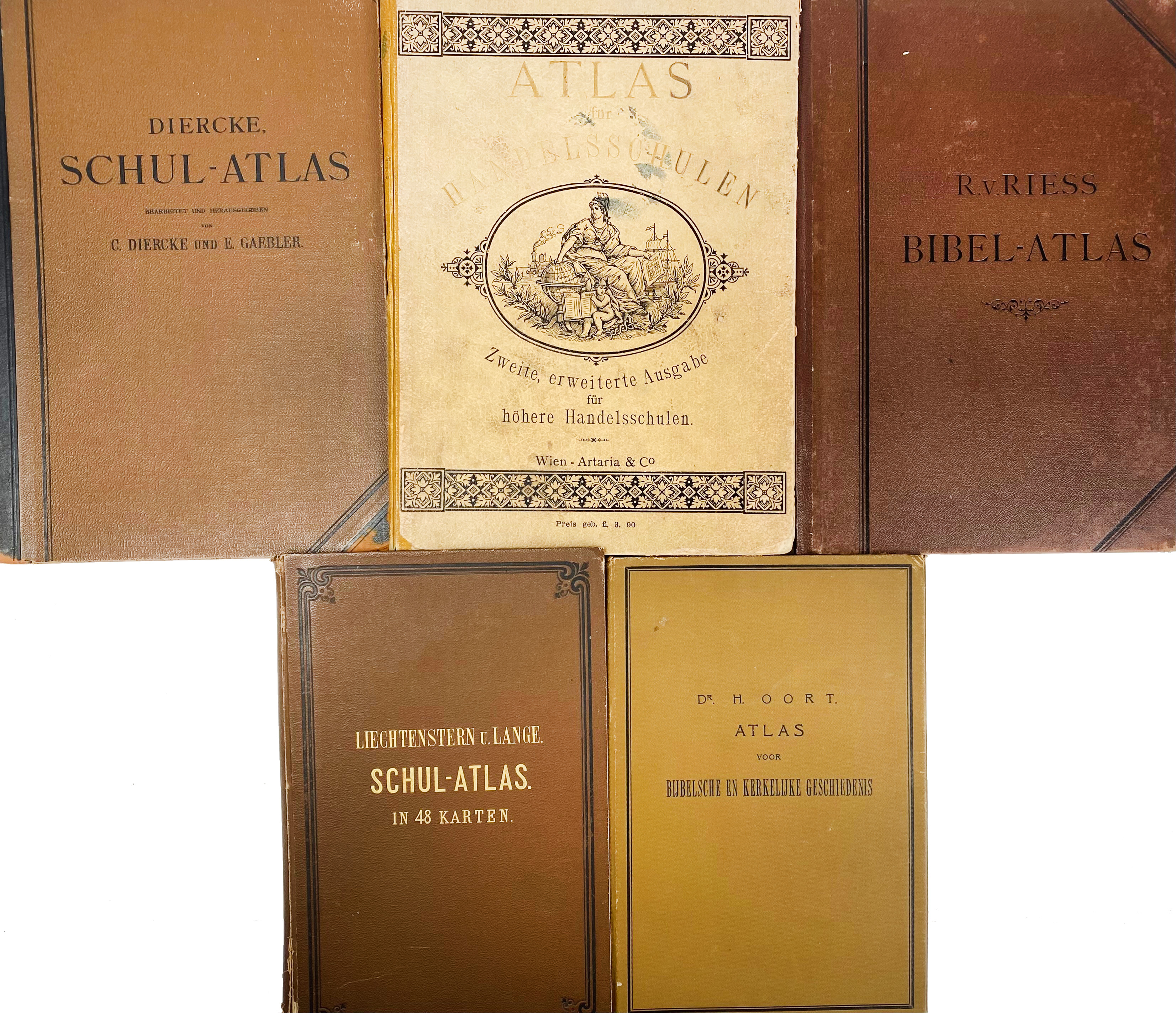 JOSENHANS, J. Atlas der evangelischen Missions-Gesellschaft zu Basel. Basel, (1859). W. engr. ti. & 11 cold. (fold.) maps. 4°-obl. Limp brds. (Ti-p. dust-soiled). -- W. HUGHES. Bible maps; or, a historical and descriptive atlas of scripture geography. Lond., 1841. W. 12 maps, cold. in outlines. Lge-8°. Blind tooled cl. -- And 8 o., incl. 6 German school-atlases. (10).