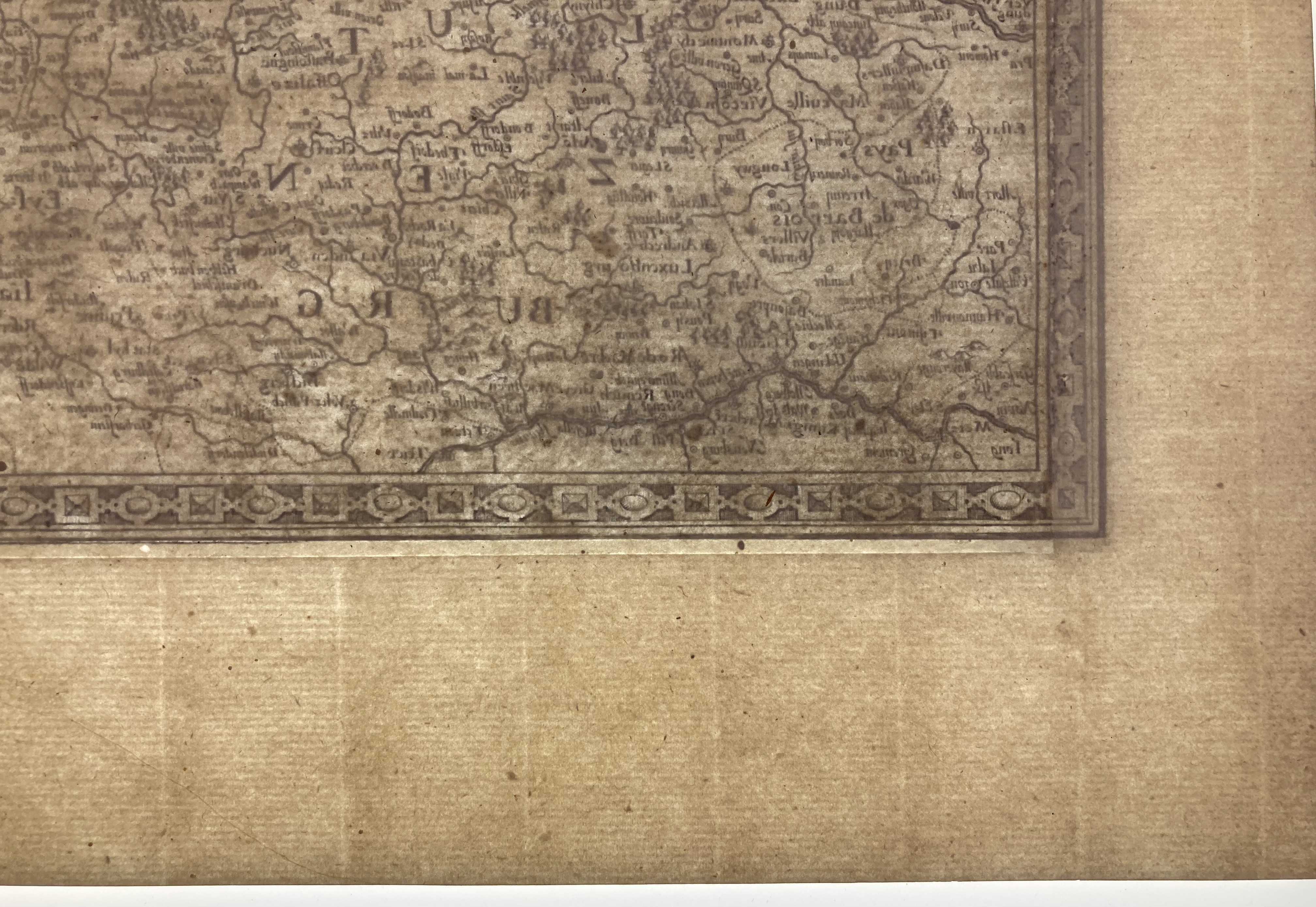 Very rare and decorative map of the XVII Provinces. One of the first maps published by the famous Dutch publisher Willem Jansz. Blaeu. The map is strongly influenced by Filips Galle's wall map of ca. 1578, known by Vrients' re-issue of 1605. Third state (of 4), without date. - In excellent condition. Van der Heijden 59/3; Schilder II, 166-67.€ 1200