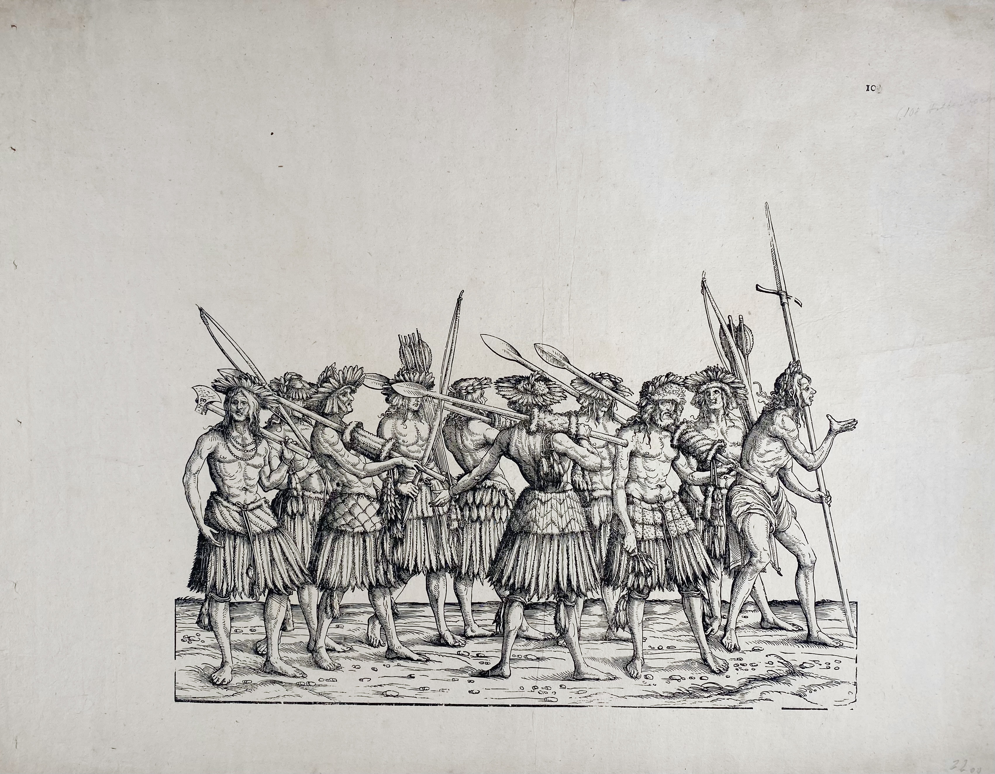 BURGKMAIR I, Hans (1473-1531). (Man riding an elephant and holding a frame) & (People of Calicut). (Vienna, M. A. Schmidt 1796). 2 woodcuts taken from "Kaiser Maximilians I. Triumph" (Adam Bartsch 1796), numb. 107 & 108. 428 x 558 mm (=paper size).