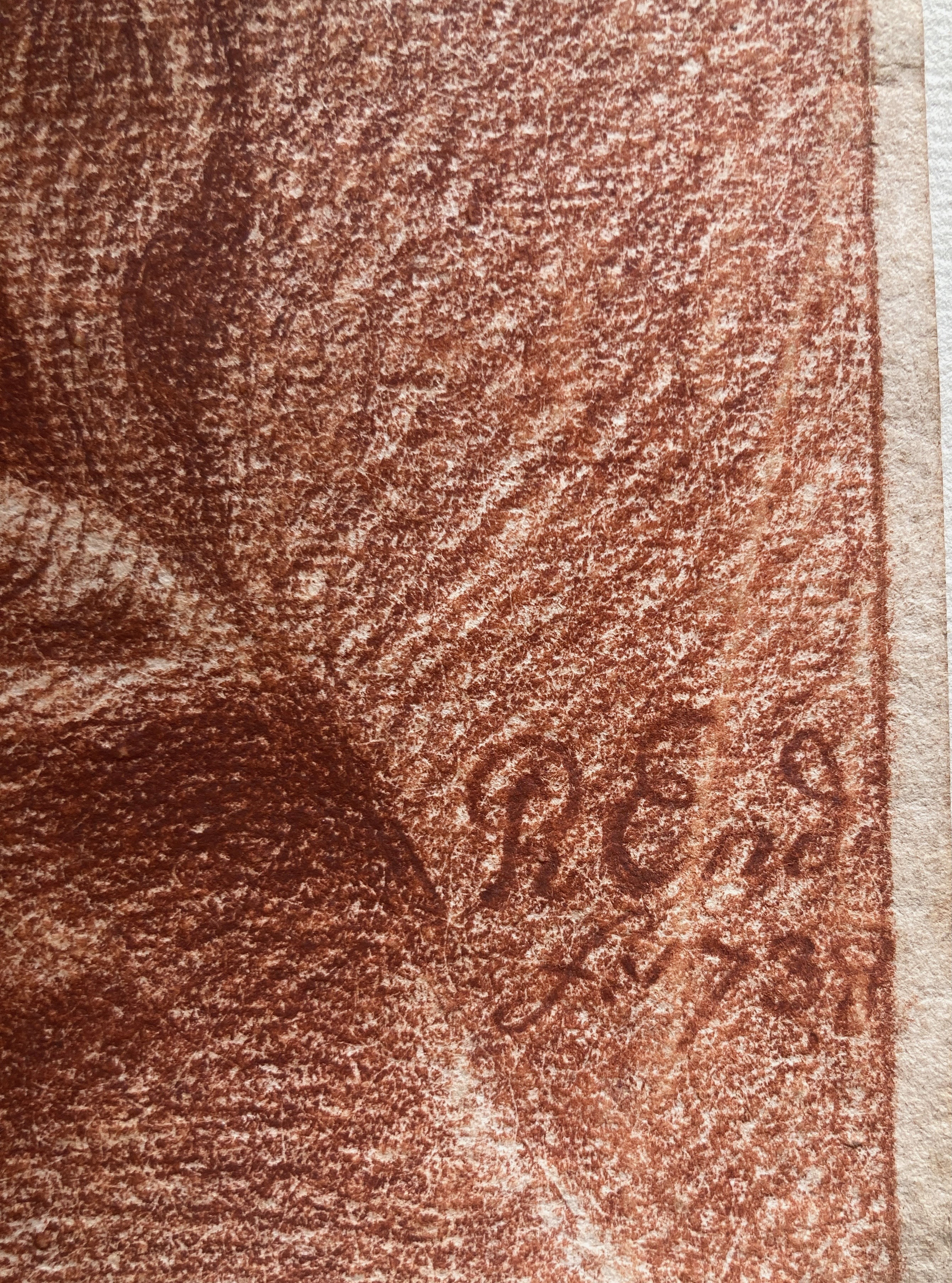 PORTRAITS -- LUDEMAN -- END, R. (?). (Portraits (alledgedly) of Johannes Christophorus Ludeman (1683-1757) and his wife Britta Beyer (±1682 - ±1741)). Dated 1738. Pair of portraits, drawn w. red chalk on handmade paper. c. 420 x 302 mm each (paper size). (Top outer right margin of portrait of Britta a bit frayed/dam., paper flaw in top of image Ludeman, else in v.g. condition).