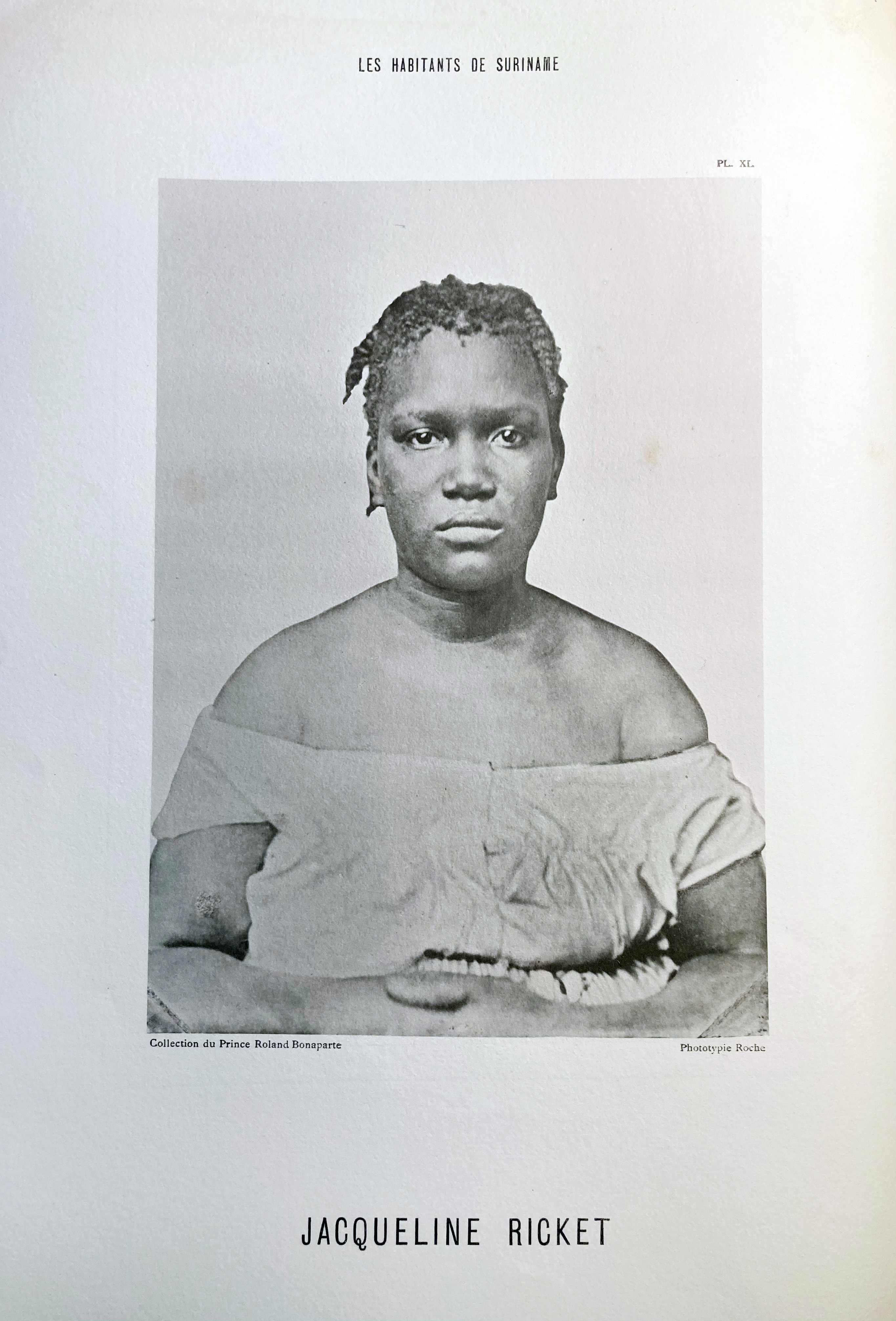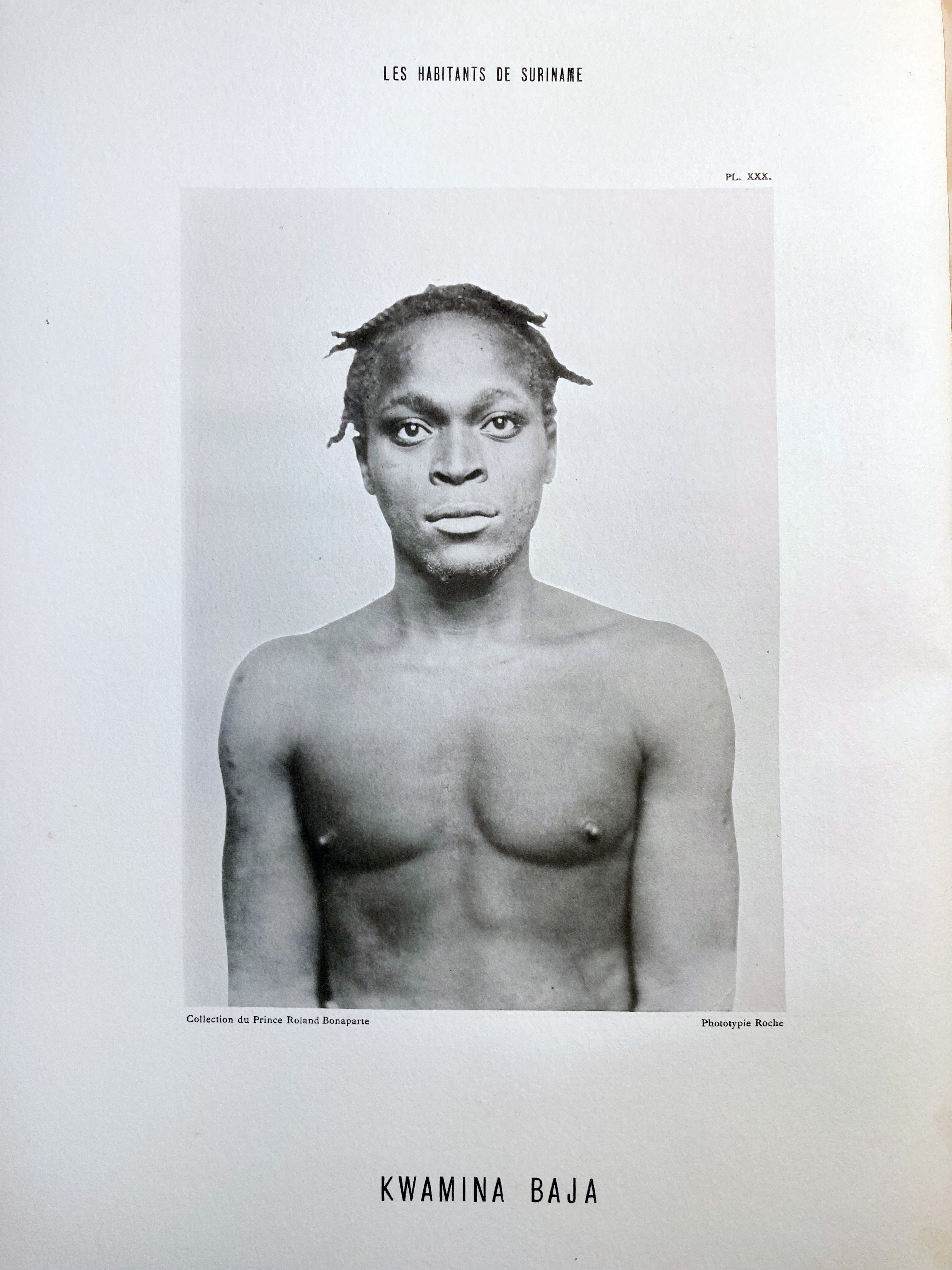 Prince Roland Bonaparte (1858-1924) was the grandson of Lucien Bonaparte, a brother of Napoleon. In this first major anthropological work on the inhabitants of Surinam, he describes the colony of Surinam at the end of the 19th century. It gives a detailed picture of the Indians (Kalina Arrowakken), the Creole city population and the Maroons, the descendants of slaves who fled from plantations. At the Colonial World Exhibition in 1883, which took place on the Museumplein in Amsterdam, 28 inhabitants of Surinam were exhibited. Roland Bonaparte used this exhibition to compile his book about the inhabitants of Surinam. The book contains 61 beautiful monochrome photographs, each with a detailed description of appearance and background. The intention was to arouse interest in Surinam among Dutch private individuals ‘by showing something from the Colony in the ethnological field that has never been seen in Europe'. The Netherlands abolished slavery in 1863. Many of the people depicted here had therefore experienced slavery. - Rouffaer/M. p.634; Van Doorne 0770. Scarce.
