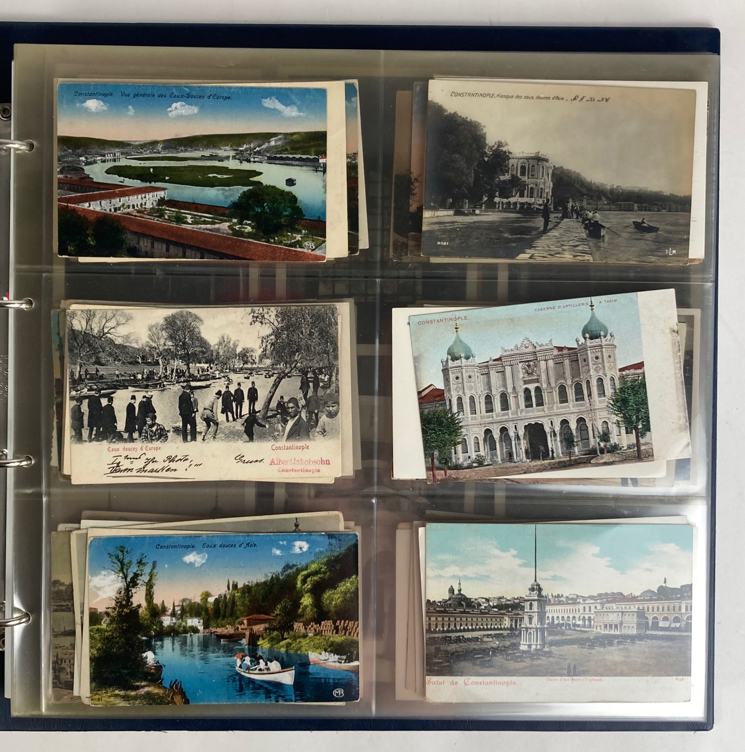 TURKEY -- COLLECTION of c. 720 picture postcards & personal photo's printed as picture cards, b&w and cold., depicting mostly Istanbul but w. a few from Greece & the Balkans. (1900-1930s). Partly circulated. Stored in 2 paper albums and 3 albums w. plastic sleeves.