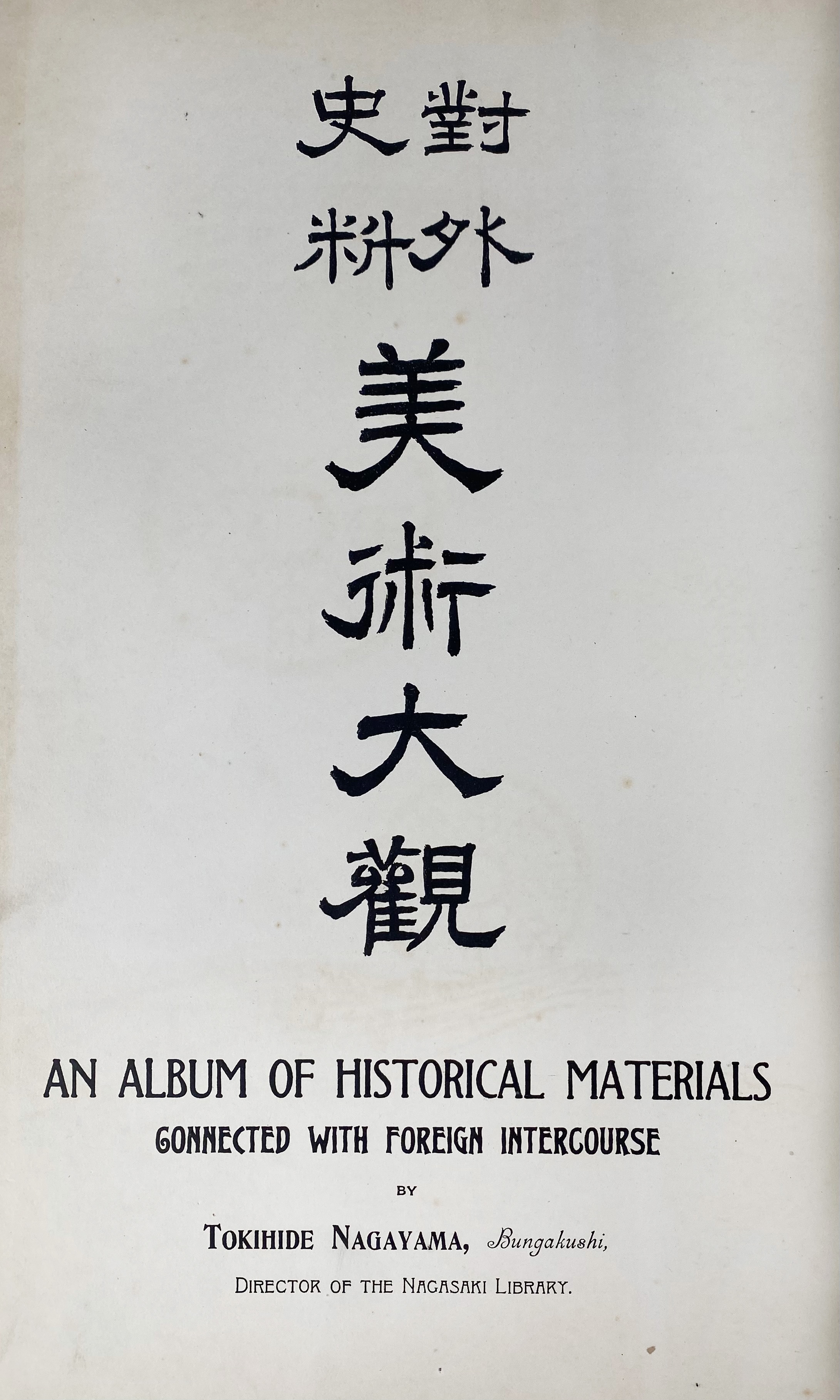JAPAN -- NAGAYAMA, T. An album of historical materials connected with foreign intercourse. Nagasaki, (c. 1918). W. 150 collotype illustr. w. tissue guards. Fol. Or. Japanese thread corded brds. w. gilt dec. silk spine.