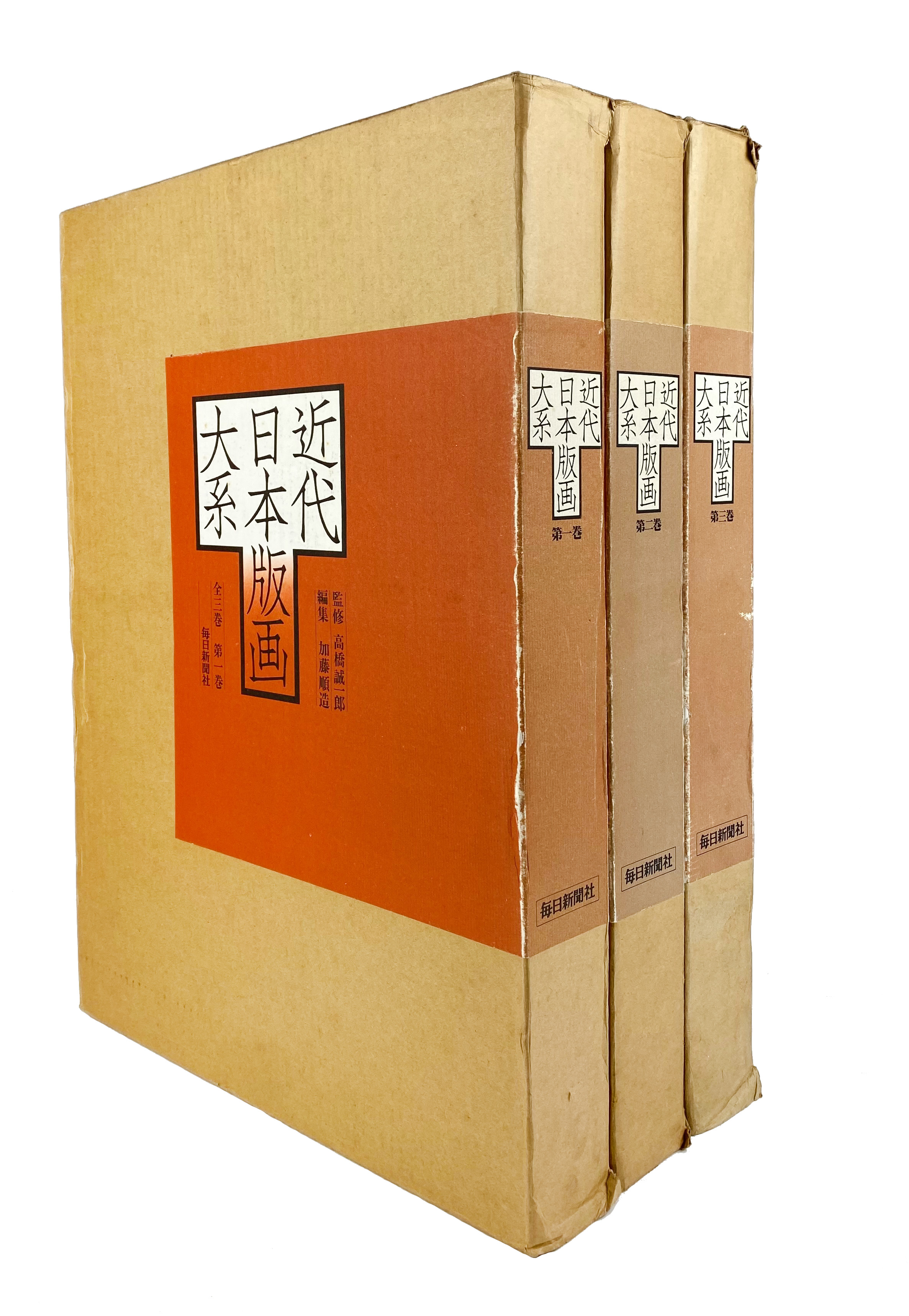 JAPAN -- TAKAHASHI, S., (a.o., ed.). Kindai Nihon Hanga Taikei. (The Great Collection of Modern Japanese Woodblock Print Series). Tokyo, Mainichi, (1975-76). 3 vols. W. num. cold. plates. Fol. Ocl. In ocl. clamshell box. With the original cardboard boxes.