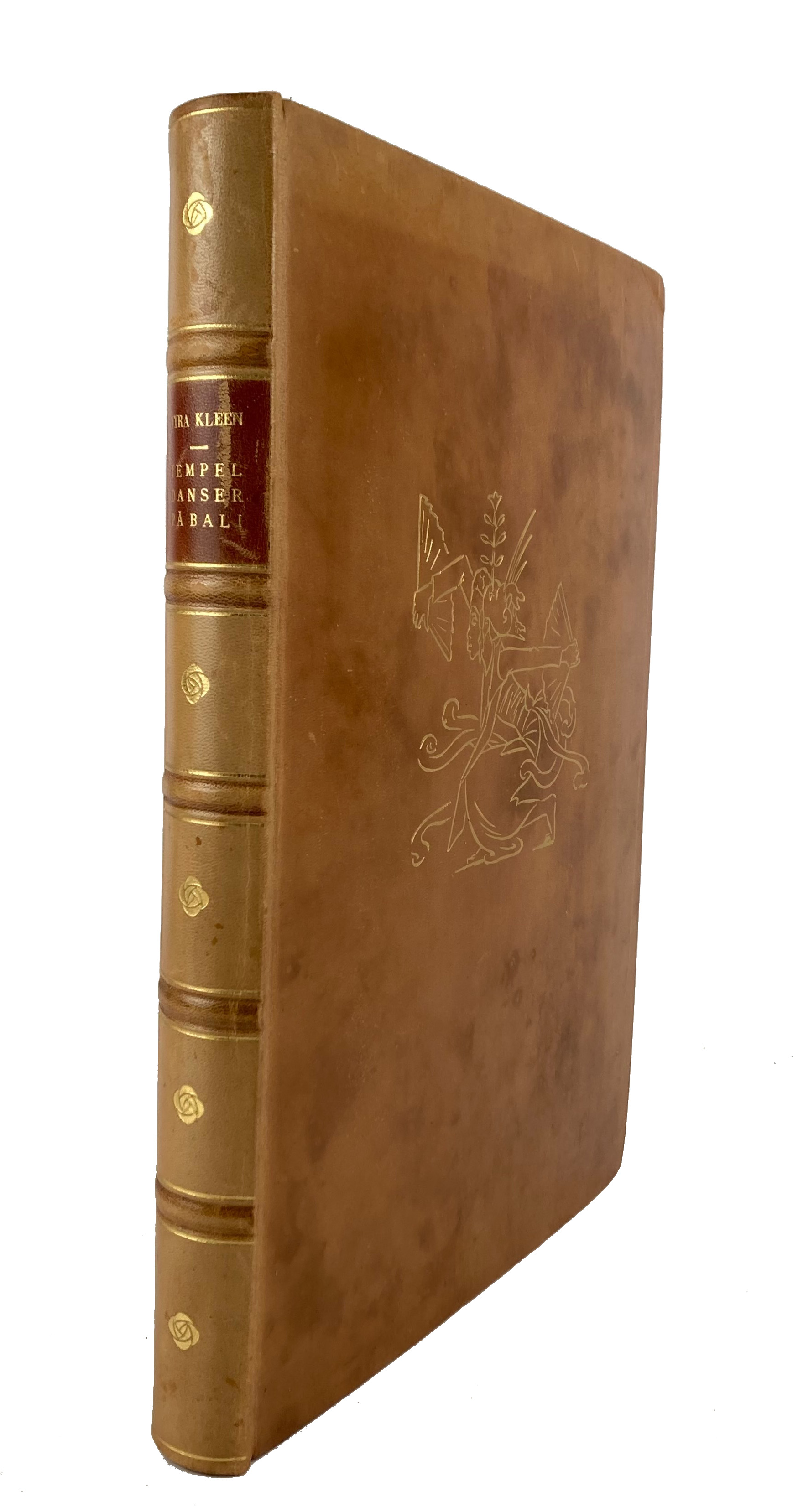 BALI -- KLEEN, T. Templedanser och musikinstrument på Bali. 1951. W. 53 tipped-in (cold.) plates & many illustr. in the text. Fol. Ocf., spine w. raised bands, gilt dec. & red letterpiece, gilt dec. on front side, inside dentelles. (Spine tanned, wear to corners).