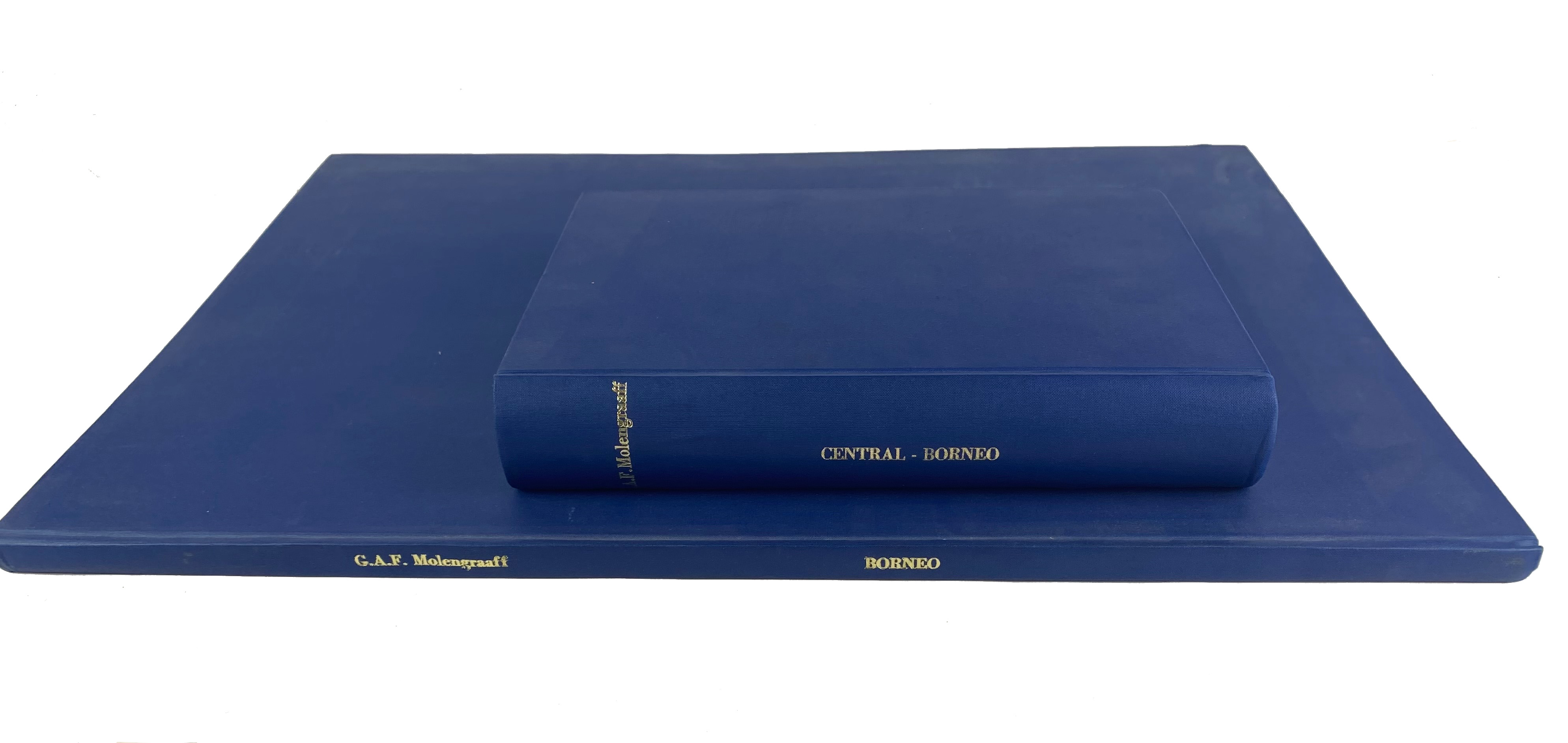 BORNEO -- MOLENGRAAFF, G.A.F. Borneo-Expedition. Geological explorations in central Borneo (1893-94). English rev. ed. w. an appendix on fossil Radiolaria of Central-Borneo. Leyden, E.J. Brill, 1900-1902. 1 text- & 1 atlas-vol. xix, 585; 56 pp. W. 89 text-ills., 3 (fold.) maps & 56 plates; atlas: W. front., & 22 mostly folded and tinted or coloured maps and views (often with additional, smaller maps). Bound in uniform mod. blue cl. w. gilt lettering.
