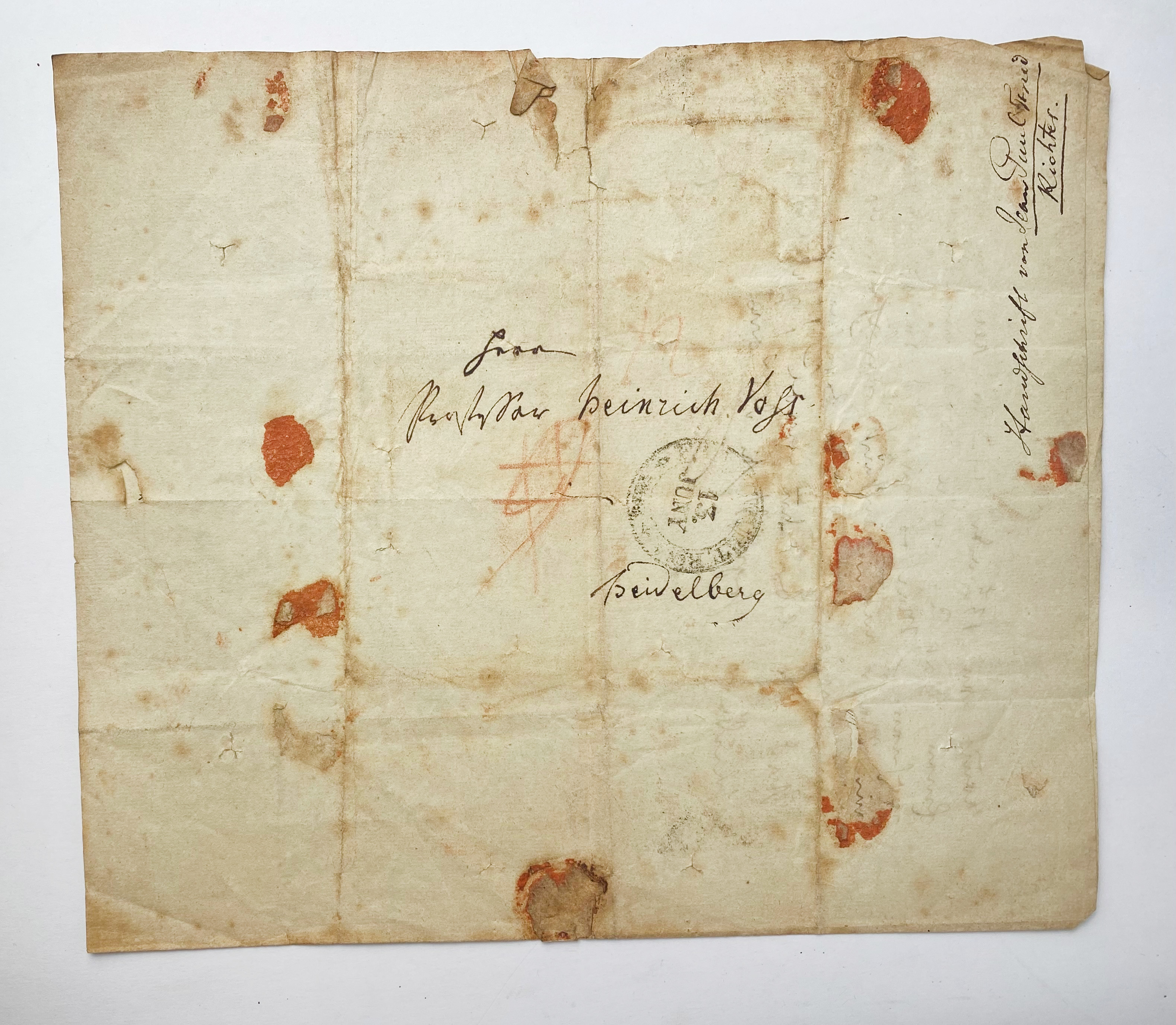 Intimate and expressive autograph letter from Jean Paul Richter, one of Germany's most beloved romantic authors, addressed to his friend Heinnrich Voss (1756-1846) in Heidelberg, son of classical philologist Johann Heinrich Voss.€ 500