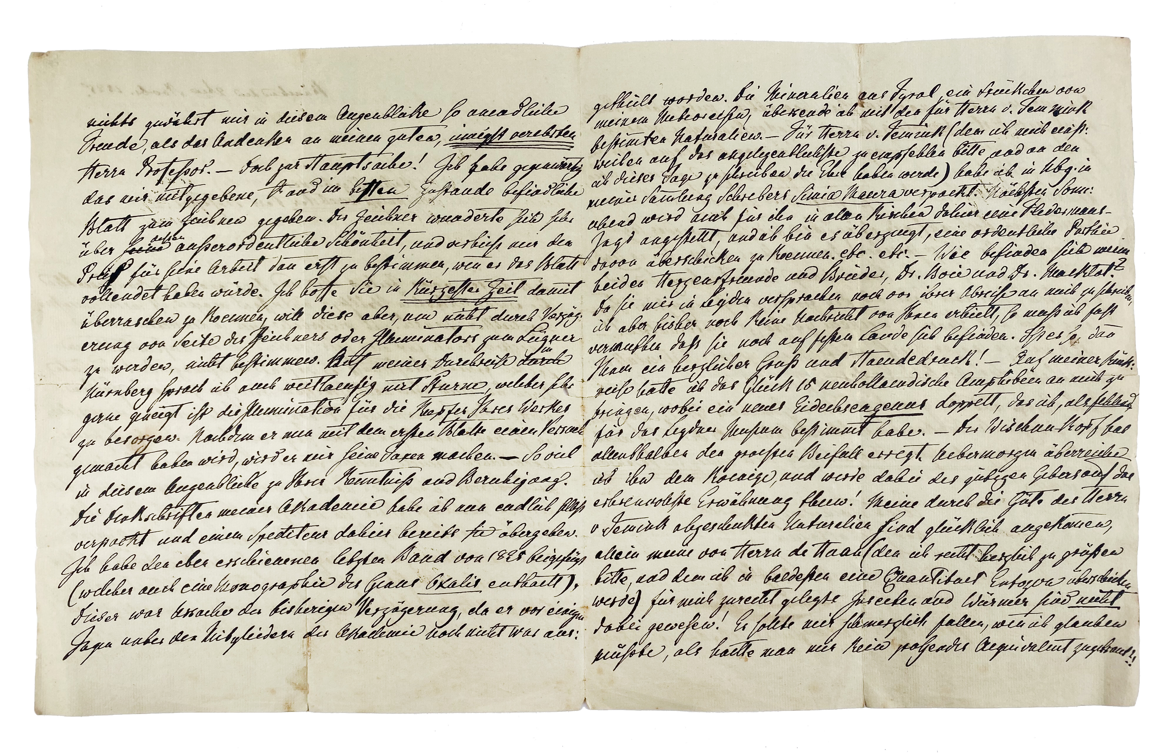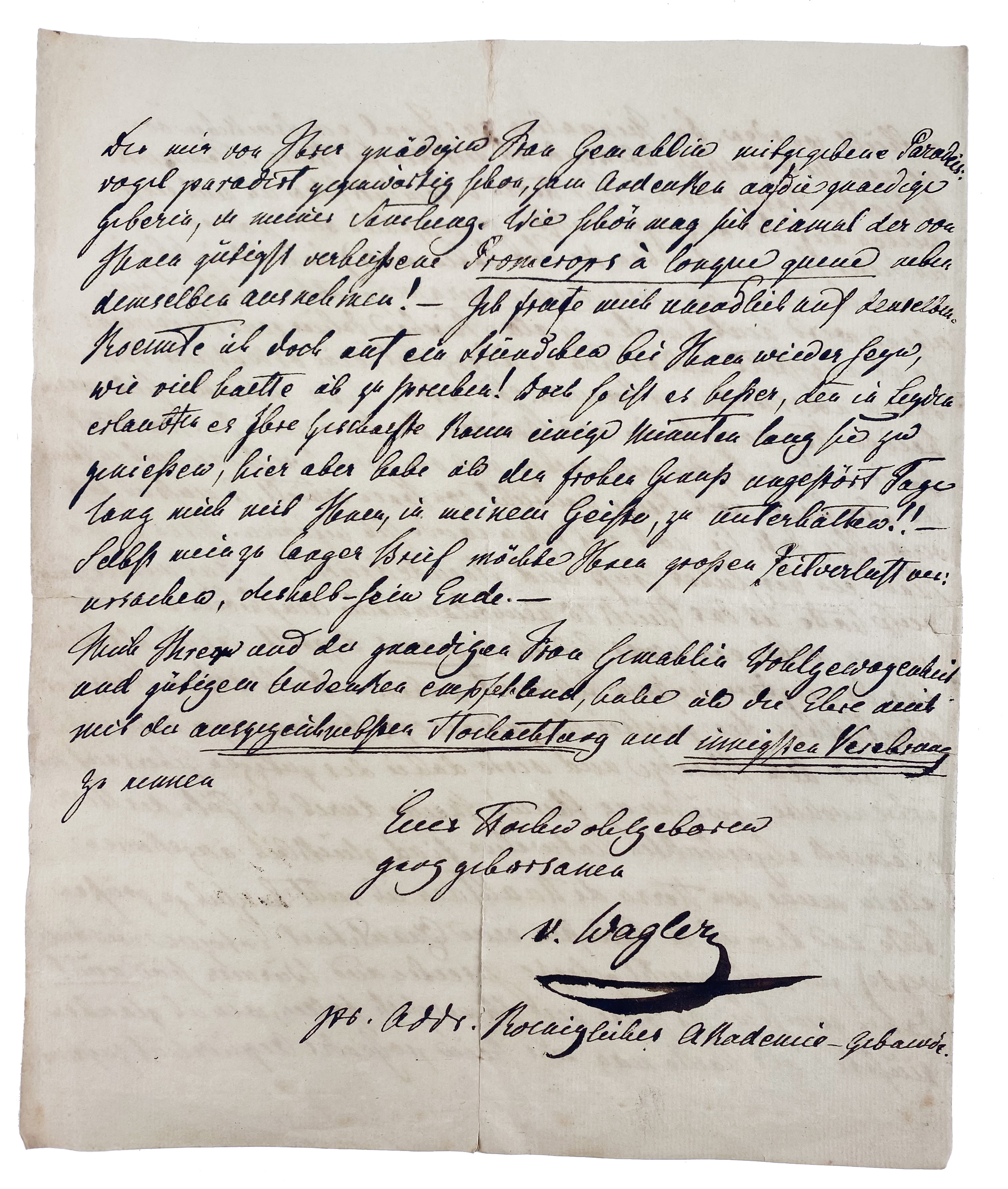 Wagler writes with heartfelt gratitude to the recipient (amost certainly Professor Reinwardt). He expresses deep appreciation for the hospitality, warmth, and care he received during his stay in Leiden. Johann Georg Wagler was a German zoologist known for his work in herpetology and ornithology. A student of J.B. Spix, he curated major zoological collections in Munich and described many new species before his untimely death at age 32.