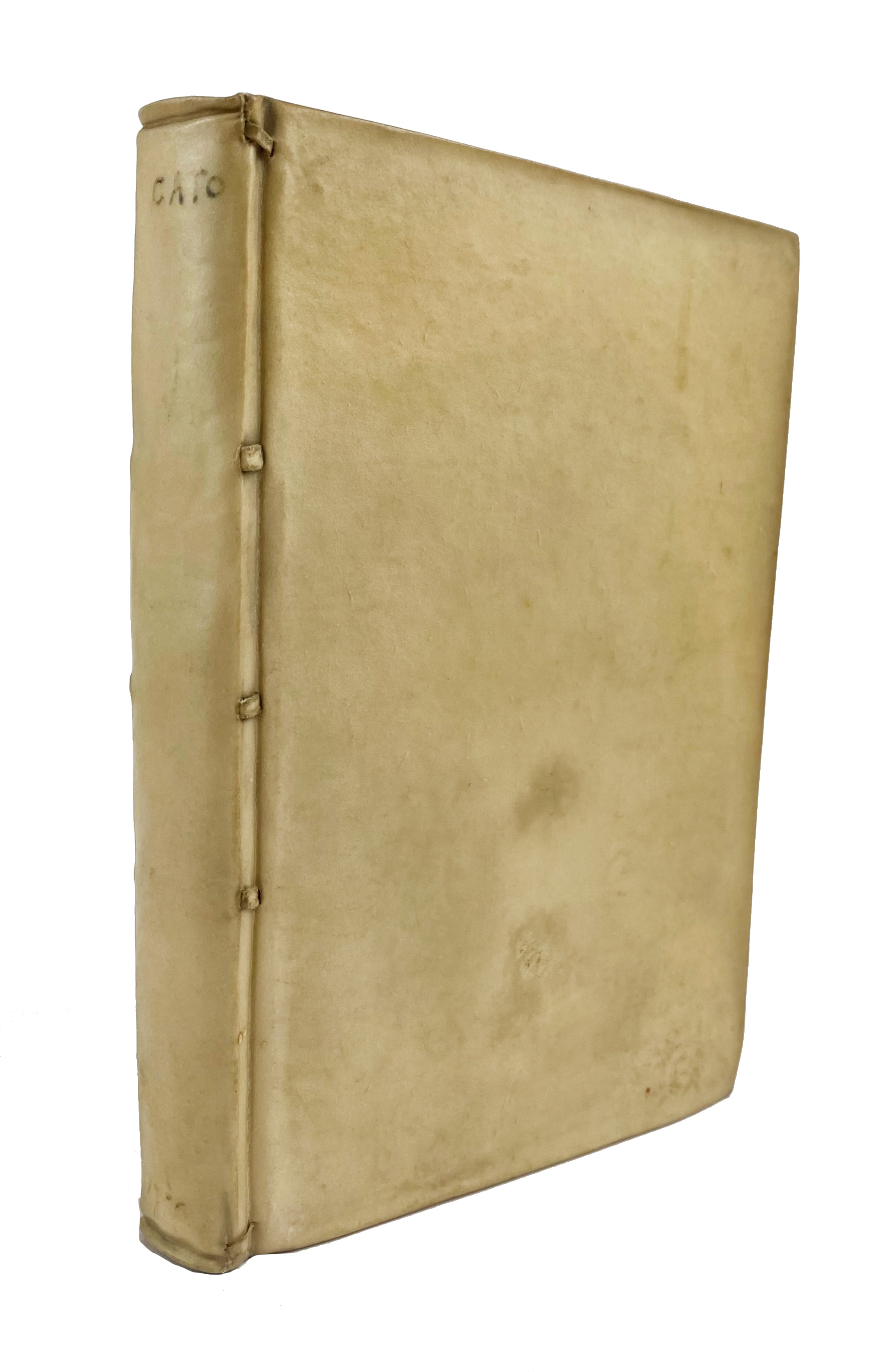 CATO. Disticha de moribus ad filium. Cum Erasmi Roterodami brevi expositione, Eadem Græce per Jos. Scaligerum Jul. Cæs. F. The Hague, Ex Off. A. Troyel, 1700. 160, (2), 161-198 pp. Cont. vellum. (Inner margin wormholed at the end).