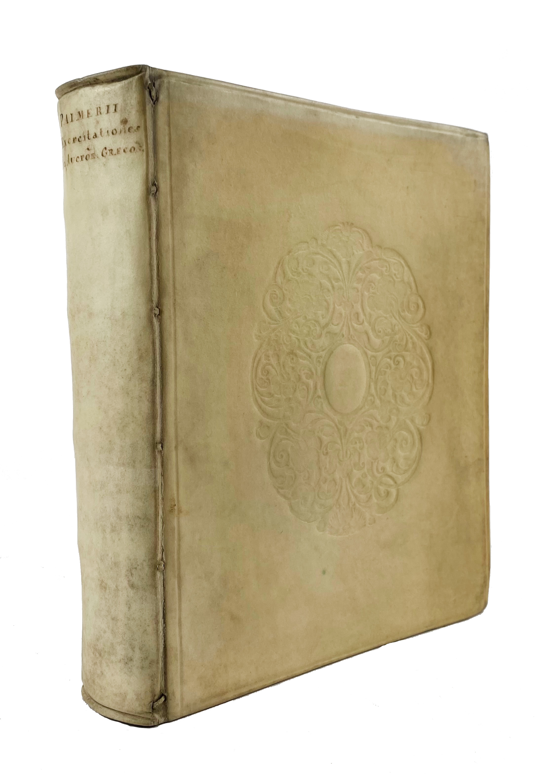 PALMERIUS, J. Exercitationes in optimos fere auctores Græcos. Leyden, D., A. & A. Gaasbeek, 1668. (16), 819, (31) pp. W. engr. ti. 4°. Cont. blind tooled vellum. (Sl. browned/foxed).