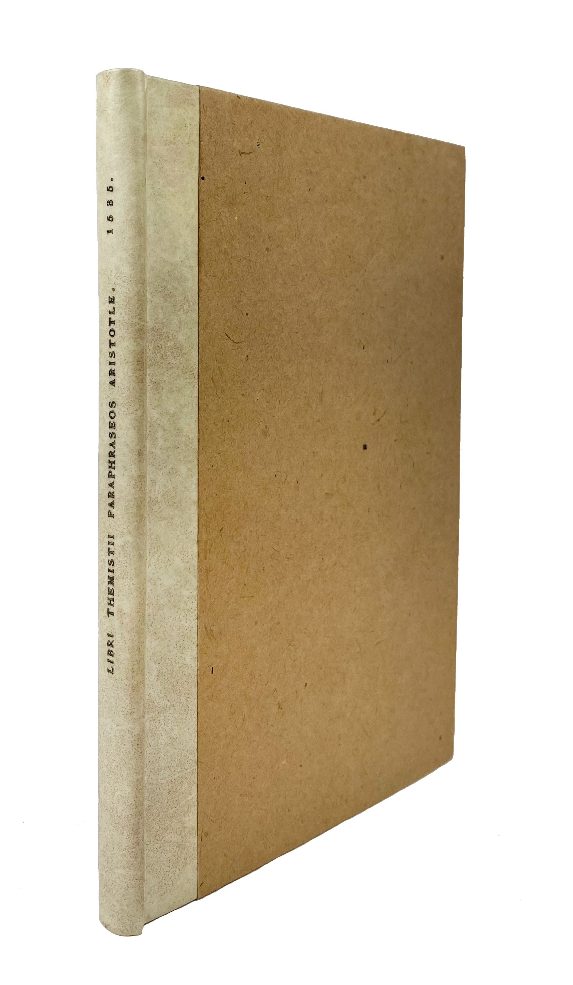 ARISTOTELES -- THEMISTIUS. Paraphraseos in parva naturalia Aristo[telis]. Interprete Hermolao Barbaro nunc accur. emend. De memoria & reminiscentia ll. duo: De somno & vigilia I. De insomnis I. De divinatione per somnu[m] I. Par., P. Calvarin, 1535. 45 pp. W. ti. printed within woodcut border, woodcut of Aristotle and Phyllis (?) on v° ti-p. Mod. h. vellum. (New endpapers, last blank lacks, lower part waterstained throughout).