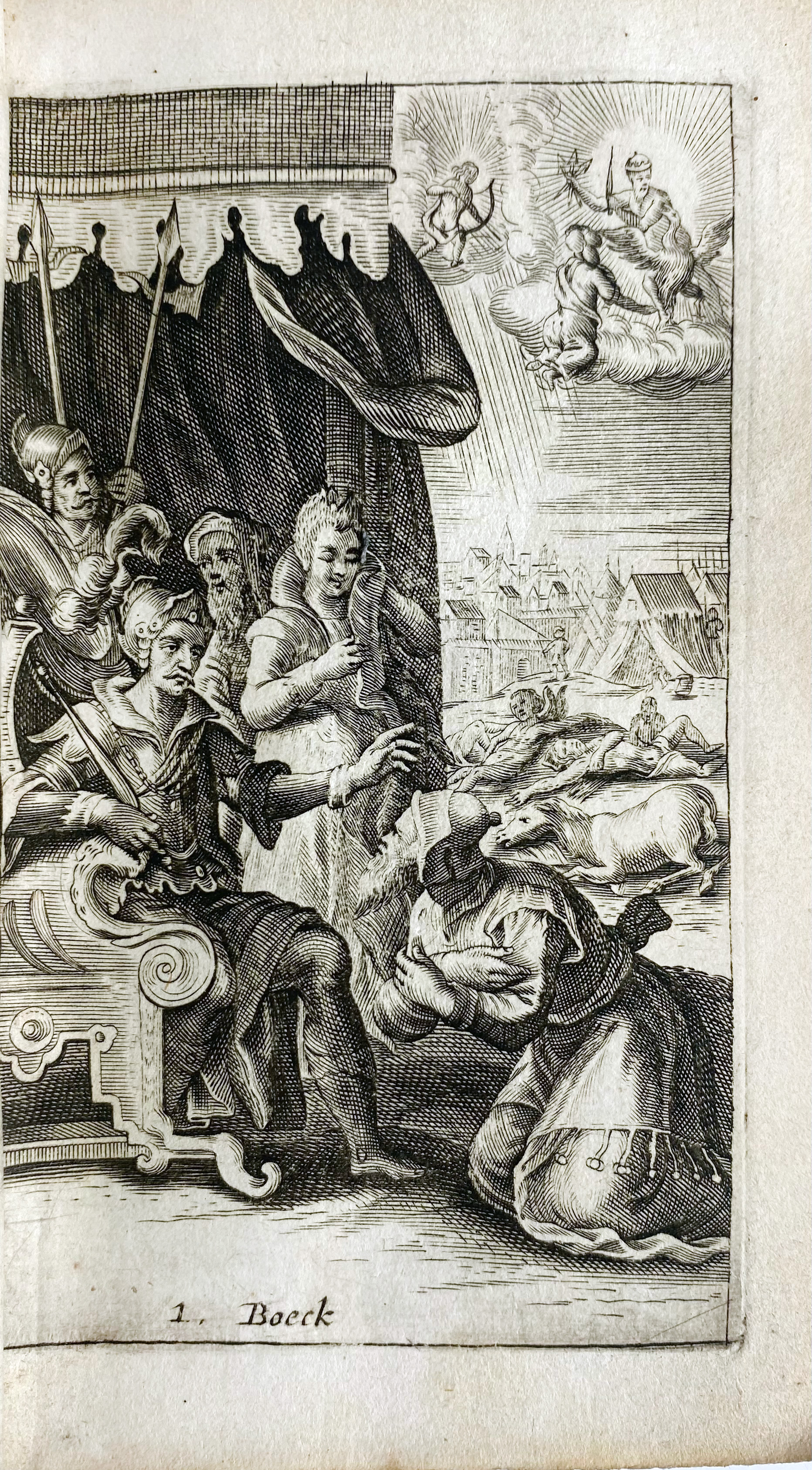 HOMERUS. De Iliaden. Nieuwelijks d. J.H. Glazemaker vert. Amst., Wed. N. Fransz./J. Rieuwersz., 1654-58. 2 in 1 vol. (24), 454; 480 pp. W. engr. ti. & 24 full-p. engr. 12°. Cont. vellum w. overl. sides. (Loose in binding, upper hinge broken, vellum partly torn, upper overl. side dam., free endpapers gone, but interior condition good).