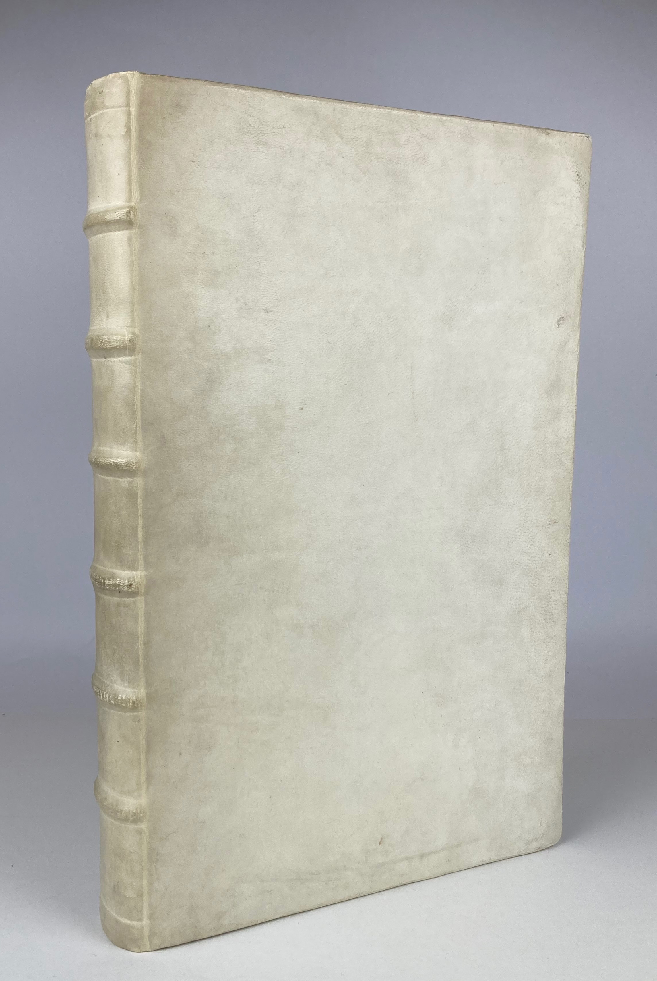 TACITUS. Opera quae exstant. A J. Lipsio postremum rec., eiusque auctis emendatisque comment. illustrata: item C. Velleius Paterculus cum eiusdem J. Lipsi auctor. notis. - J. LIPSIUS. Dispunctio notarum Mirandulani codices ad C. Tacitum. Ed. ultima. Antverp., Ex off. Plantiniana Balth. Moreti, 1667-68. 3 parts in 1 vol. (16), 547; (32), 36, 84, (14) pp. W. large printer's devices on the ti. & at the end of part 1 & 3 & several magnificent woodcut initials & (large) vignettes in places. Fol. Antique style vellum. (Extremities & upper inner corner ti. first part a bit dam., lower outer corner first part waterstained in places, otherwise a tasteful, carefully bound, sound copy).