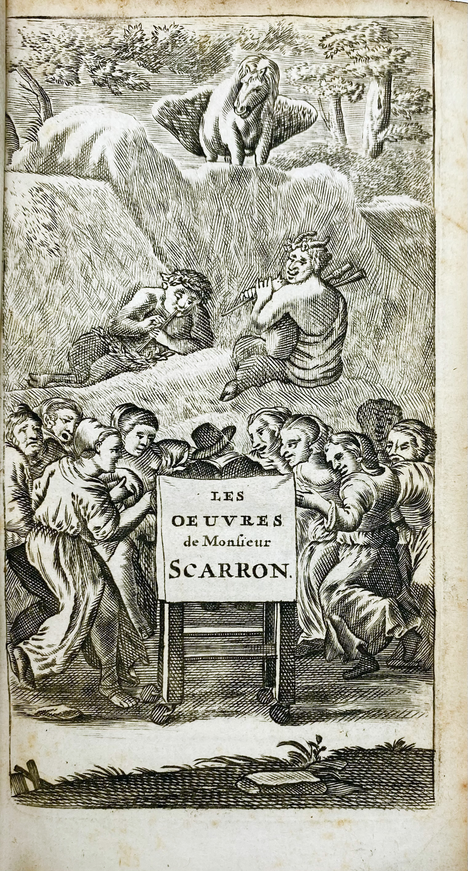 SCARRON, P. Les oeuvres. (Tom. 1-8 & 12). Rev., corr., & augm. Amst., P. Mortier, (c. 1700-06). 9 parts in 4 vols. (26), 271, (5); 288; 286, (2); 263; 384; 318; 360; 307, (5); (2), 315-622, (2) pp. W. 8 engr. fronts. & 14 engr. plates. 12°. Cont. cf. w. raised bands & richly dec. gilt backs. (2 spine ends sl. chipped, sl. age-toned).