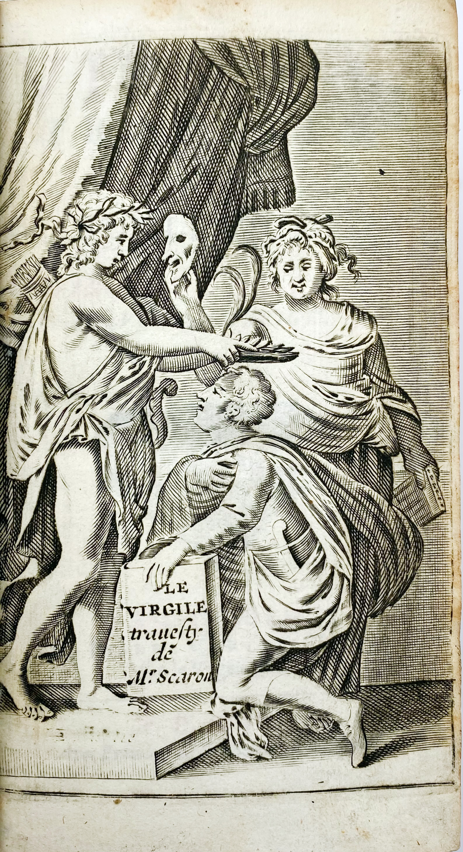 Vol. 1-4 contain several epistles, odes, small works. Vol. 5-6: Le Virgile travesty en vers burlesque. Added: La suite, ou tome III du Virgile travesty (= vol. 12, dated 1706). Vol. 7-8: Le Romant comique.€ 150