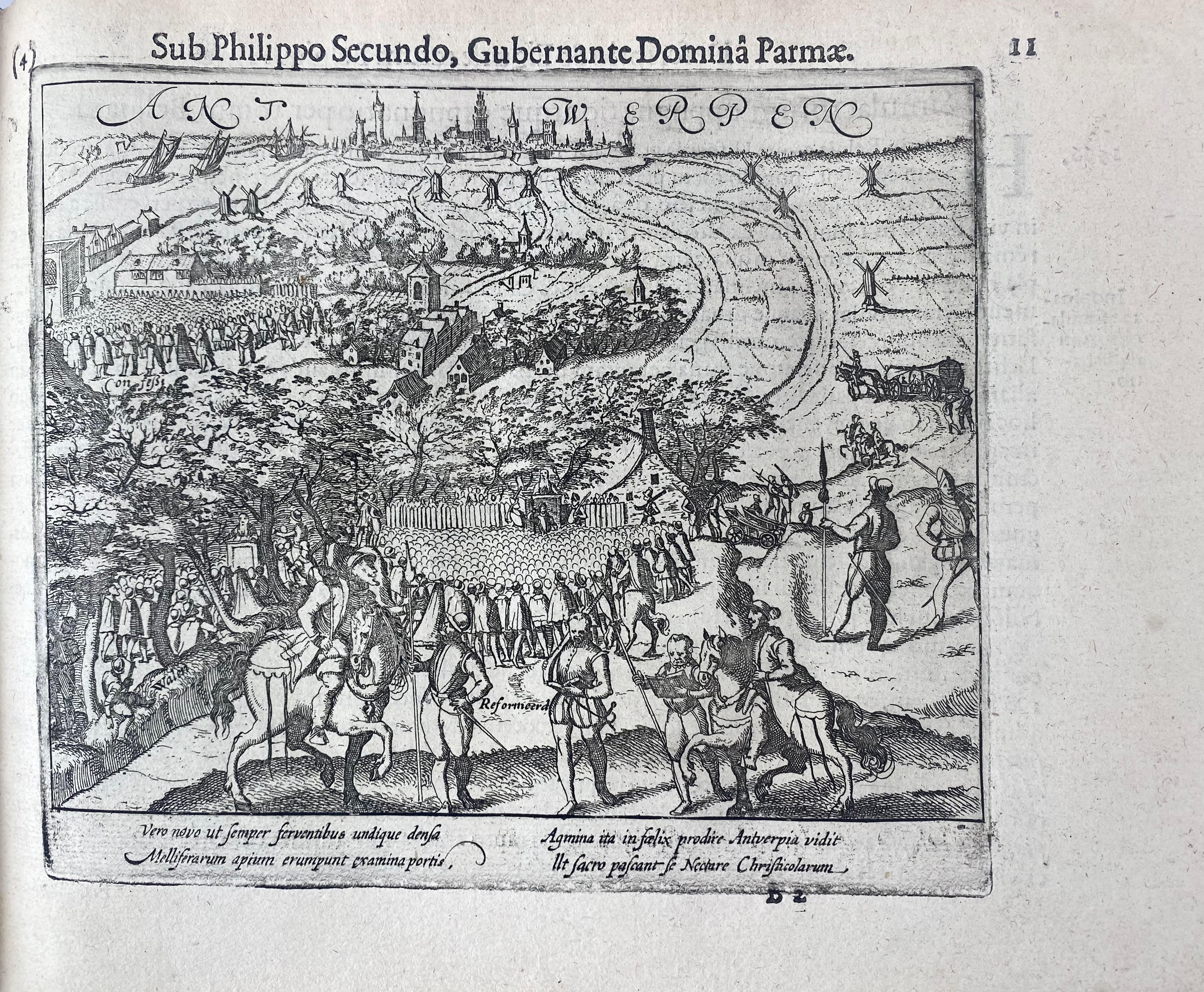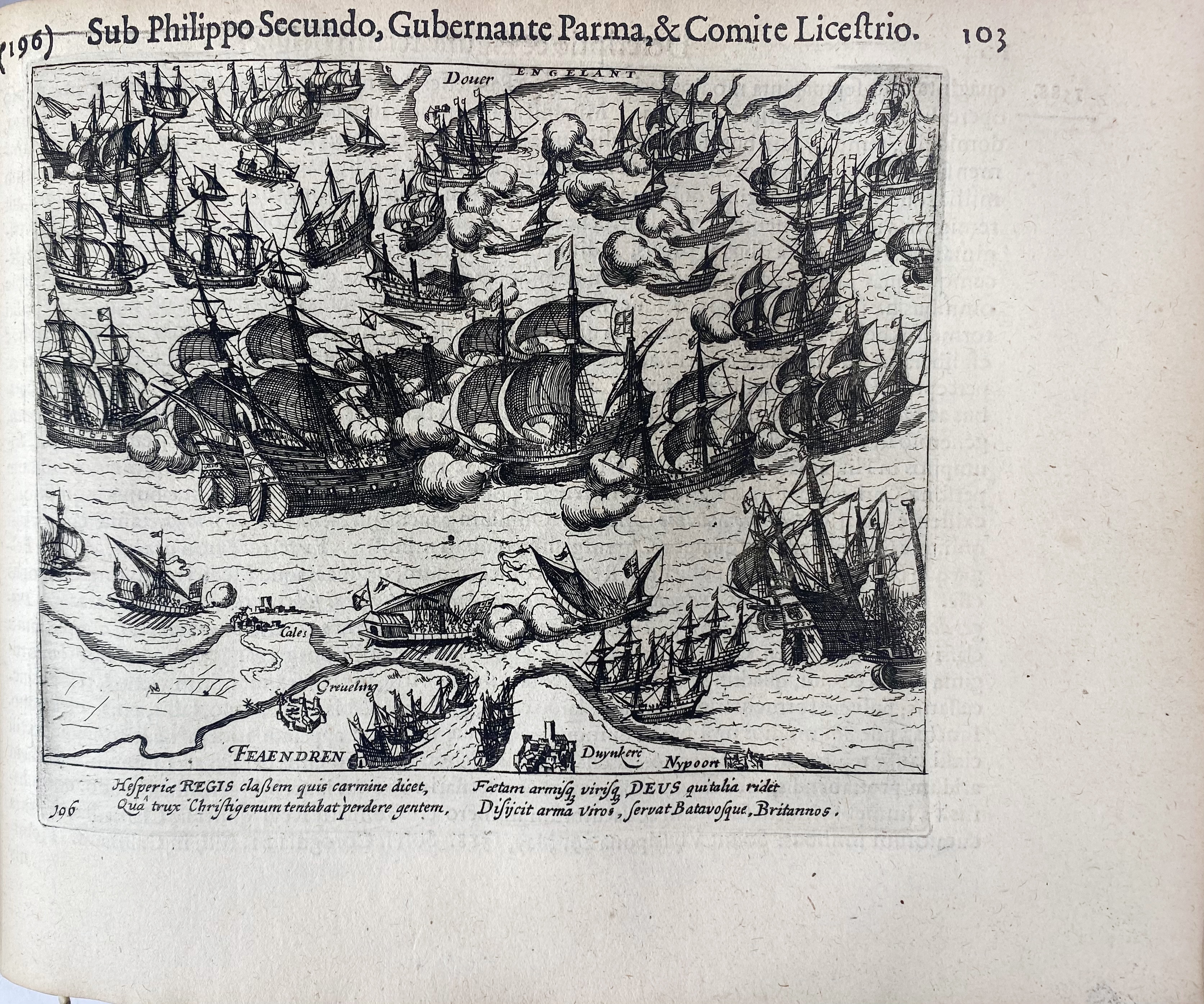 First Latin translation of this important work on the first five decades of the 80 Years War written from a Contra-Remonstrant point of view by Willem Baudartius (1565-1640). The Dutch edition (Afbeeldinghe, ende beschrijvinghe van alle de veld-slagen) appeared in 1615. The lively engravings derive partly from Hogenberg's series of prints for Eytzinger's Leo Belgicus, but were adapted in size. The plates are numb. 1-285 (incl. engr. map of the 17 Provinces, num. portraits, sieges, plans and 1 double-p. engr.). - Brunet I, 703; Bibliotheca Belgica B, p. 205-206; Cf. Muller, Ned. Historieplaten, 413 (p. 41).€ 2400