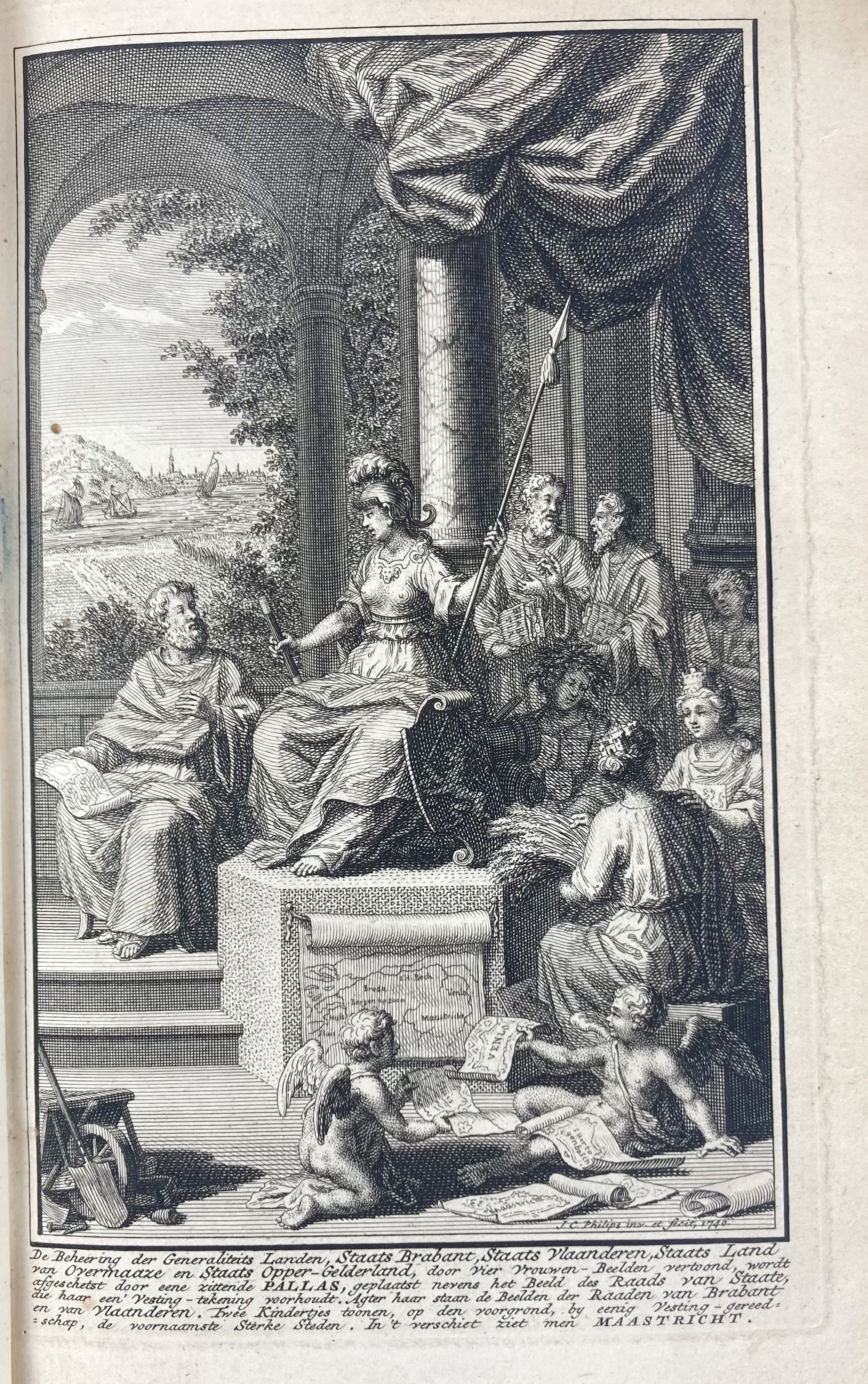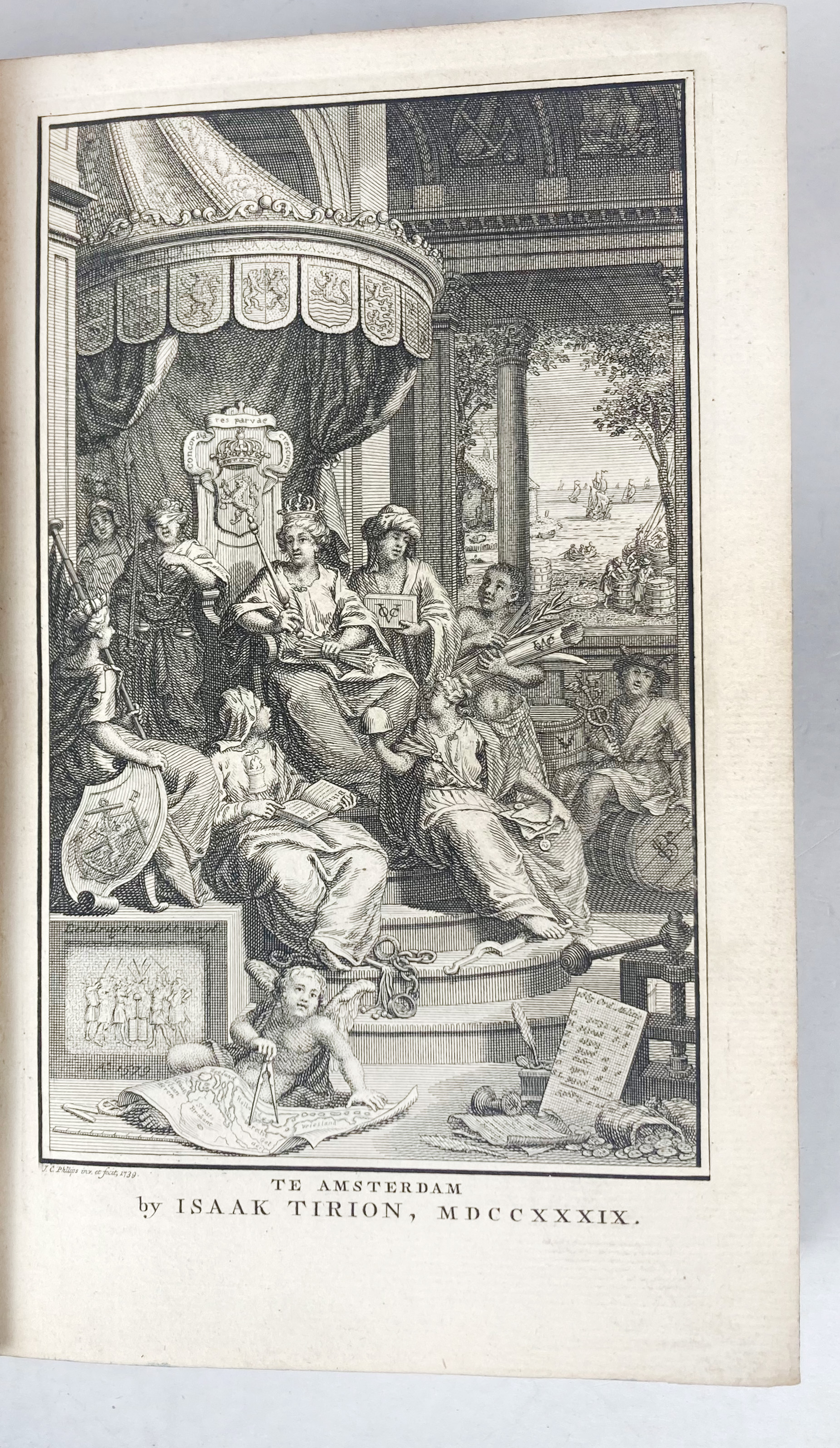 HEDENDAAGSCHE HISTORIE, of tegenwoordige staat der Vereenigde Nederlanden. 1e deel. Vervattende eene Algemeene beschryving des Lands (…). Amst., I. Tirion, 1739. (26), 638, (40). W. engr. front., 1 fold. map, 2 fold. plates & 5 portrs. - HEDENDAAGSCHE HISTORIE, of tegenwoordige staat der Vereenigde Nederlanden. 2e deel. Vervattende eene Beschryving der Generaliteitslanden, Staat Brabant, (…). Amst., I. Tirion, 1740. 608, (20). W. 8 fold. plans & maps & 4 fold. plates w. engr. views & monuments. - 2 vols. Uniform cont. cf., spine w. raised bands, gilt dec. & letterpieces, dec. edges, marbled page edges. (Vol. 2 w. occasional annot. in ink in an old hand).