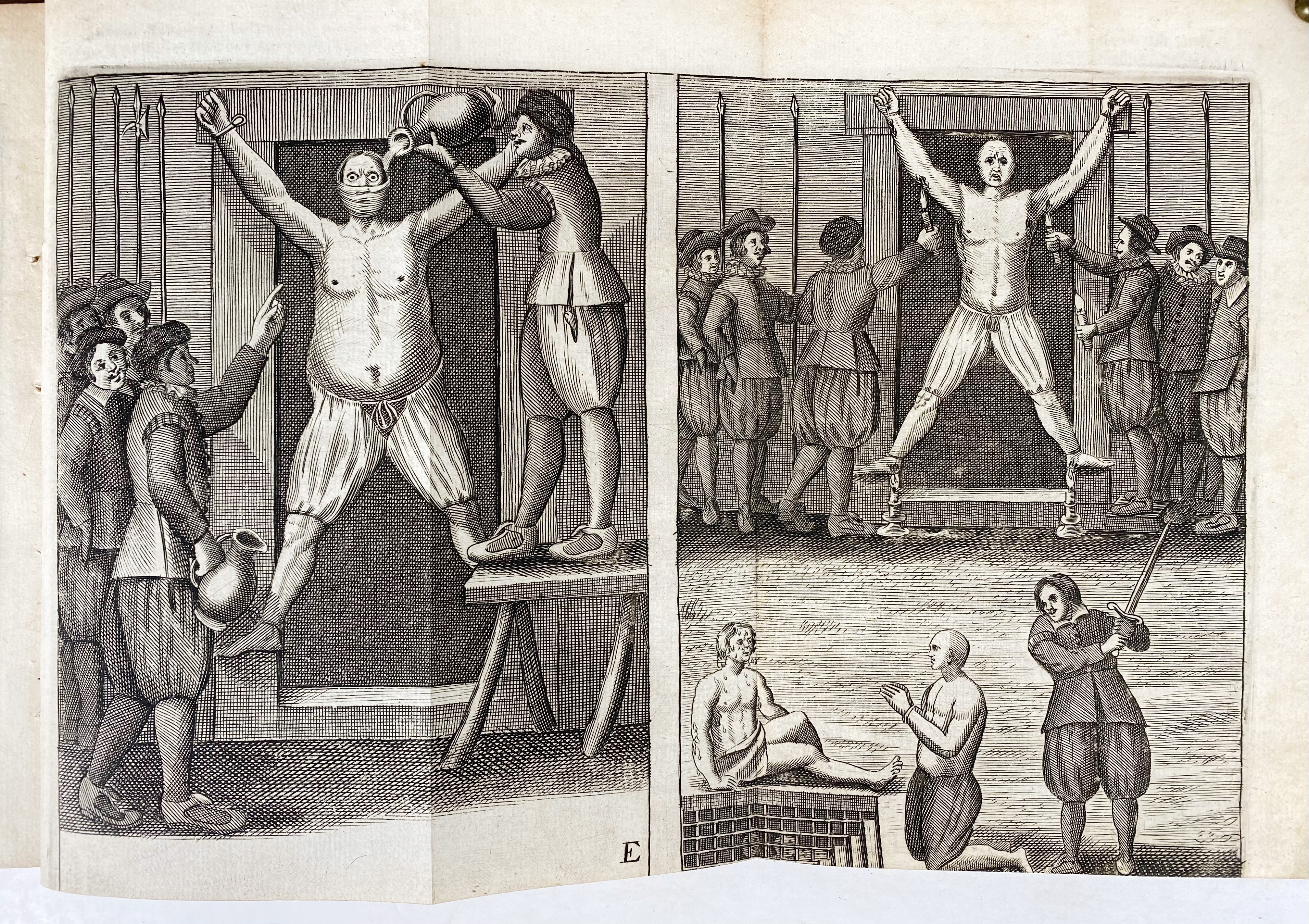 (STUBBE, H.). A Justification of the Present War Against the United Netherlands. - Followed by: Id. A Further Justification of the Present War against the United Netherlands. - Lond., H. Hills & J. Starkey, 1672-73. 2 in 1 vol. (8), 80; (24), 86; 57-136 pp. W. engr. front. & 2 fold. engr. plates to vol. 1 and 5 (2 fold. (E & F on 1 plate) engr. plates to vol. 2. Sm-4°. Cont. cf. (Spine/board-edges rubbed/chafed, front side loose, lower joint split but holding, frontispiece loose, sm. stamp on ti., first ti. soiled, 1 plate rep., 1 plate w. tears, lower margin fold. plates cut too short).