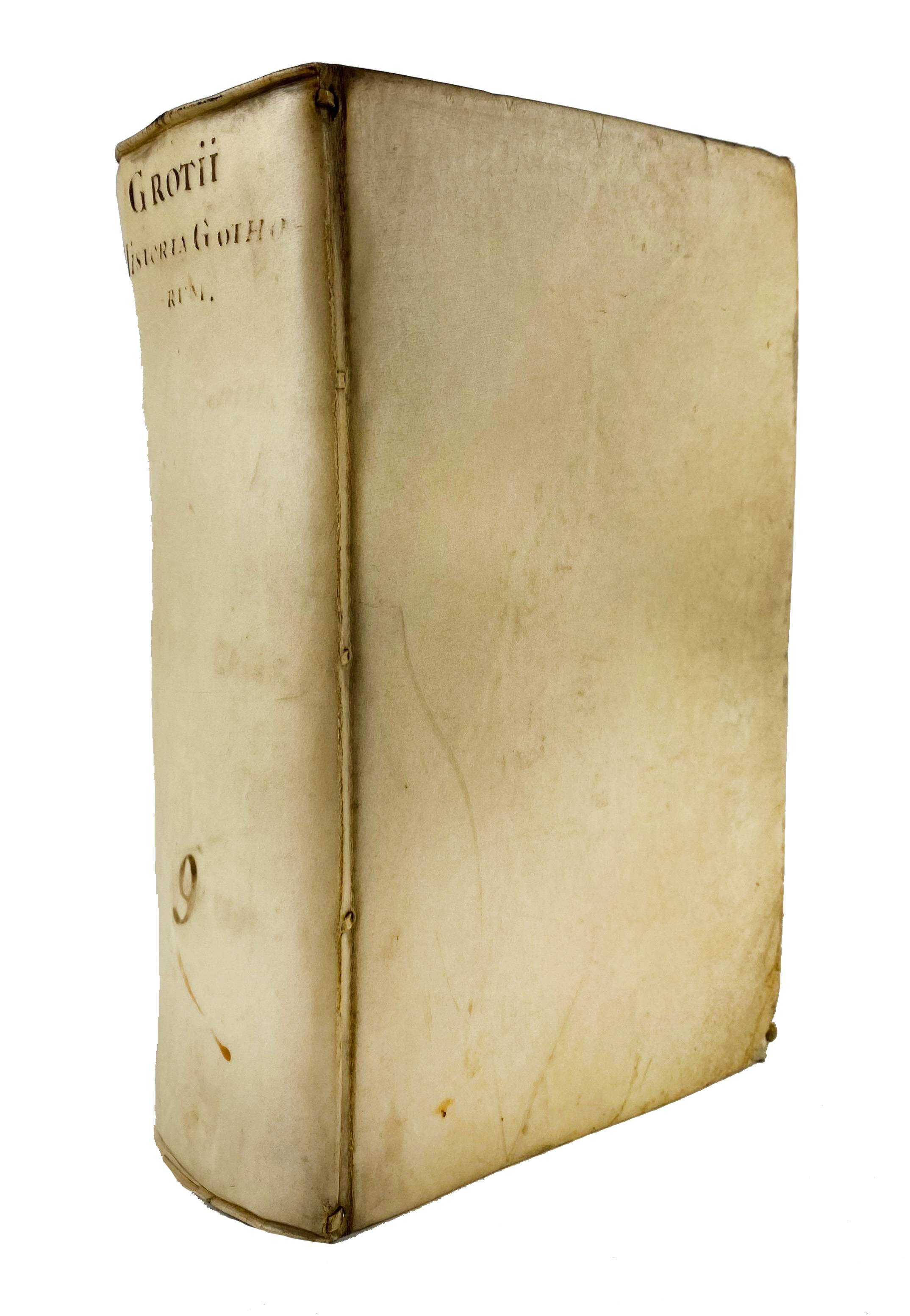 GROTIUS, H. Historia Gotthorum, Vandalorum, & Langobardorum. Præmissa sunt eiusdem prolegomena (…). Acced. nomina appelativa & verba Gotthica, Vandalica, Langobardica, cum explic. Amst., L. Elzevier, 1655. (8), 148, 932, (98) pp. W. fine engr. ti. Cont. vellum w. overl. sides. (Old owner's entry on free endpaper, bookplate of A. Russell Pollock dated 1860, sl. browned).