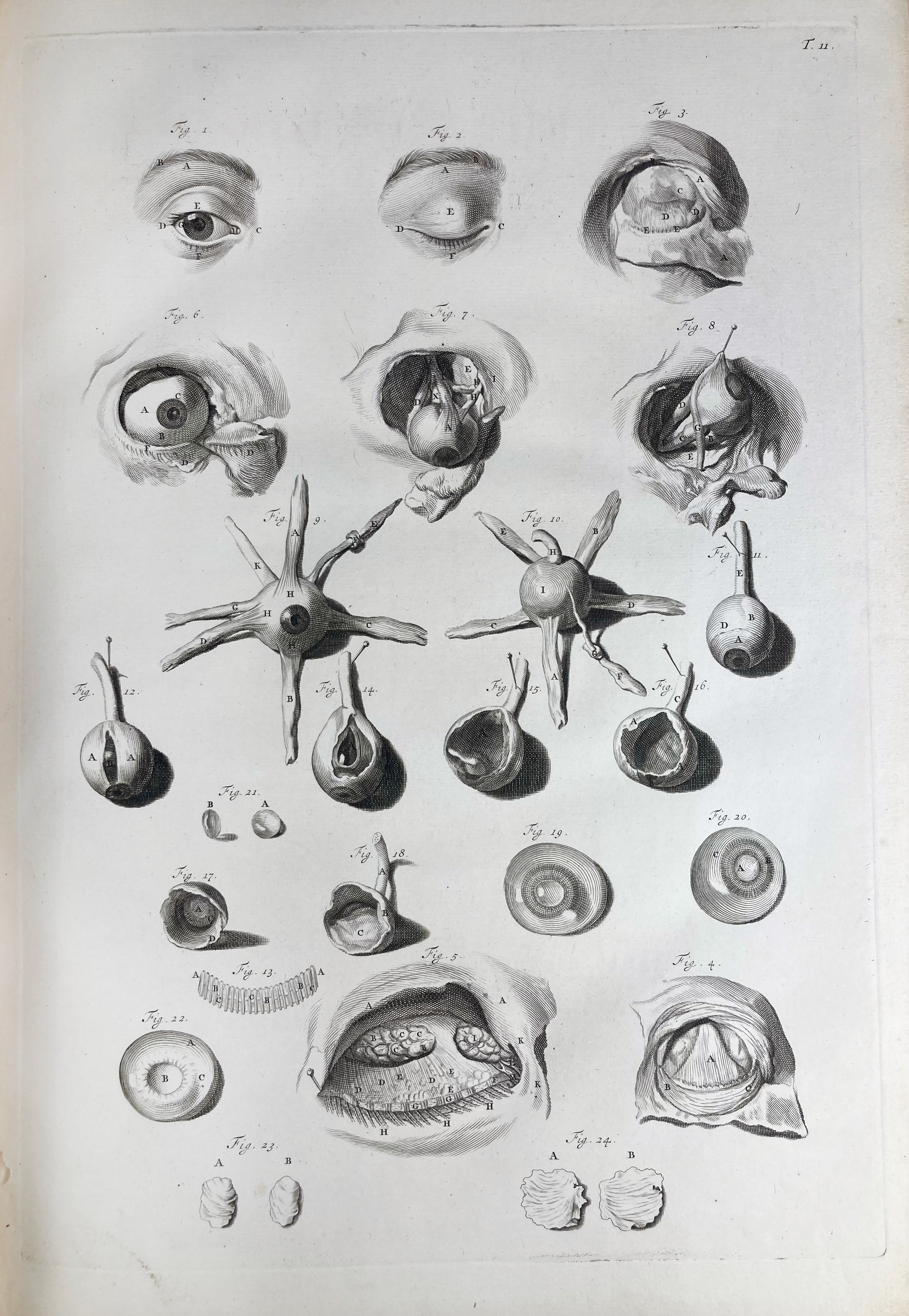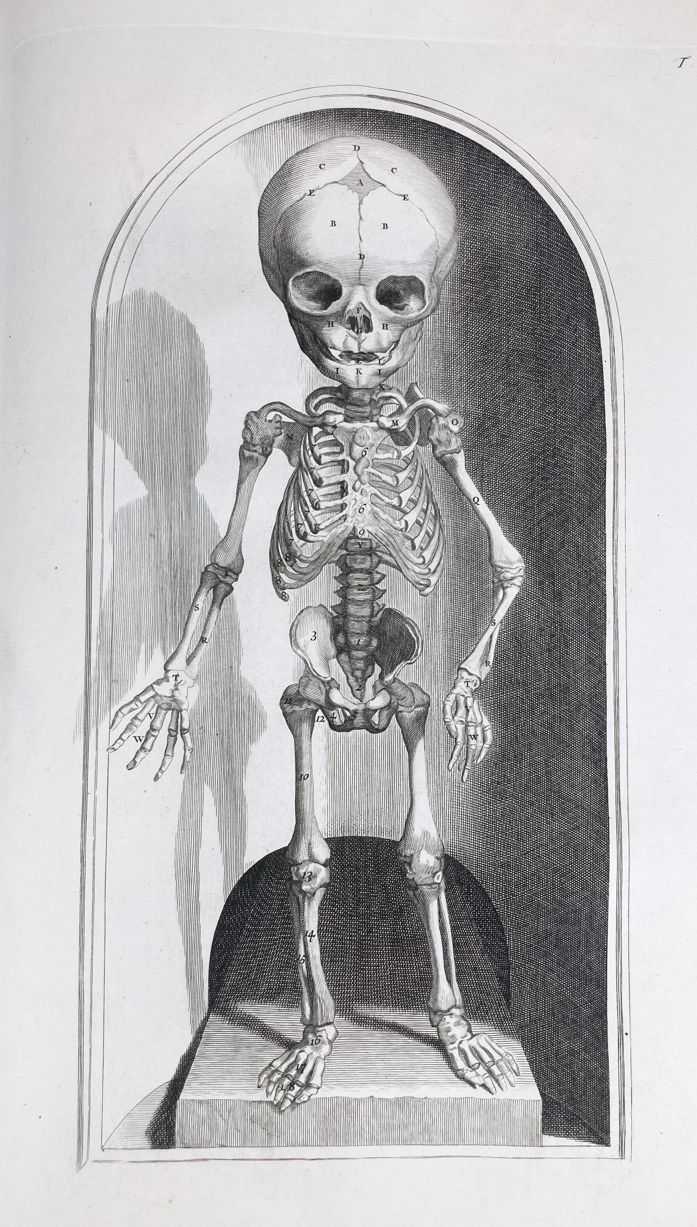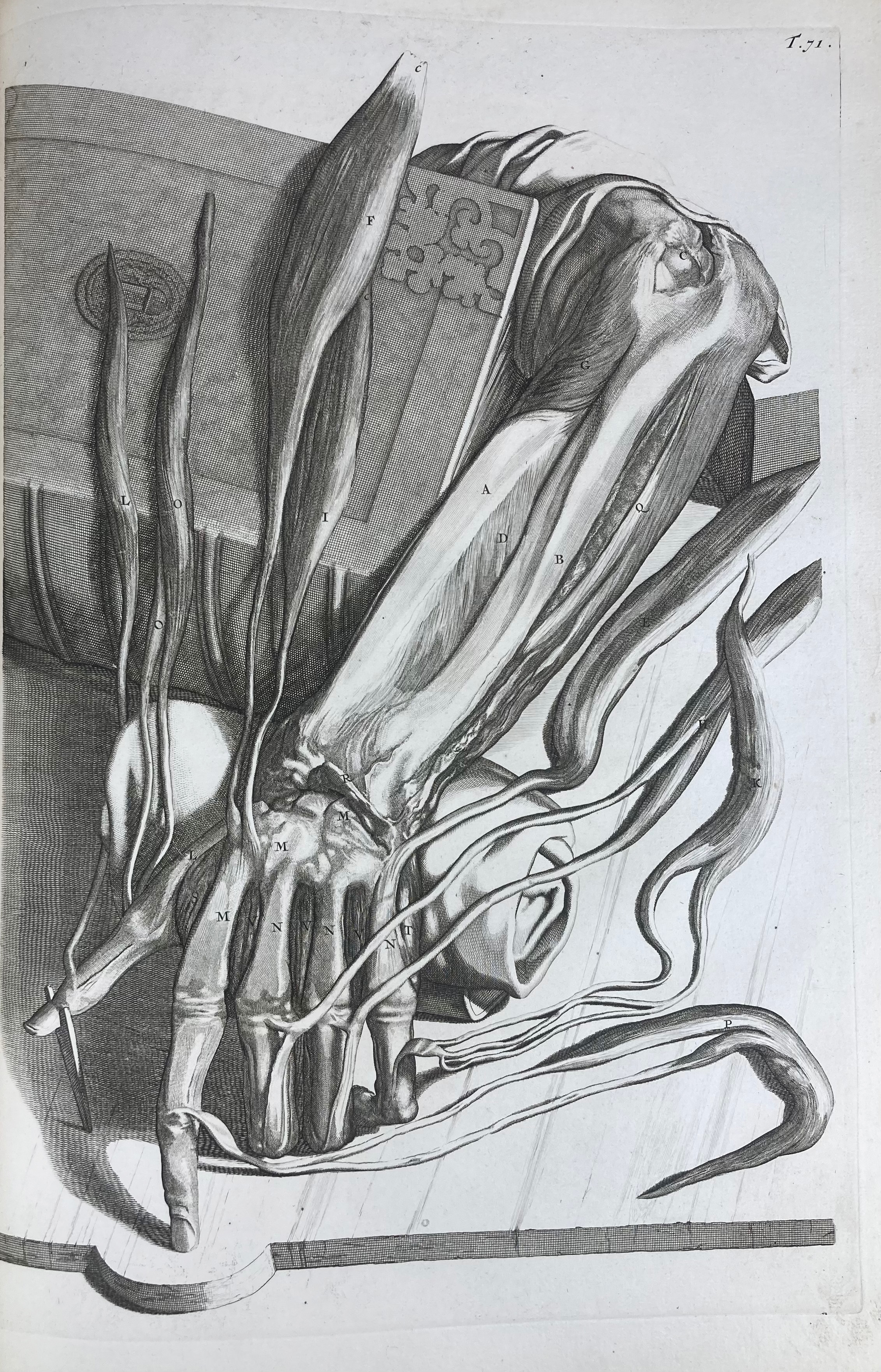 The plates in this atlas have a controversial history as they were originally engraved in the 17th c. for Govard Bidloo (1649-1713), a Dutch physician and anatomist, by G. de Lairesse (1640-1711), but were reused for the forerunner of this atlas by William Cowper (1666-1709). He published these - without Bidloo's consent - along with a new text, under a new title and under his own name in 1698. His own contribution to the illustrated program consisted only of nine additional plates on myology, which he had drawn by Henry Cook (1642–1700) and engraved by Michiel van der Gucht (1660–1725). This action resulted in a bitter plagiarism dispute between Bidloo and Cowper, one of the most famous in medical history. - Complete copy and printed on fine thick handmade paper. The plates crisp and very well printed. NB There was never a quire B, but quire A consists of 2 lvs. (A and A2). Second edition in Latin. Fabric of the body, p. 111: "(…) many of the Bidloo plates must take their place amongst the canon of great anatomical illustrations, (…)"; Choulant 253; G-M 385.1.