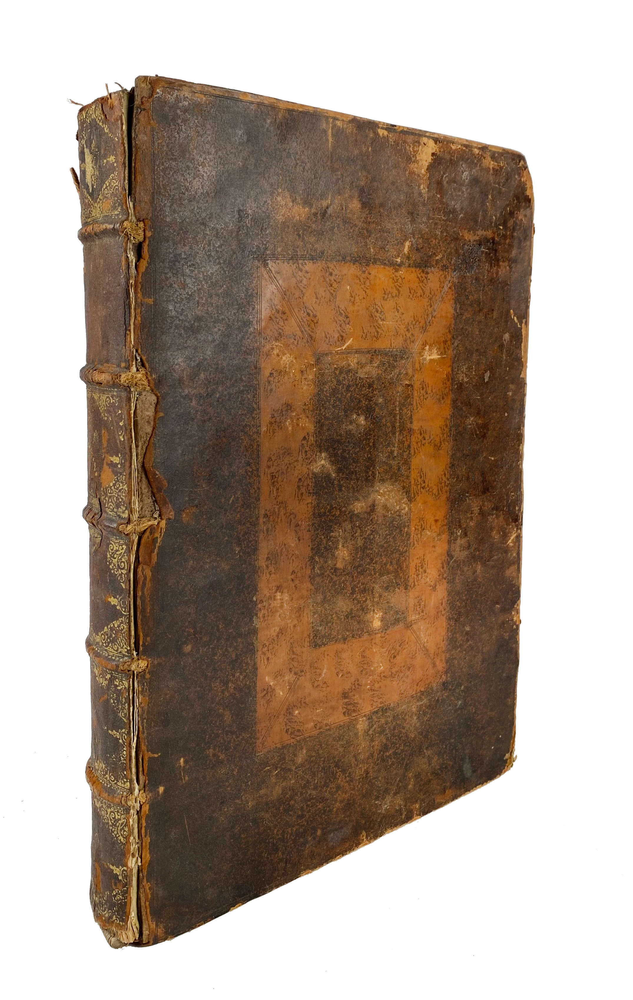RICCIOLI, (G.B.). Geographiae et hydrographiae reformatae nuper recognita et auctae libri duodecim. Venice, G. La Nou, 1672. (16), 691 pp. W. num. woodcut text-diagrams. Fol. Cont. panelled cf. w. raised bands & dec. gilt back. (Joints split, extremities dam., label gone, bind. rubbed/chafed, tear closed on v° ti-p., ti-p. a bit (dust-)soiled, interior good only sl. age-toned).