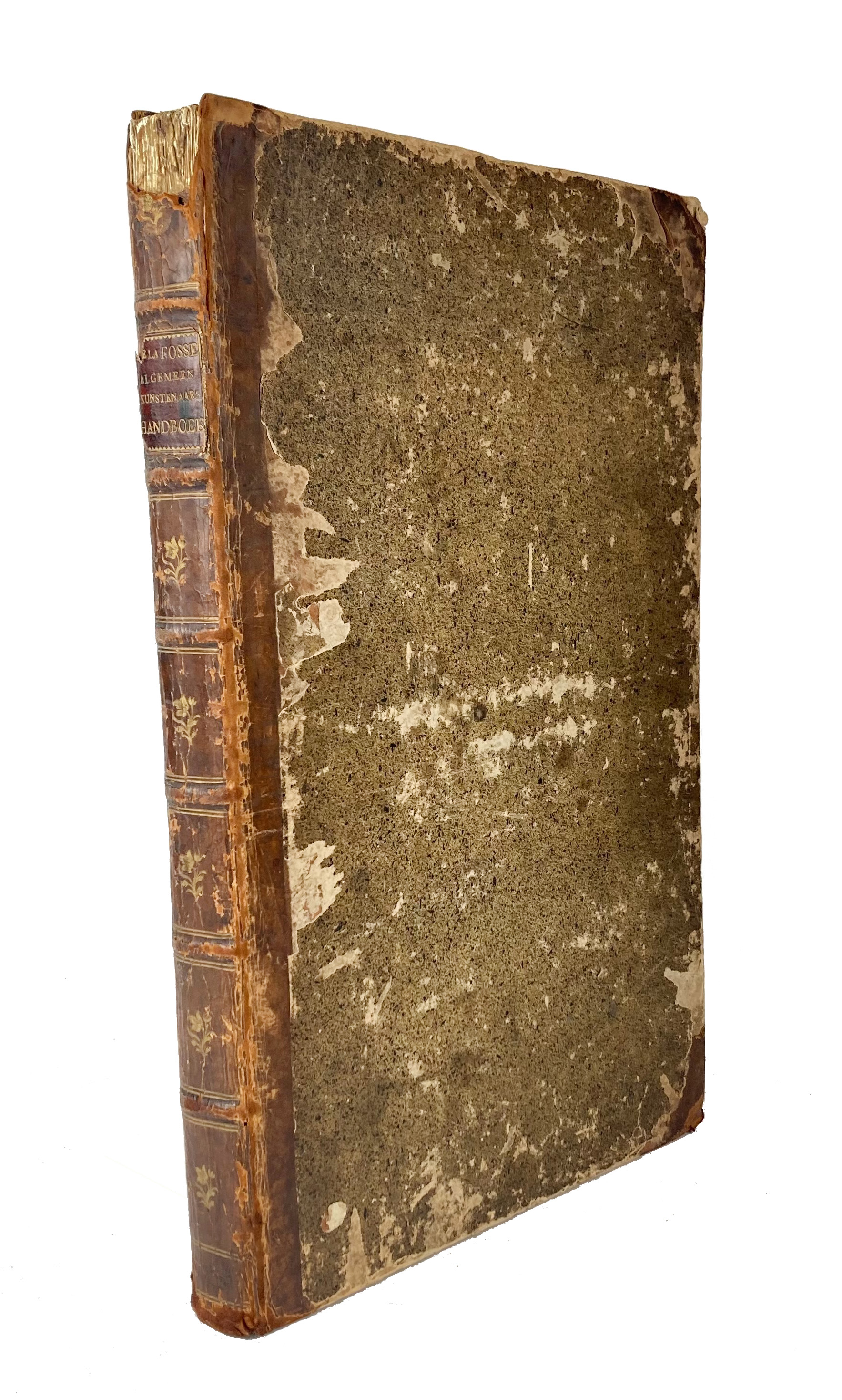 ARTISTS' MANUALS -- LAFOSSE, J.-C. de. Algemeen kunstenaars handboek; of schatkamer voor alle beoefenaaren v. kunsten & handwerken. Amst., J.W. Smit (& C.S. Roos), (N.d., c. 1790). 2 in 1 vol. (4), 40 pp. W. 2 engr. ti. and tog. 103 full-p. engr. by Iz. de Wit Jansz. Fol. Cont. hcf. extra, spine w. raised bands, gilt dec. & (partly detached) letterpiece. (Wear to extremities, spine & sides chafed, joints weak, upper endpaper loose, some yellowing & smudging).
