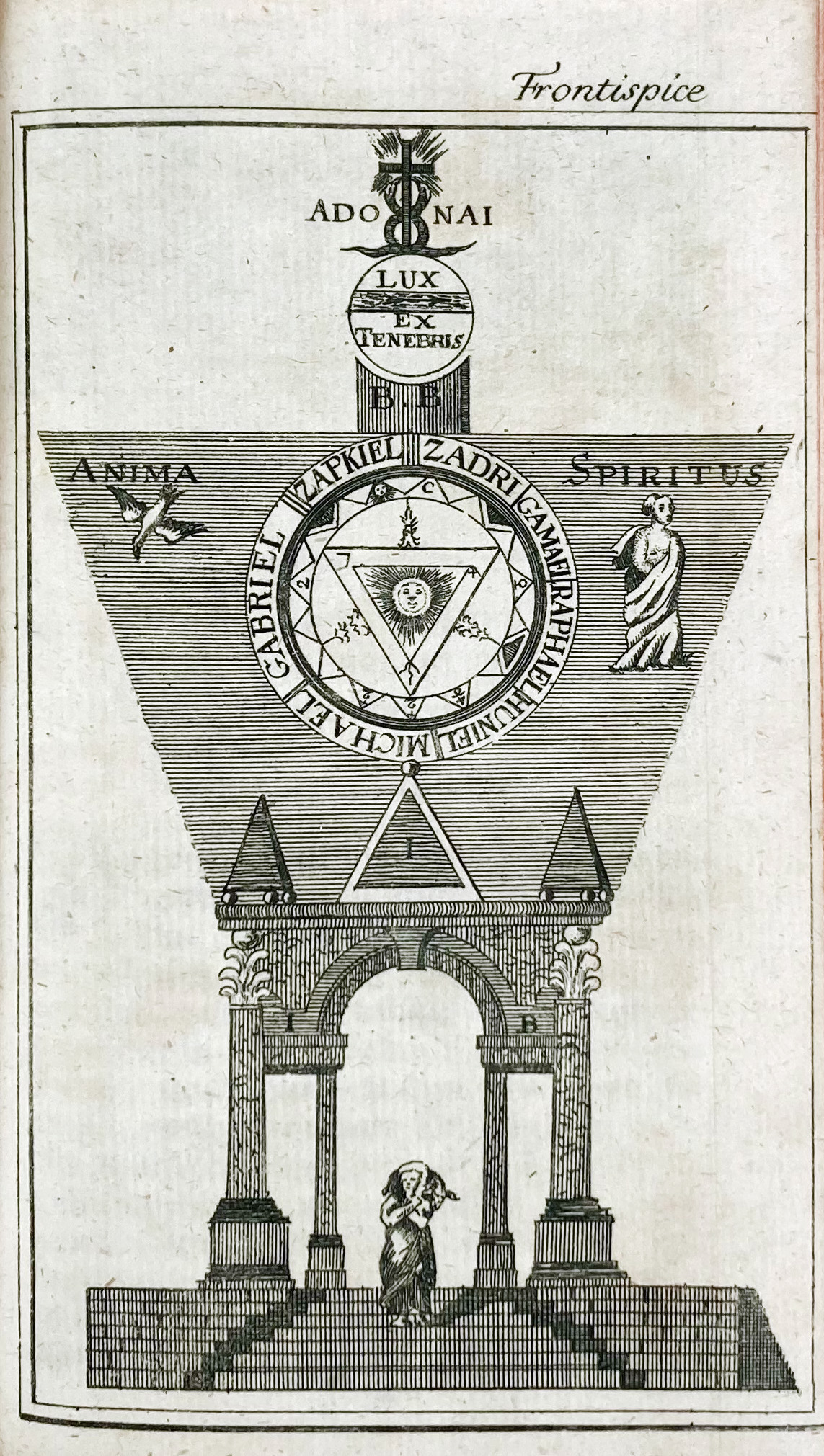 FREEMASONRY -- (KÖPPEN, C.F., transl./adapt). Allerneuste Entdeckung der verborgenen Geheimnisse der hohen Stuffen der Freimäuererei, (…), ingleigen einem Schreiben eines Profanen. Jerusalem (= Berl., Haude & Spener), 1768. xx, 156 pp. W. 1 front., 1 fold. plate & 3 engr. in the text. - Id. Zweytes u. drittes Schreiben eines Profanen über die glückliche Entdeckung der Freimäurerey (…). Jerusalem, (= Berl., Haude & Spener), 1768. 101 pp. W. several musical scores. - Id. Viertes bis Achtes Schreiben eines Profanen über die glückliche Entdeckung der Freimäurerey als der Dritte u. Letste Theil (…). Frankf. & Leipz. (= Berl., Haude & Spener), 1770. xxiv, 80 pp. W. 2 engr. ill. in the text. - And 1 o. - 4 parts in 1 vol. Modern red mor. extra w. marbled sides & marbled endpapers, a.e.g.