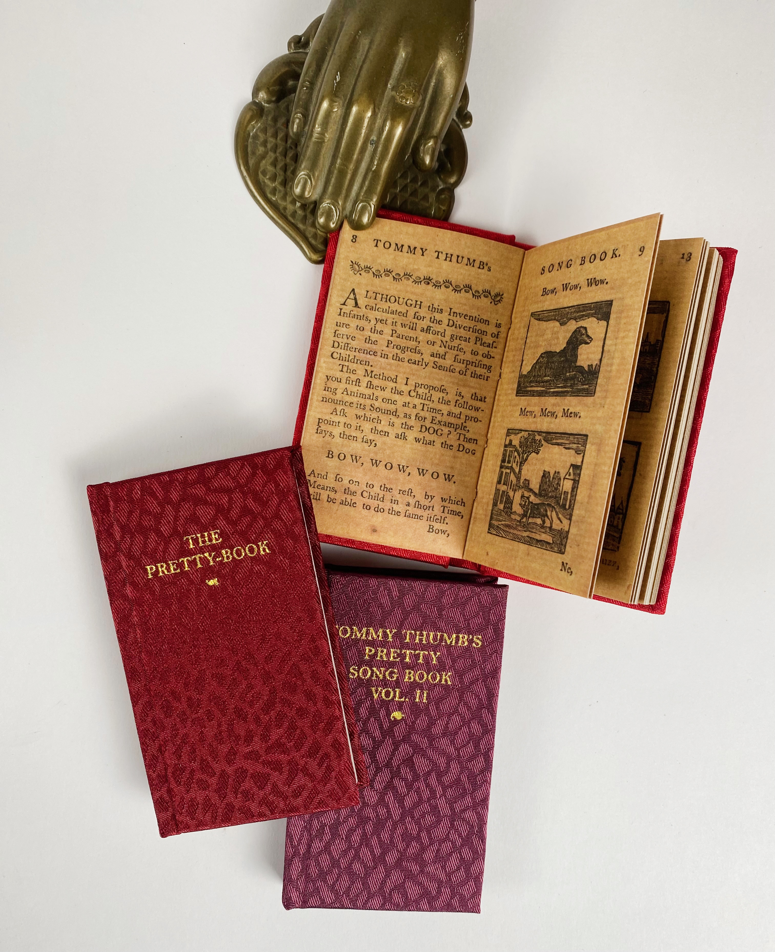 FACSIMILE EDITIONS -- CORSTEN -- TOMMY THUMB'S Pretty Song-Book. The first collection of English nursery rhymes. A facsimile ed. w. a history and annot. by A. Immel & B. Anderson. LA, Cotsen Occasional Press, 2013. 3 miniature facs. booklets & 1 text-vol. Ocl. (1) & or. silk binds. Tog. in ocl. clamshell box.