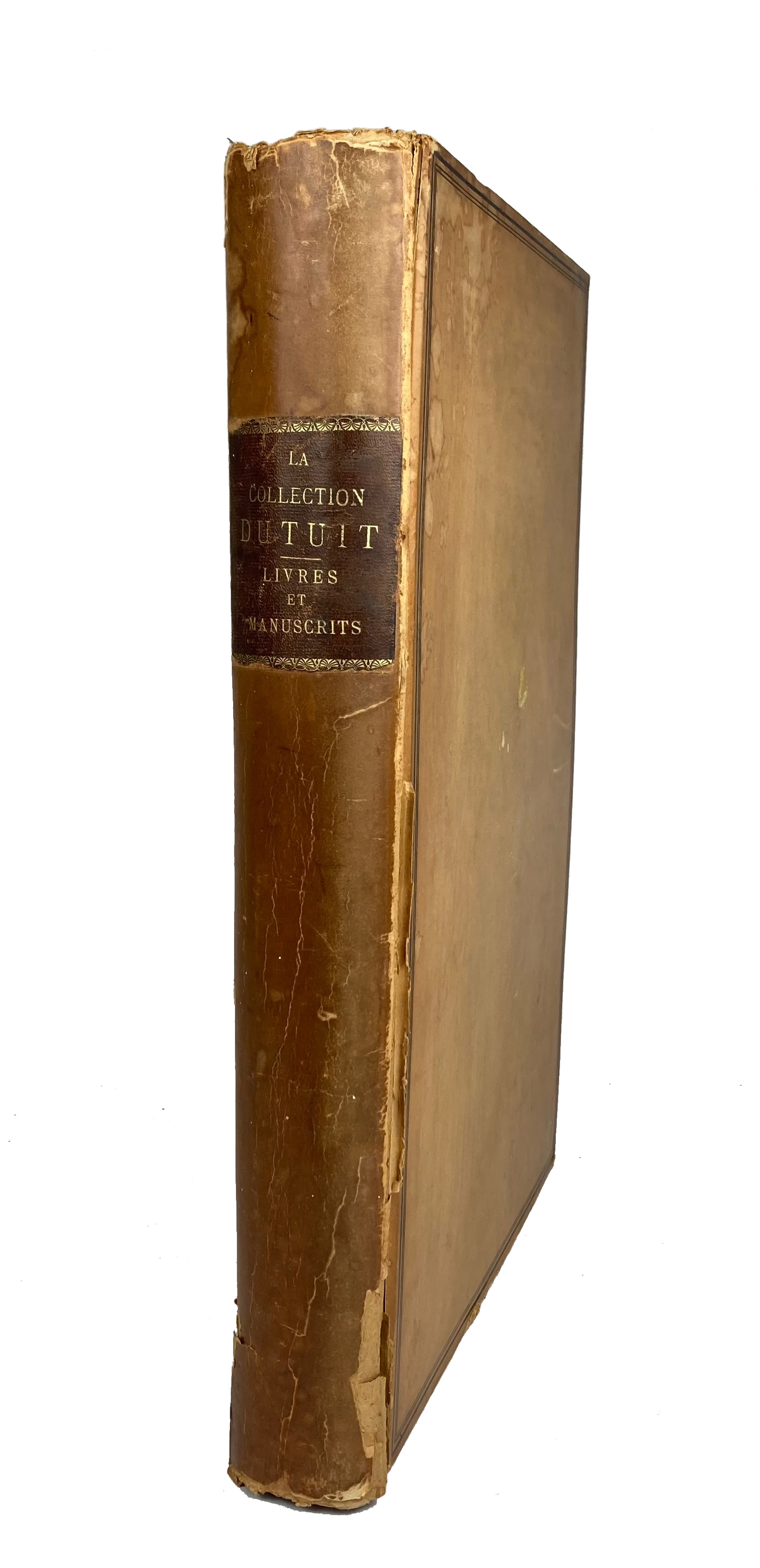 RAHIR, É. La Collection Dutuit. Paris, Libr. Damascène Morgand, 1899. 328 pp., all ruled in red. W. 70 text illustr., 9 heliogravures, 4 chromolithographic plates & 30 cold. plates. Fol. Or. printer's cover w. leather letterpiece. (Wear to extremities, front side w. some waterstains, inside yellowed in places, many edges dusty).