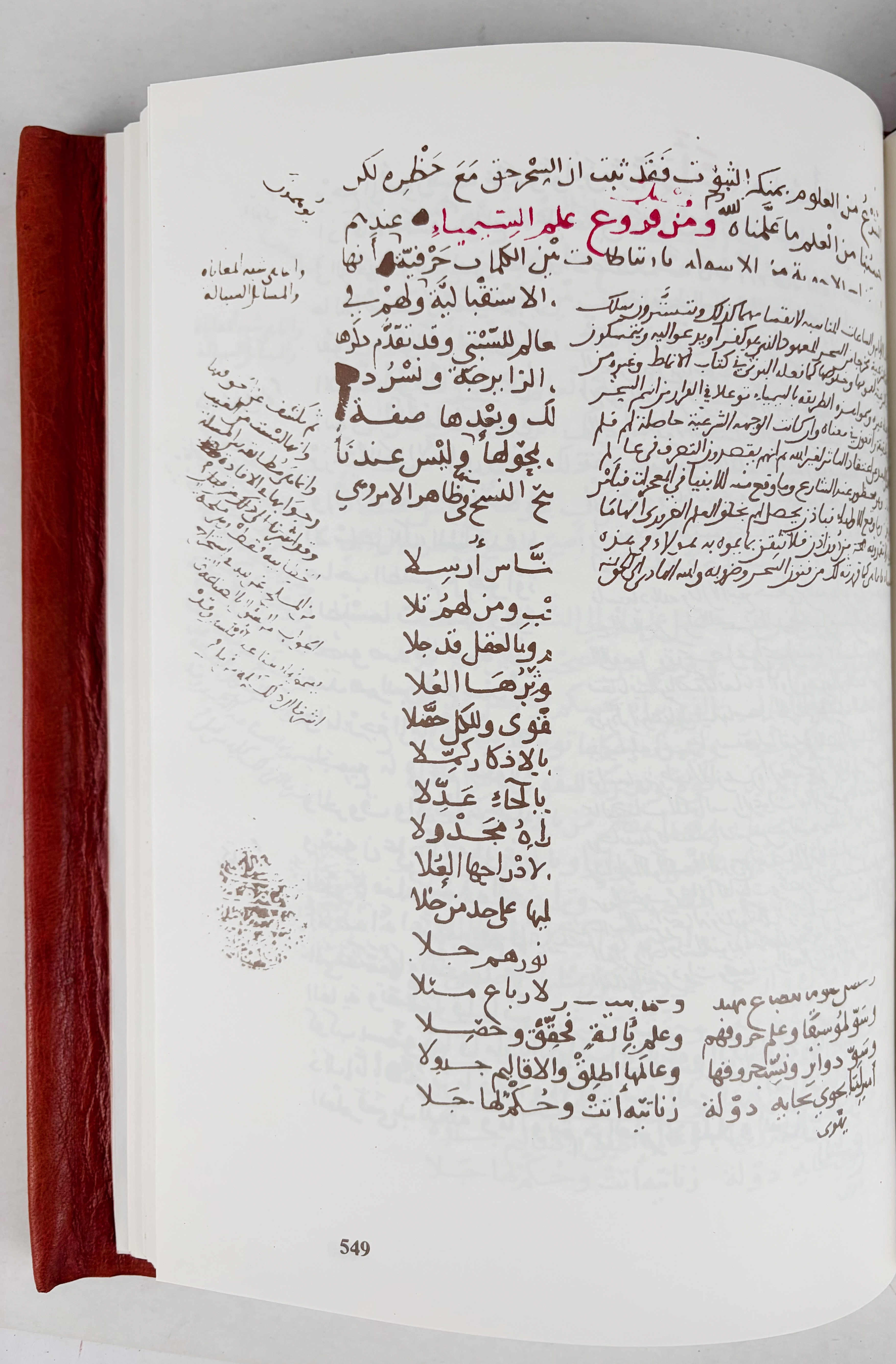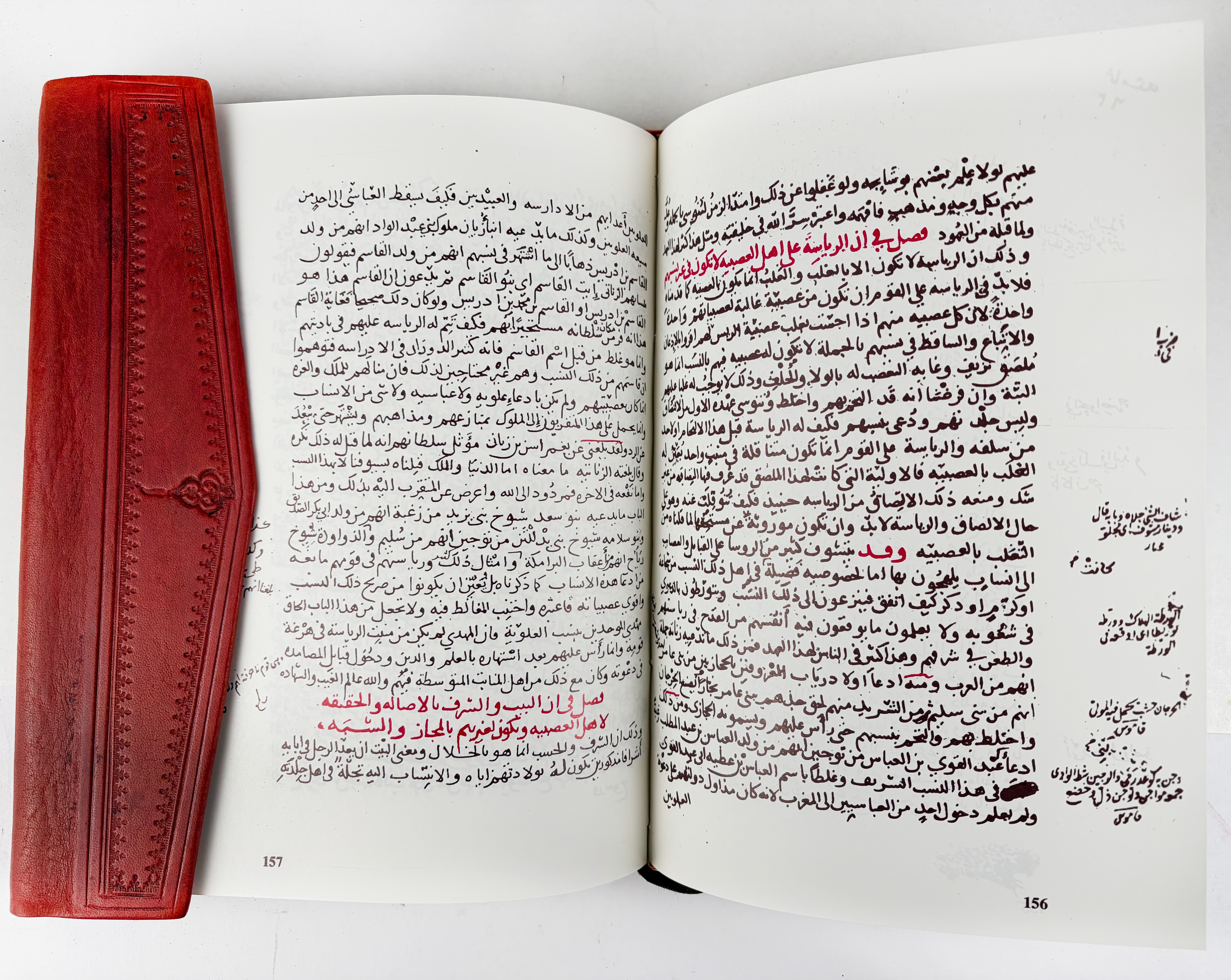 IBN KHALDÛN. Al-Muqaddimah. Facs. ed. of MS Atif Effendi, Istanbul, No. 1936, dated 804/1402 and corr. by Ibn Khaldûn in his own handwriting. Algiers, al-Mu'assasa al-Wataniyya li-'-Funûn al-Matba'iyya, 1991. 2 vols. Tog. 667 facs. pp. & w. an introd. by 'Abd al-Hâdî ben Mansûr (25 separately numb. pp.). Lge-8°. Beautifully bound in cont. Arabic-style blindtooled full cf. w. flap. (Spines sl. faded).