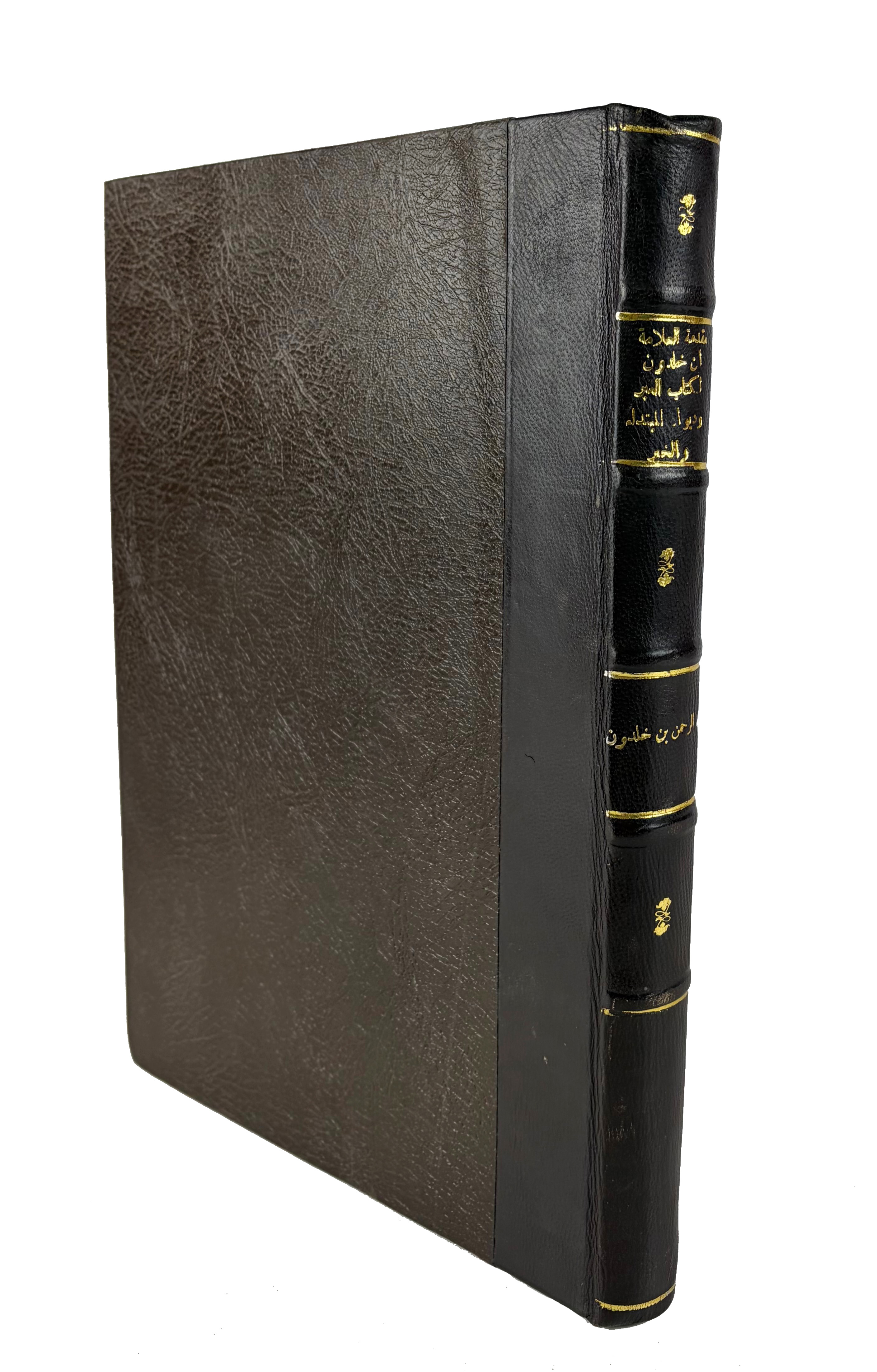 IBN KHALDÛN. Muqaddimat al'allâma Ibn Khaldûn likitâb al-'ibar. Cairo, al-Matba'ah al-Khayrîyah, 1322/1904. 351, (7) pp. Arabic text with the biography of the author in the margins. 4°. Hcf. w. gilt lettering. (Paper age-toned).