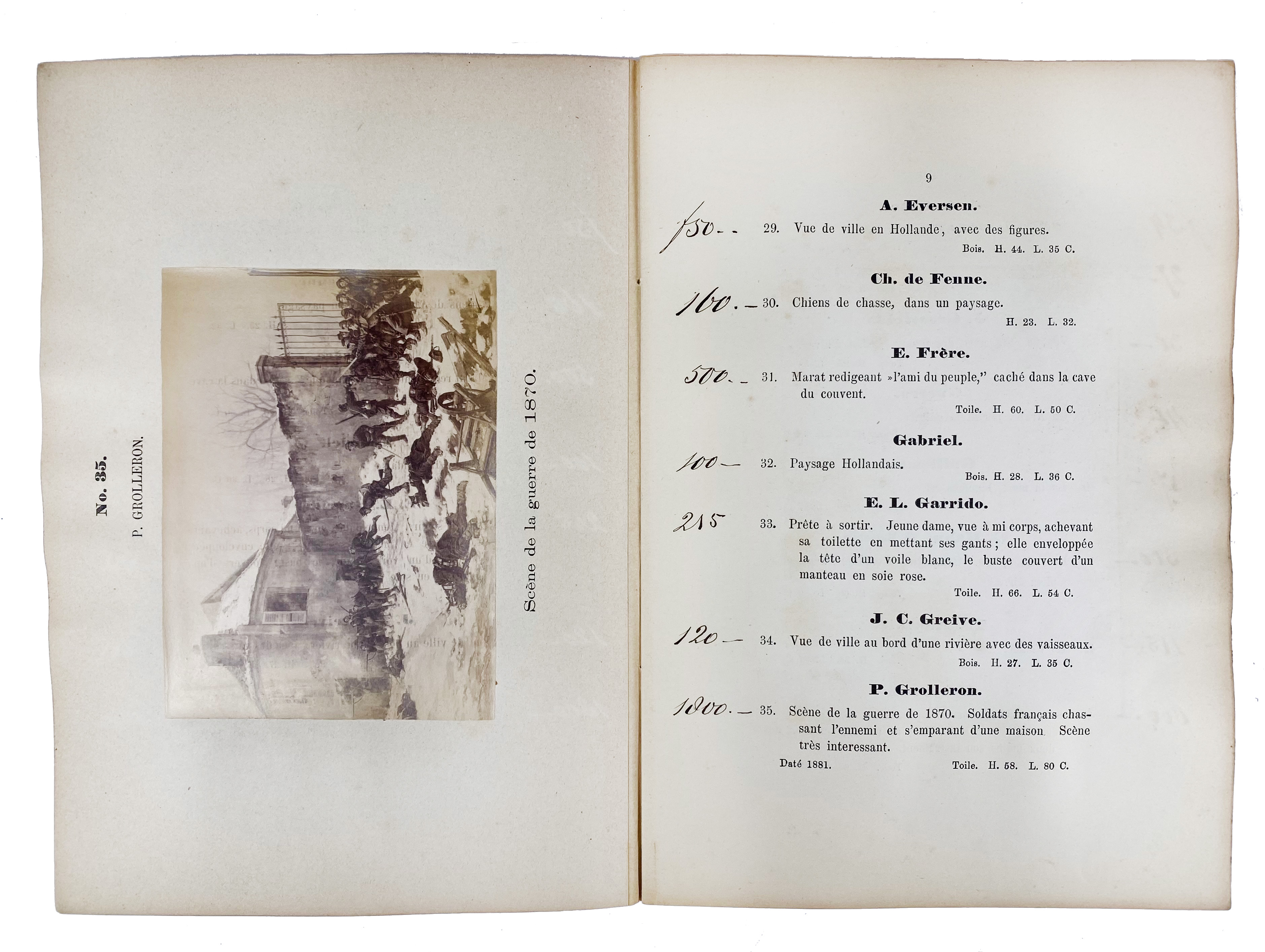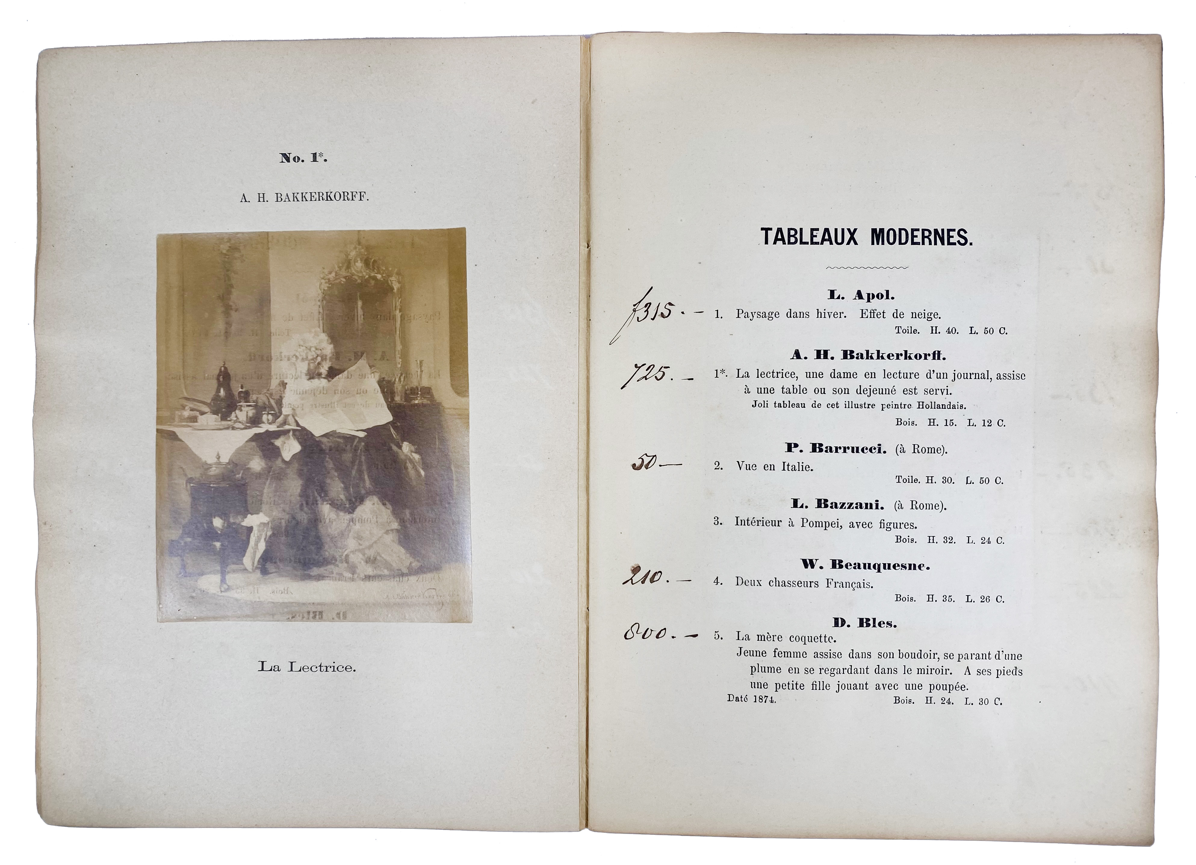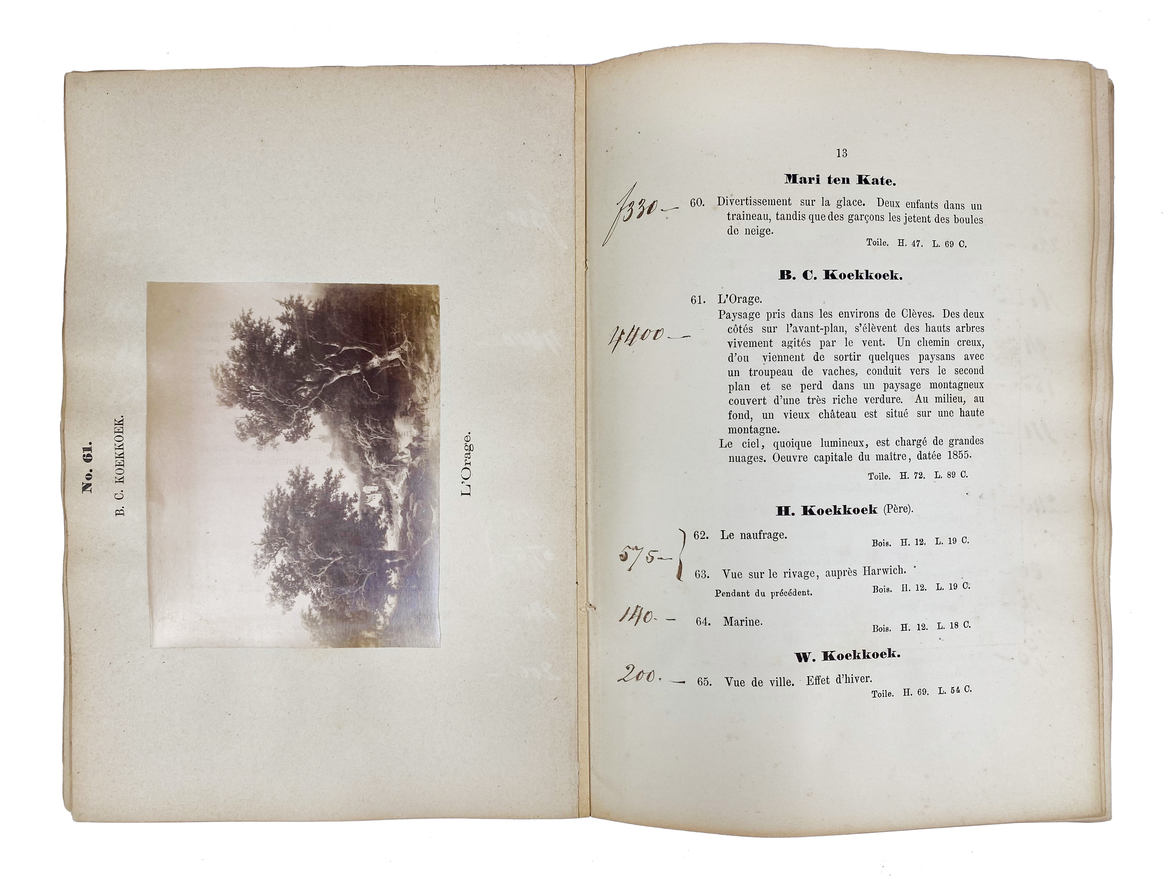 KOEKKOEK -- CATALOGUE de tableaux modernes. Composant la collection de Mr. H. Koekkoek Jr., de Londres. Vente publique lundi 19 mars 1883 (…) à Rotterdam. Sous la dir. de Mr. Oldenzeel. 1883. W. 6 or. mounted albumen photographic plates. Owrps.