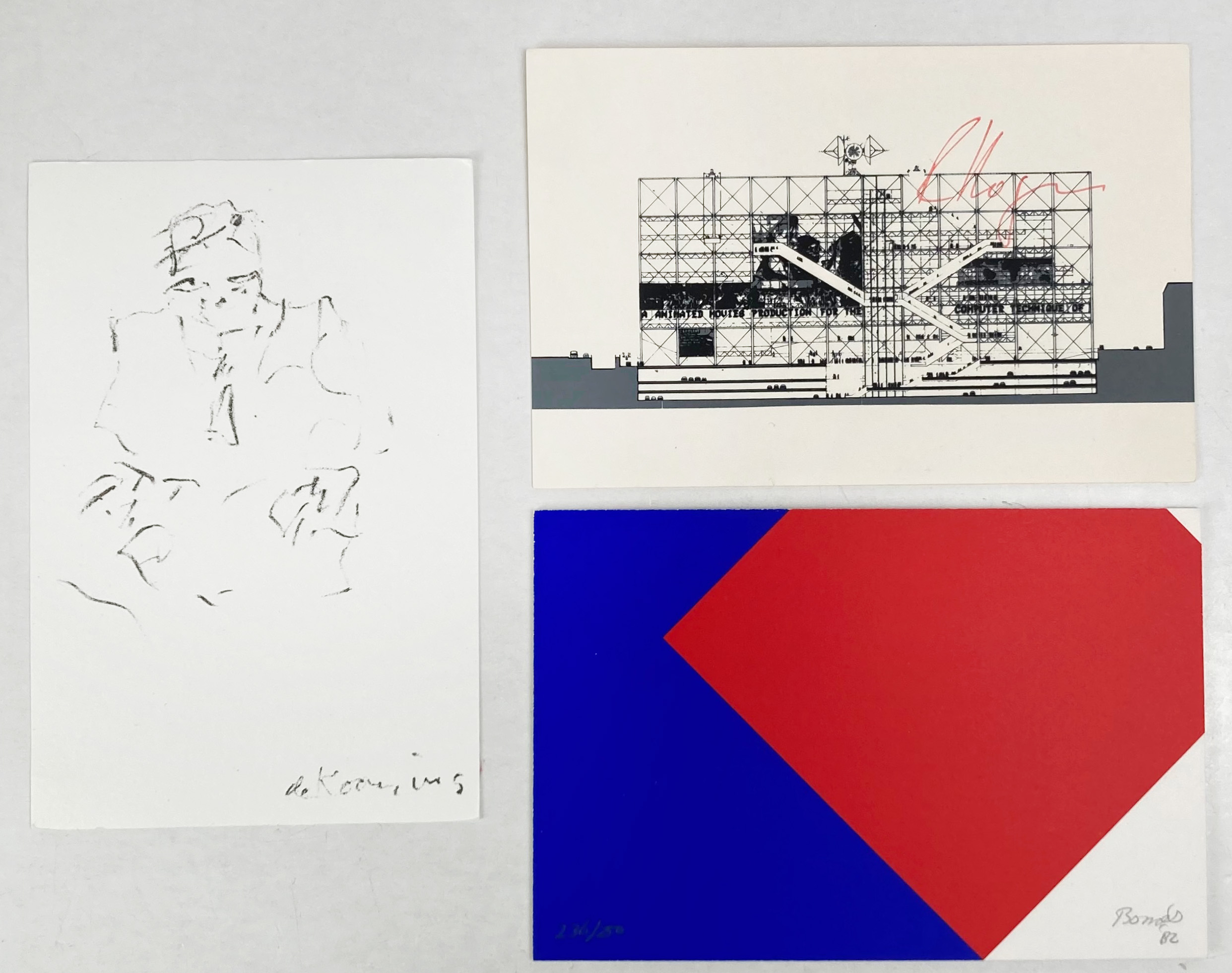 This set n° 236 of the numbered & limited series of 250. Published on the occasion of the 300 year anniversary of the Royal Academy of the Arts: De Koninklijke Academie van Beeldende Kunsten at The Hague, in 1982. Series A: Herbert Bayer, Kees van Bohemen and Pat Andrea; Series B: Marc Chagall, Walter Nobbe and Herman Gordijn; Series C: Willem de Kooning, Bob Bonies and Richard Rogers.