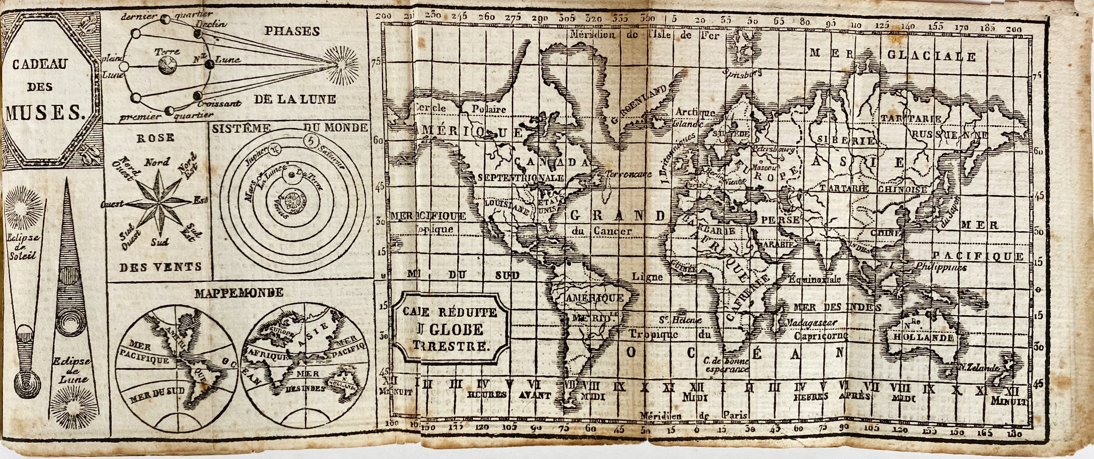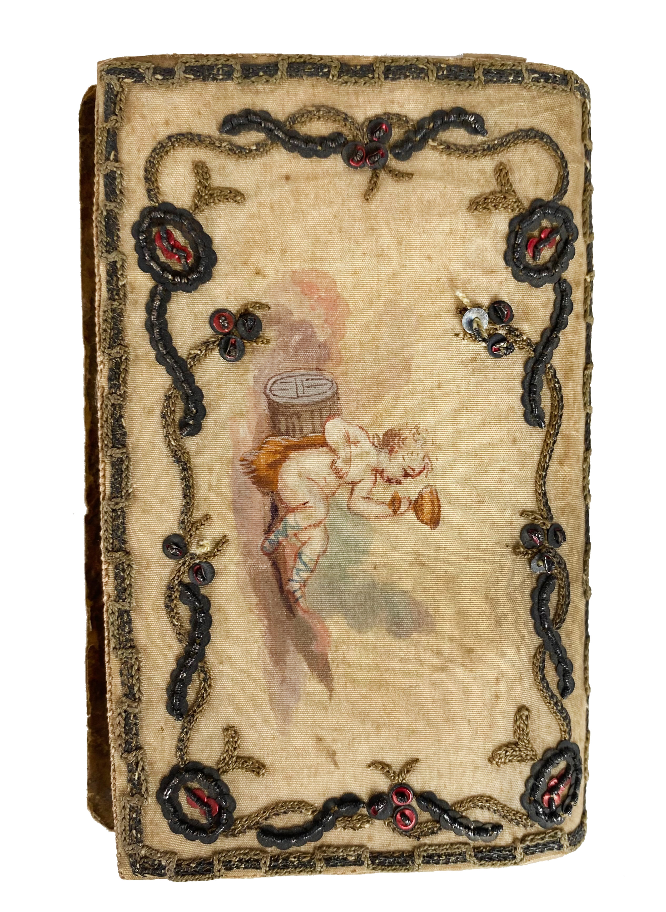 CADEAU DES MUSES ou Almanach universel, Étrennes utiles et agréables. Année bissextile 1844. (45e année). (Falaise, 1843). W. 2 fold. maps & 1 woodcut front. 16°. Cont. dec. wrps., loose in cont. silk wrps. w. painted image on both sides and adorned with metallic thread and beads. (A bit foxed/browned). -- ALMANACH historique et généalogique pour l'année commune 1801. Berl., (1800). W. 12 plates by D. Chodowiecki & 1 fold. cold map. 16°. Old wrps. (Spine a bit dam.). -- BATAAFSCH comptoir almanach, of tydwyzer voor het jaar 1799. Leeuw., (1798). 12. Cont. limp vellum envelope binding w. tie. -- (3).