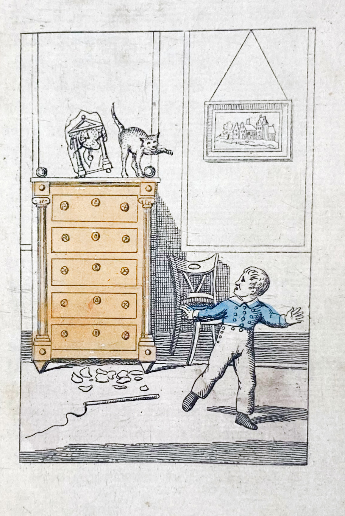 GESCHIEDENIS van Koenraad Waaghals. 2e dr. Amst., G. Portielje, (c. 1840). W. 6 handcold. engr. Sm-8°. Later stiff wrps. (1st quire loose, bindwork delicate). Huisman G101. -- C.W. SPIEKER. Sophia Overveld, of het huishoudelijk meisje. 2e dr. Haarl., 1818. W. 6 handcold. engr. Sm-8°. Cont. hcf. w. red letterpiece on spine. (Wear to extremities, hinges split). -- AGATHA (= R. de Goeje). Kruidje roer mij niet. (1868). W. 4 lithogr. plates. Or. pictorial hcl. -- J. SCHENKMAN. De vertellingen van Moeder de Gans. Op nieuw uit het fransch vertaald. Amst., (1851). W. 8 cold. lithogr. Or. pictorial cl. -- And 8 o. (12).