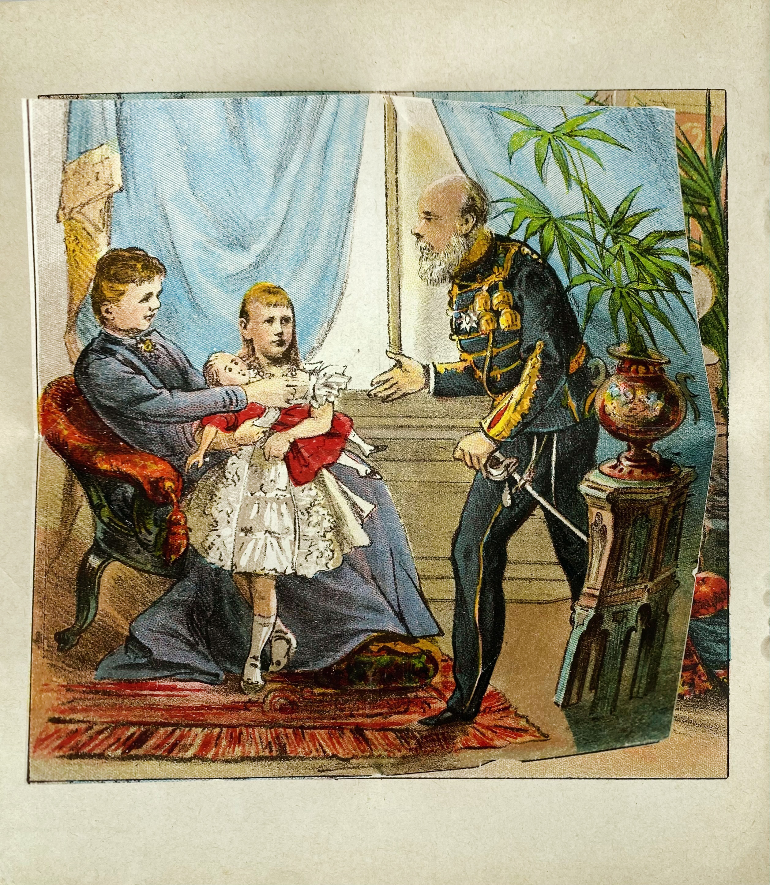 Ad 1: A flapbook which tells the story of the Princess Wilhelmina from her childhood to when she became Queen of Holland in 1898. Contains four chromolithograph movable flap illustrations. Each of the four scenes opens out in four quarters from the centre to reveal a second, related scene. Copy w. deletion of printer's name and address on front cover. - Buijnsters, Lust & Leering, 418. Ad. 2: Buijnsters, Lust en Leering, 99-100; De hele Bibelebontse berg 548; The Children's World of Learning 3286: "Beautifully illustrated and hand-coloured little children's book with one of the fairy tales from the "New Mother Goose", told in verse. (...). Not elsewhere found recorded."