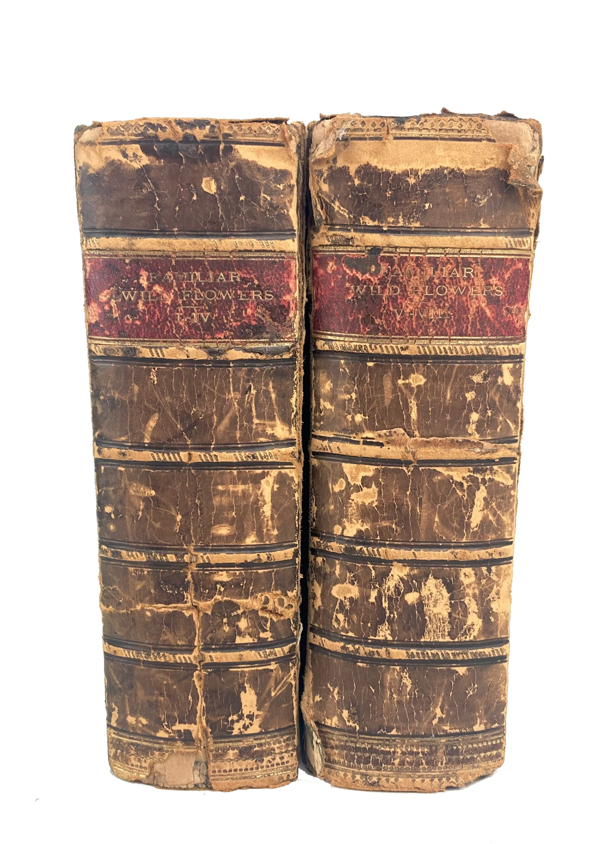BOTANY -- HULME, F.E. Familiar wild flowers. 1st-8th series. Lond., Cassell, 1906 (= 1906-12). 8 in 2 vols. 1303 pp. W. 323 cold. chromolithogr. plates & num. wood-engr. initials & tailpieces. Custom hcf. extra w. red letterpieces. (Spines weak, but binding holds, inside w. minimal age-toning, cols beautifully preserved).