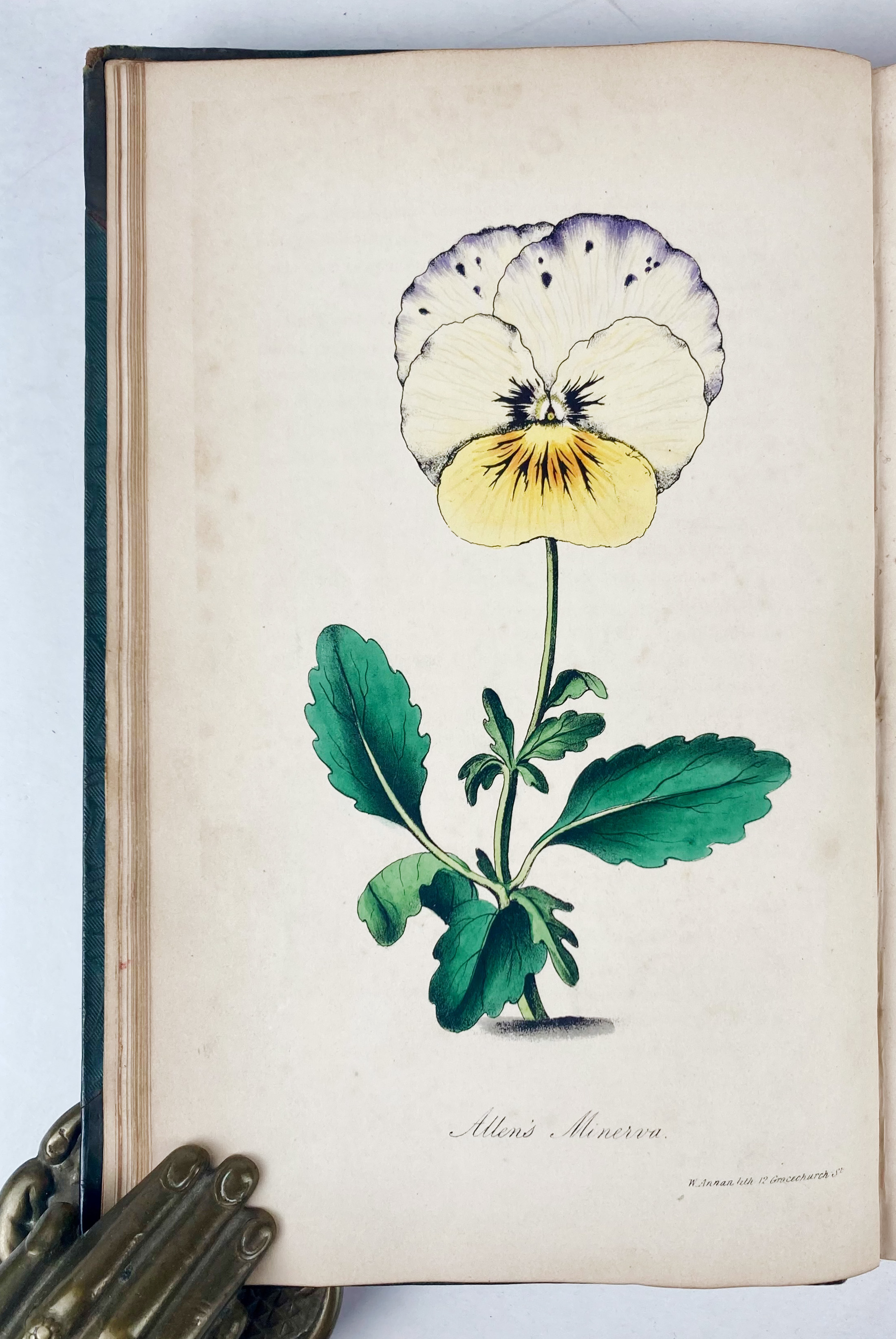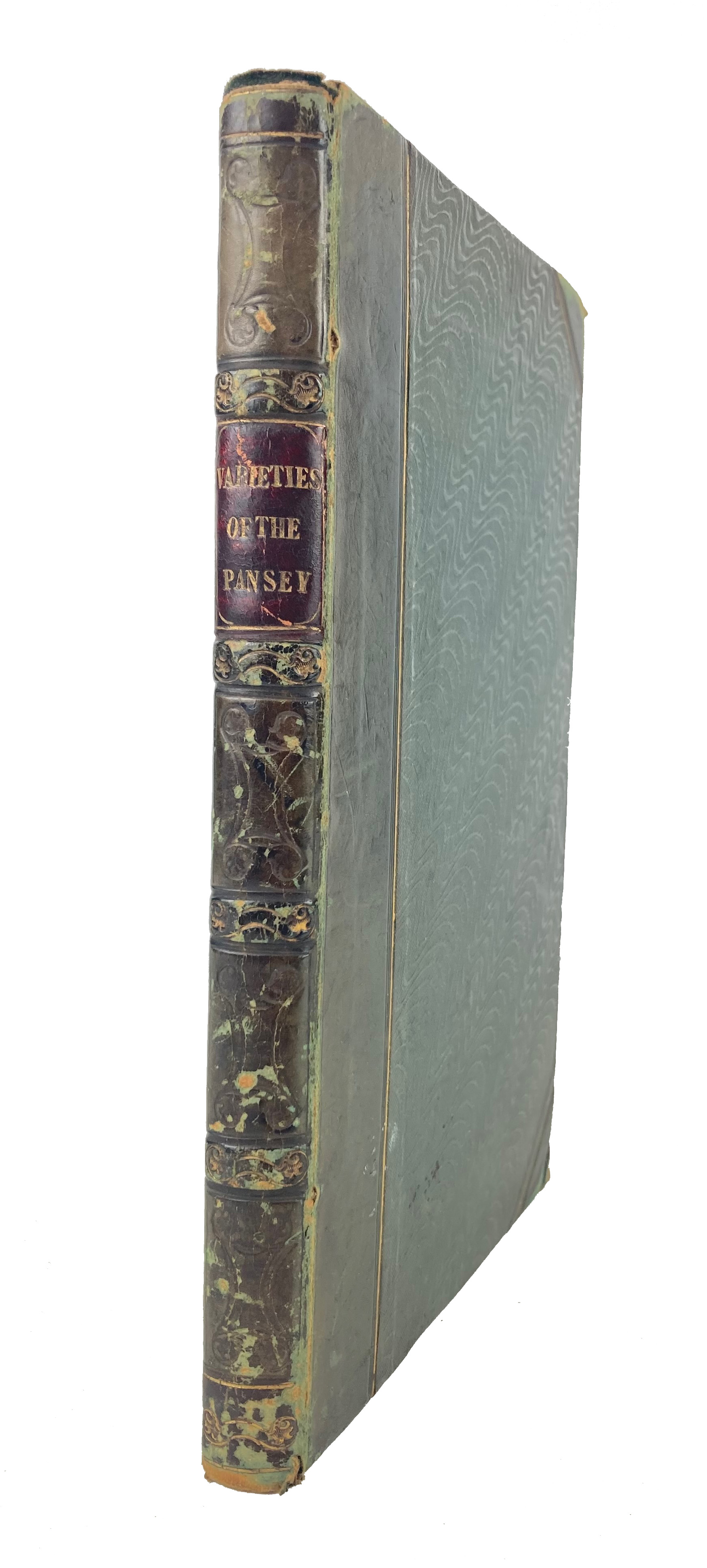BOTANY -- SINCLAIR, J. & J. FREEMAN. History and Description of the different varieties of the Pansey, or Heartsease, now in cultivation in the British Gardens. Lond., Effingham Wilson, 1835. ix, 112 pp. W. 24 splendidly handcold. lithographs. Cont. hcf. extra w. elegant spine w. bands, gilt & blindstamped dec. & red letterpiece, sides gilt-ruled, a.e.g. (Wear to spine ends, hinges & corners, w. some yellowing in places but the charming plates are generally clean).