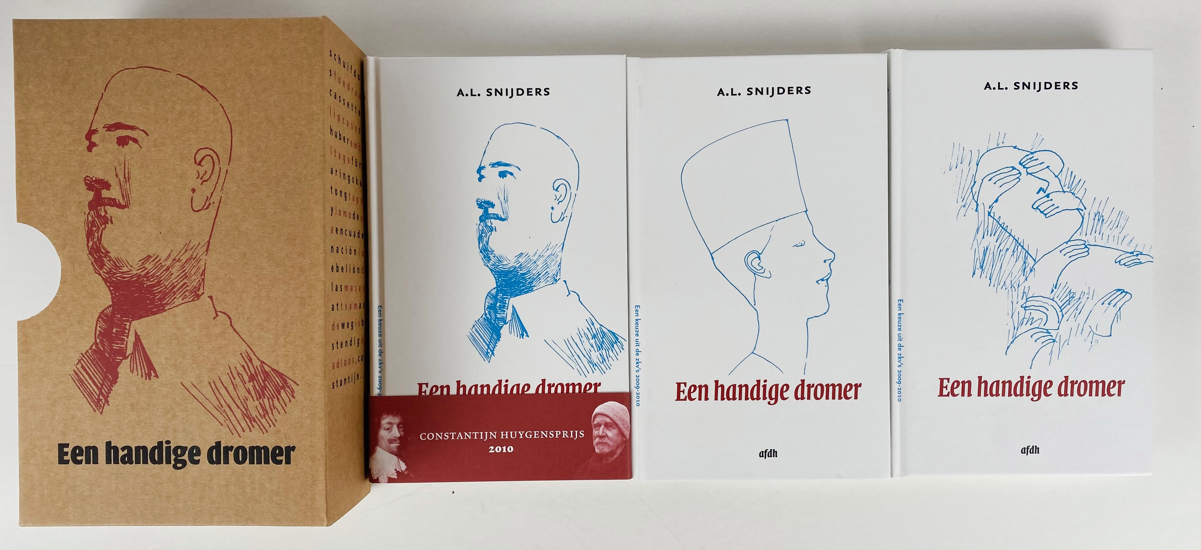 SNIJDERS, A.L. Een handige dromer. Een keuze uit de zkv's 2009-2010. Enschede/Doetinchem, AFdH, (2010). 3x the same work, but with diff. covers. Obrds. w. cover ills. by Rinus v.d. Bosch (1 w. belly band). Tog. in or. printed cardboard slipcase, signed by the author inside. -- Id. De mol en andere dierenzkv's. Enschede/Doetinchem, AFdH, (2009). W. ills. by J.M. Verburg & CD. Obrds. -- Id. De hartslag van de aarde. Dertien zkv's over muziek en stilte. Enschede/Doetinchem, AFdH, (2013). W. ills. by P. v. Straaten & CD. Obrds. -- Id. The same work, but published for KRO, w. different cover ill. -- And 1 o. by S. (7).