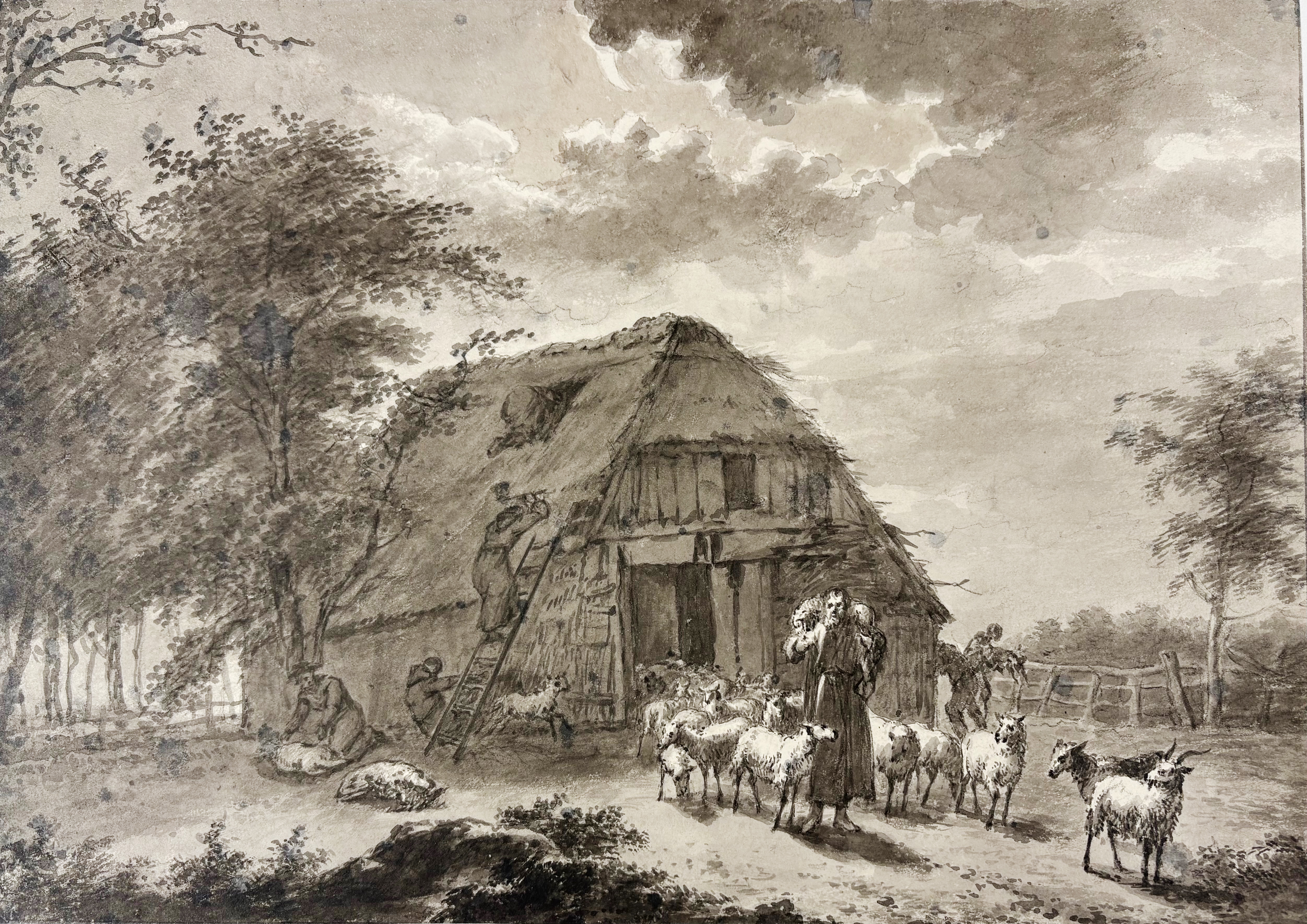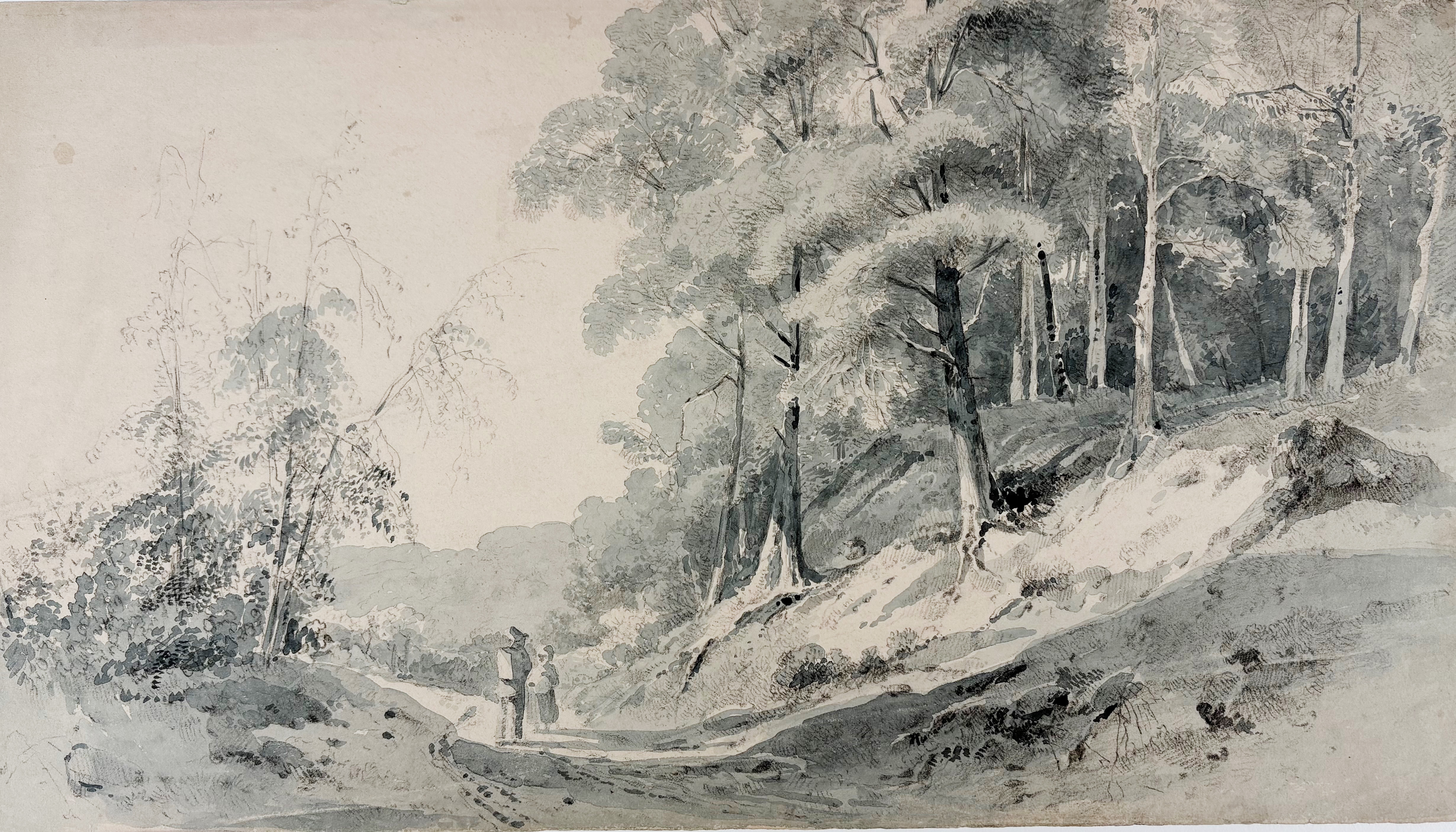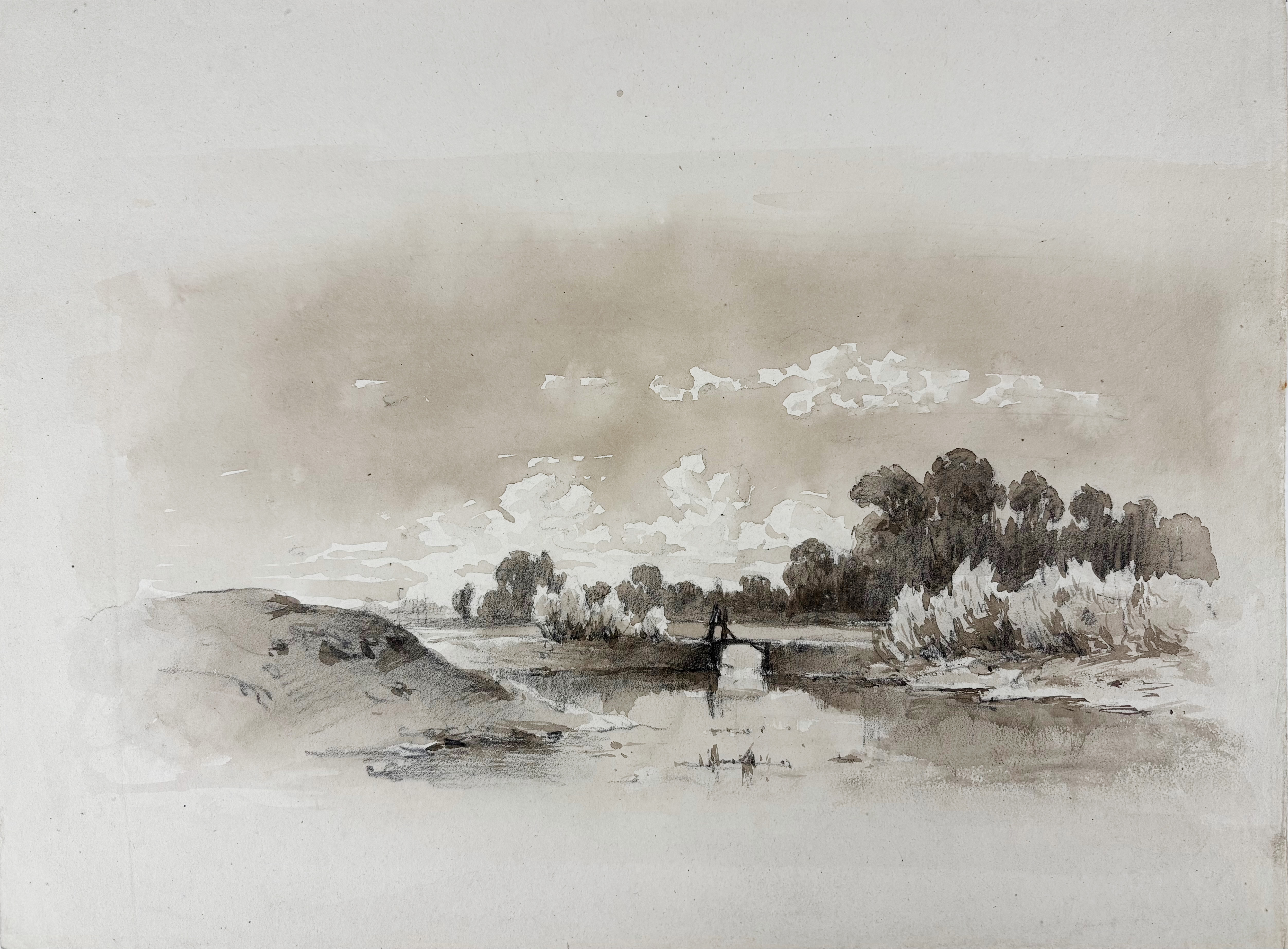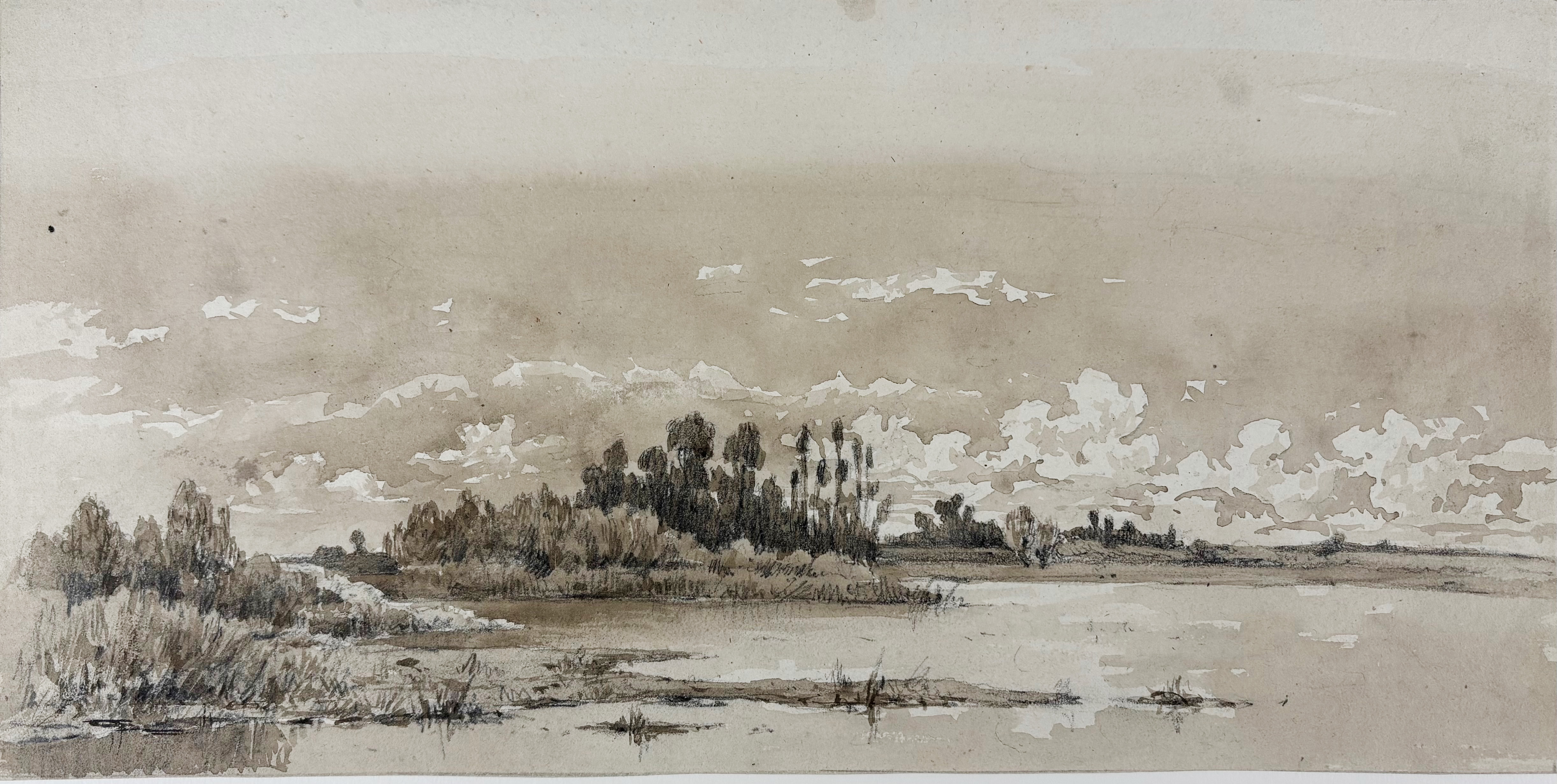 DUTCH SCHOOL -- COLLECTION of 5 anonymous landscape drawings. 19th c. Various techniques. Smallest 166 x 253; largest 230 x 405 mm. All under passepartout.